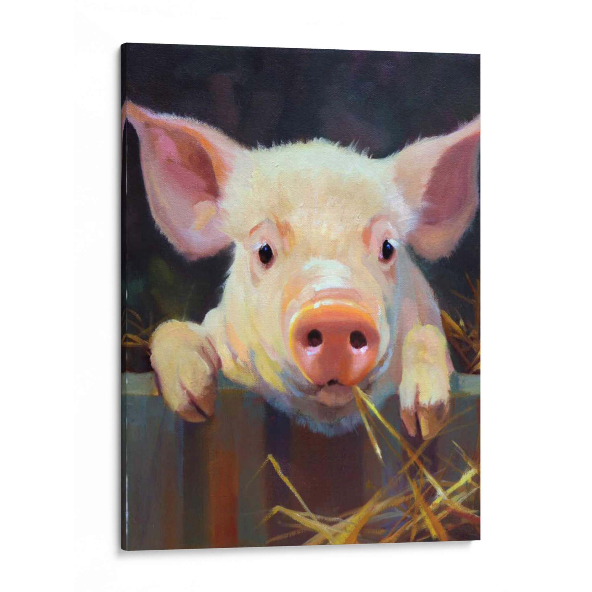 Descubre la ternura y el encanto rústico del cuadro decorativo "Club De Granja I" de Carolyne Hawley. Esta obra maestra captura la inocencia de un cerdito juguetón, emergiendo de un corral de heno con una expresión curiosa y ojos vivaces. La artista utiliza una paleta de colores cálidos, dominada por tonos crema, rosados suaves y toques dorados en la paja, contrastando sutilmente con un fondo oscuro que realza la figura central. La técnica de pintura al óleo aporta profundidad y textura, invitando al espectador a sentir la suavidad de su piel y la frescura del ambiente rural. El estilo pictórico, con pinceladas visibles y una iluminación atmosférica, evoca una sensación de calma y conexión con la naturaleza, ideal para añadir un toque de serenidad y dulzura a cualquier espacio. Este cuadro decorativo es perfecto para salas de estar, dormitorios infantiles o cocinas rústicas, aportando un punto de interés lleno de vida y carácter. "Club De Granja I" no es solo una imagen, sino una invitación a un rincón de paz y simplicidad campestre. Añade esta pieza única a tu colección de arte de pared y transforma tu hogar en un refugio acogedor y lleno de encanto.