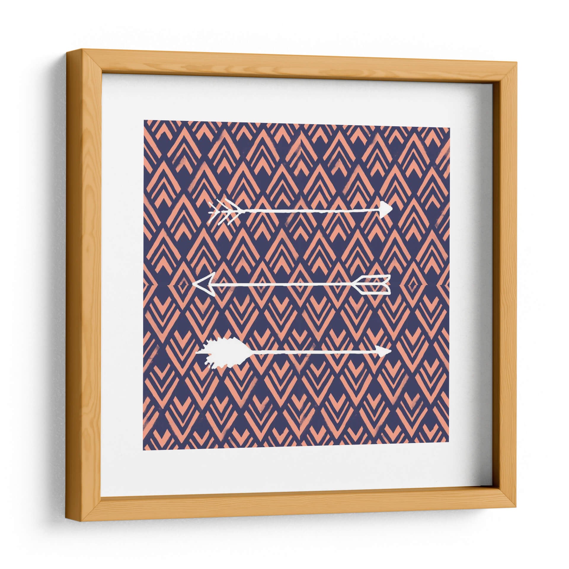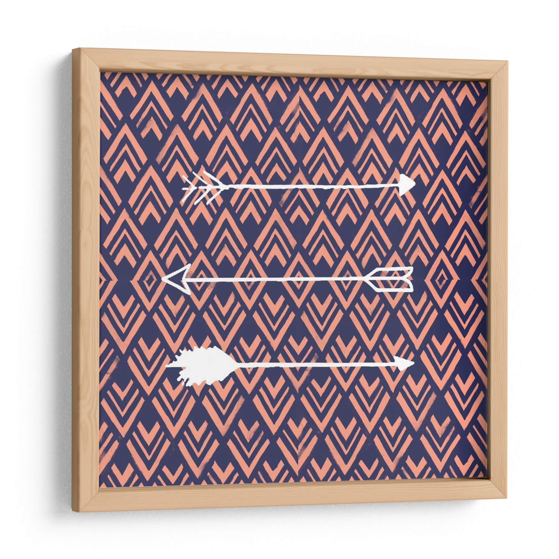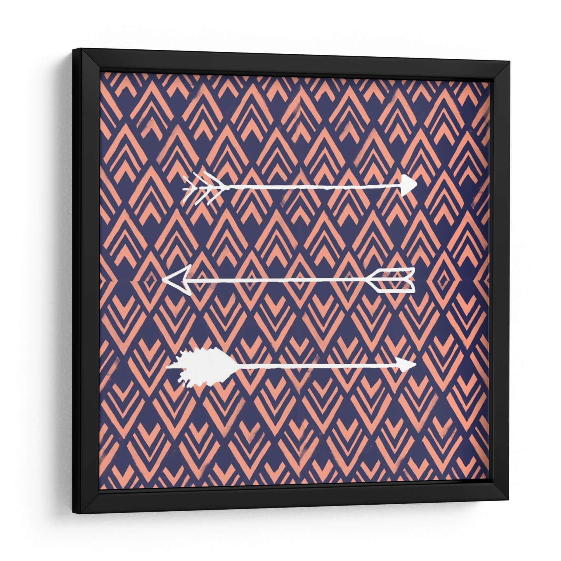 Aporta un toque de estilo moderno y atemporal a tu hogar con el cuadro decorativo "Deco Arrow I" del artista Studio W. Esta cautivadora pieza presenta un diseño abstracto geométrico en tonos azul marino y coral, creando un contraste vibrante y sofisticado. Tres flechas blancas, estilizadas y con un aire bohemio, atraviesan el patrón repetitivo de rombos, añadiendo un elemento dinámico y simbólico de dirección y propósito. La composición es limpia y equilibrada, lo que la convierte en una adición versátil para cualquier espacio. Su paleta de colores la hace ideal para salones contemporáneos, dormitorios acogedores u oficinas donde se busca inspiración y un toque de personalidad. "Deco Arrow I" no es solo una obra de arte, sino una declaración de estilo que evoca una sensación de movimiento y aventura, invitando a la reflexión y añadiendo carácter a tus paredes. Es el detalle perfecto para transformar cualquier ambiente en un espacio más chic y lleno de vida, resonando con aquellos que aprecian el diseño moderno y los elementos gráficos audaces.
