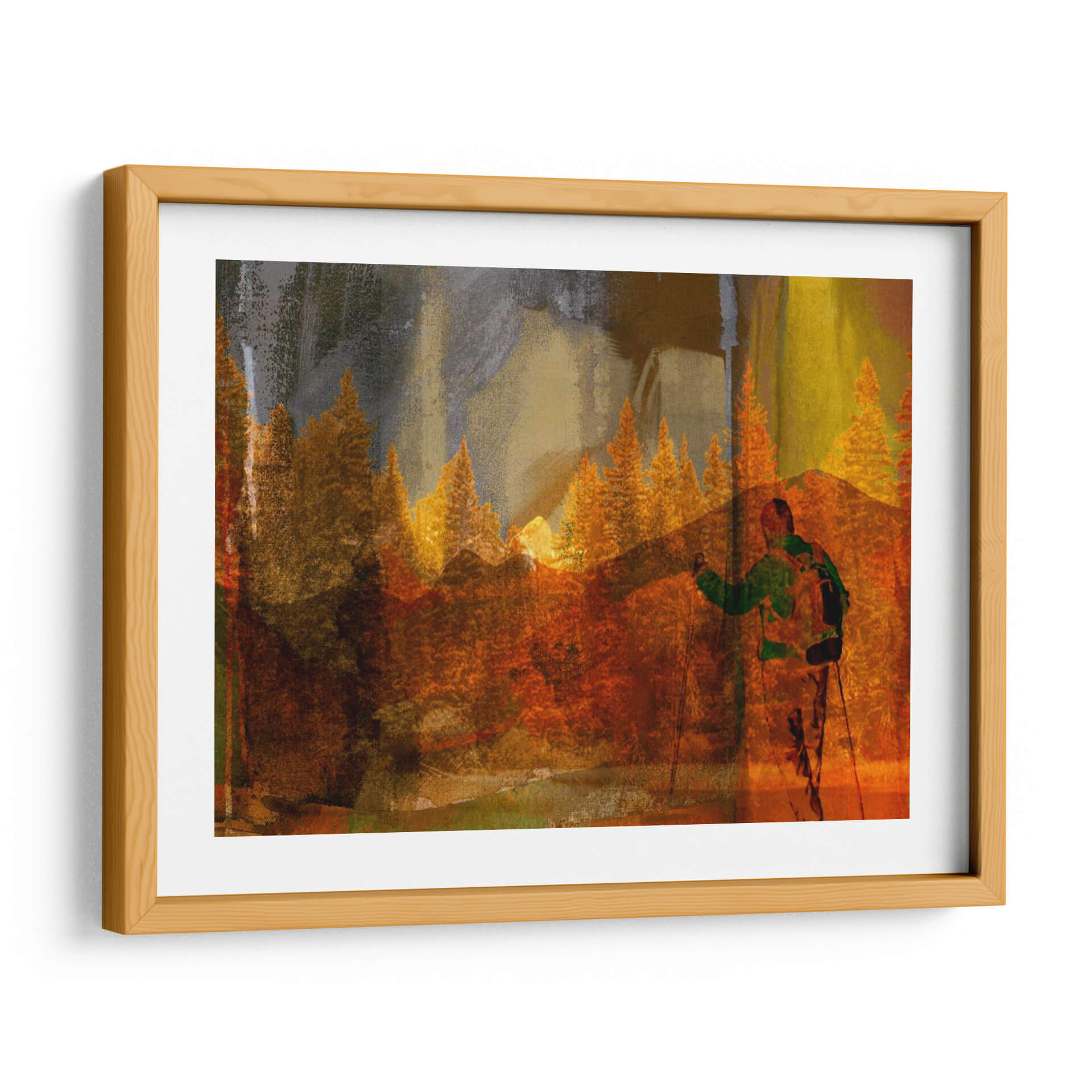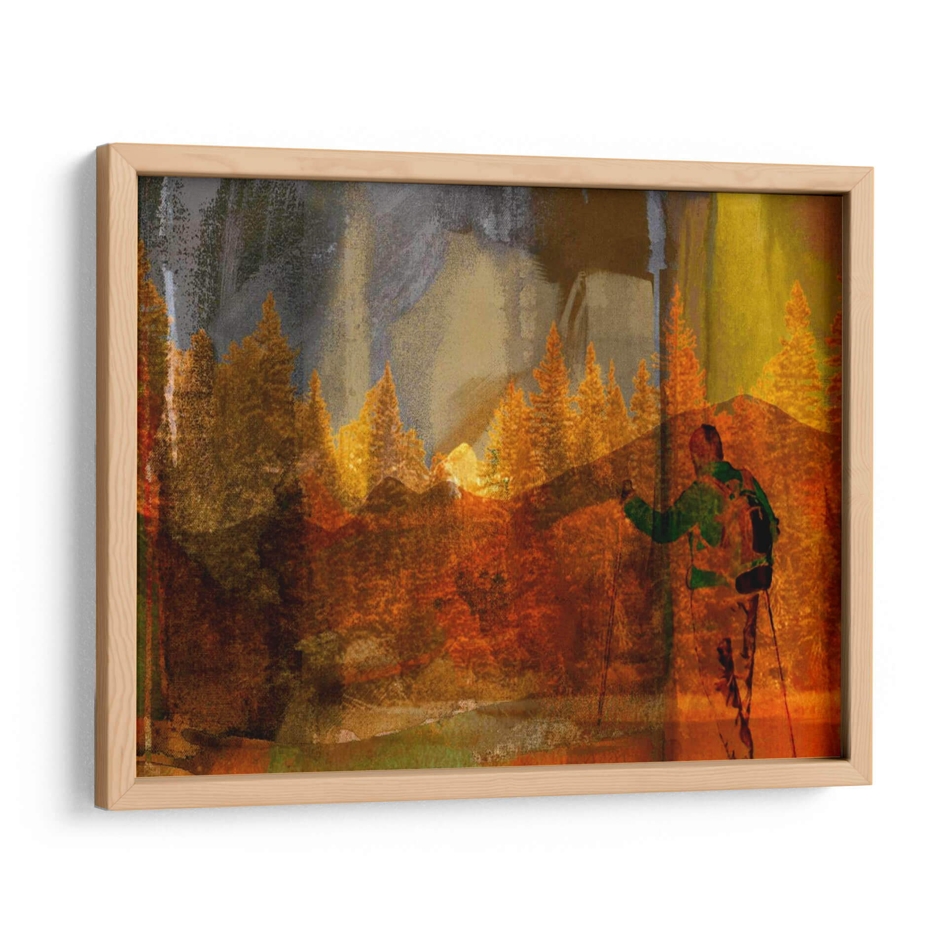 Sumérgete en la aventura con "Denver Caminante", una cautivadora obra de arte que evoca la grandeza de la naturaleza y el espíritu explorador. Esta pieza visualmente rica presenta una silueta solitaria de un excursionista, equipada con bastones, adentrándose en un paisaje montañoso dominado por una densa arboleda otoñal. La paleta de colores, vibrante y cálida, transita desde los dorados intensos y naranjas encendidos de los árboles y el cielo al atardecer, hasta los tonos más oscuros y terrosos que sugieren profundidad y misterio. La técnica pictórica, con texturas que recuerdan a acuarelas o pinceladas expresionistas, añade una cualidad etérea y dinámica, difuminando los límites entre el sujeto y su entorno. "Denver Caminante" es ideal para inspirar y añadir un toque de energía aventurera a tu hogar u oficina. Este cuadro decorativo abstracto contemporáneo es perfecto para quienes buscan un punto focal que invite a la reflexión sobre el viaje personal y la conexión con el entorno natural. Su composición, que superpone capas de color y forma, crea una sensación de movimiento y profundidad, invitando al espectador a perderse en sus detalles. Añade esta pieza única a tu colección y deja que su atmósfera evoque la libertad y la contemplación de una expedición en la montaña.