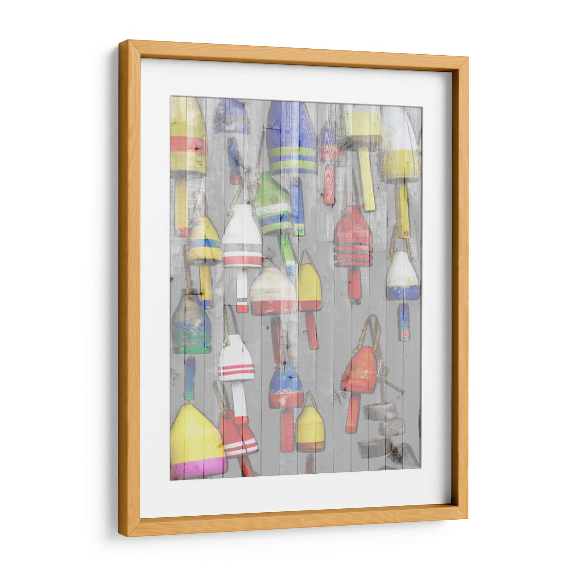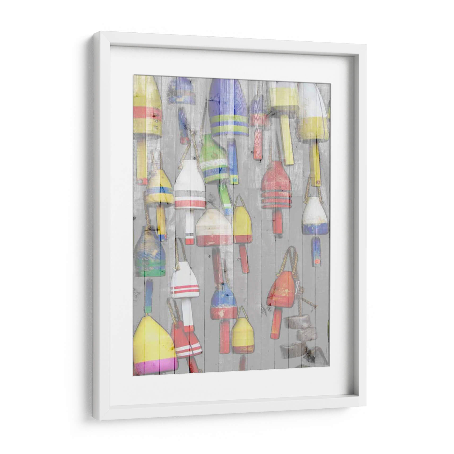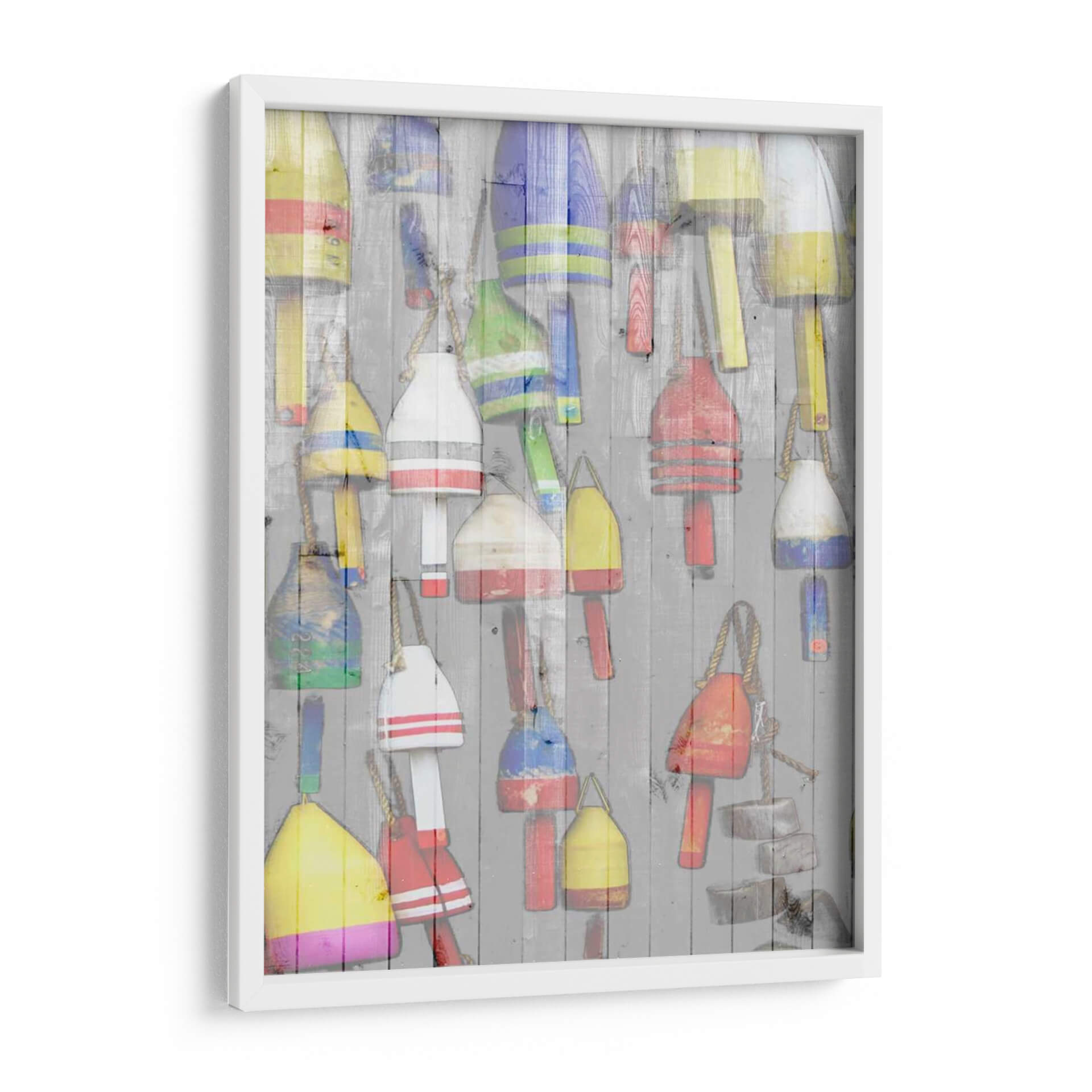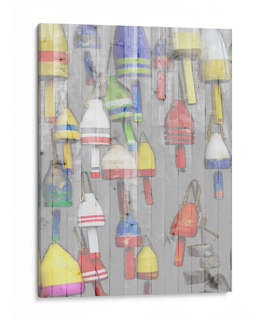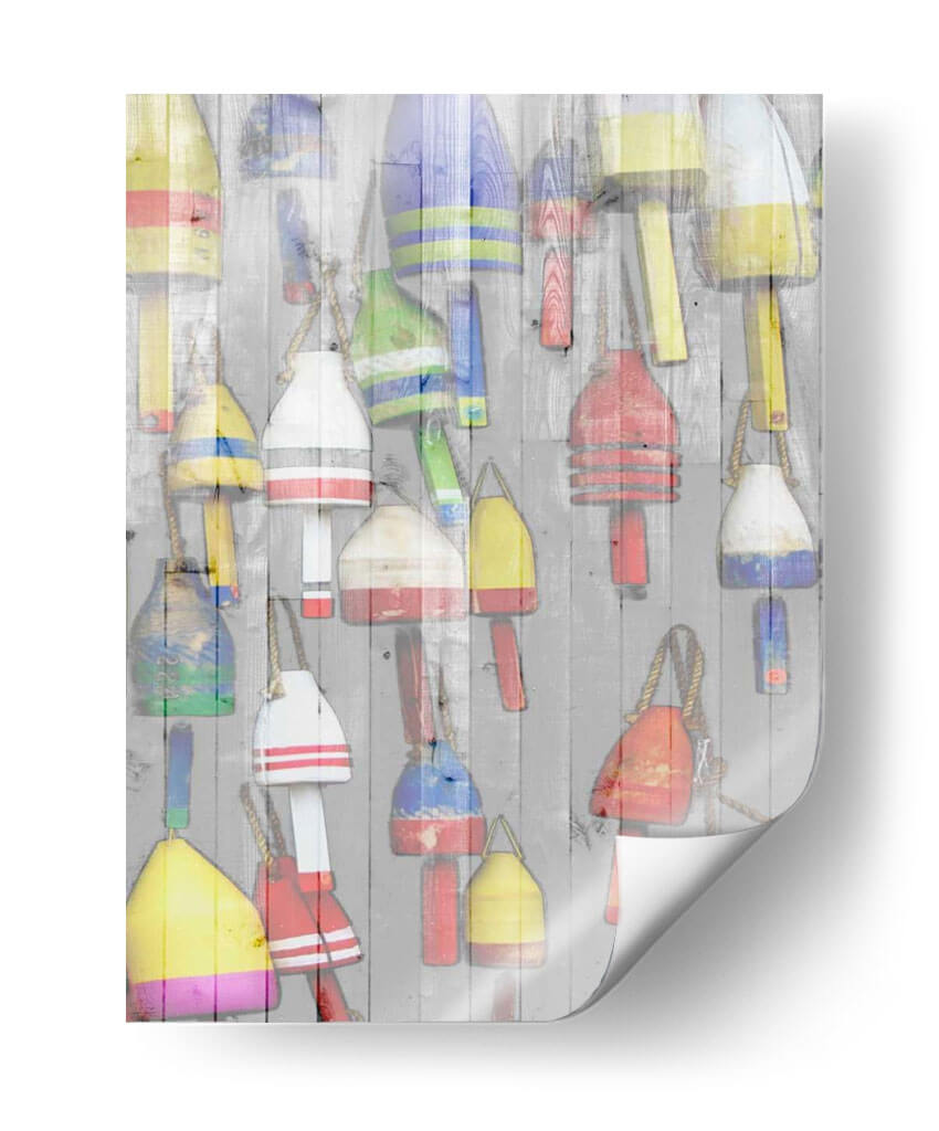 Emb uevo en un viaje visual a la costa con "Dockside II" de Jarman Fagalde. Esta cautivadora obra de arte captura la esencia rústica y vibrante de la vida marítima, presentando una colección de boyas de pesca coloridas colgadas sobre una pared de madera desgastada. Los tonos ricos y variados de las boyas, que incluyen amarillos brillantes, rojos intensos, azules profundos y verdes alegres, crean un contraste dinámico contra el fondo neutro y texturizado. La composición, llena de detalles y con una sensación de superposición, evoca una atmósfera de nostalgia y aventura, invitando al espectador a imaginar las historias detrás de cada boya. "Dockside II" es una pieza versátil que infunde energía y carácter a cualquier espacio. Es ideal para añadir un toque de color y personalidad a una sala de estar moderna, un comedor acogedor o incluso un estudio con temática náutica. Este cuadro decorativo es perfecto para quienes aprecian el arte con un toque de autenticidad y un guiño al mar, transformando cualquier pared en una ventana a un rincón pintoresco y lleno de vida.