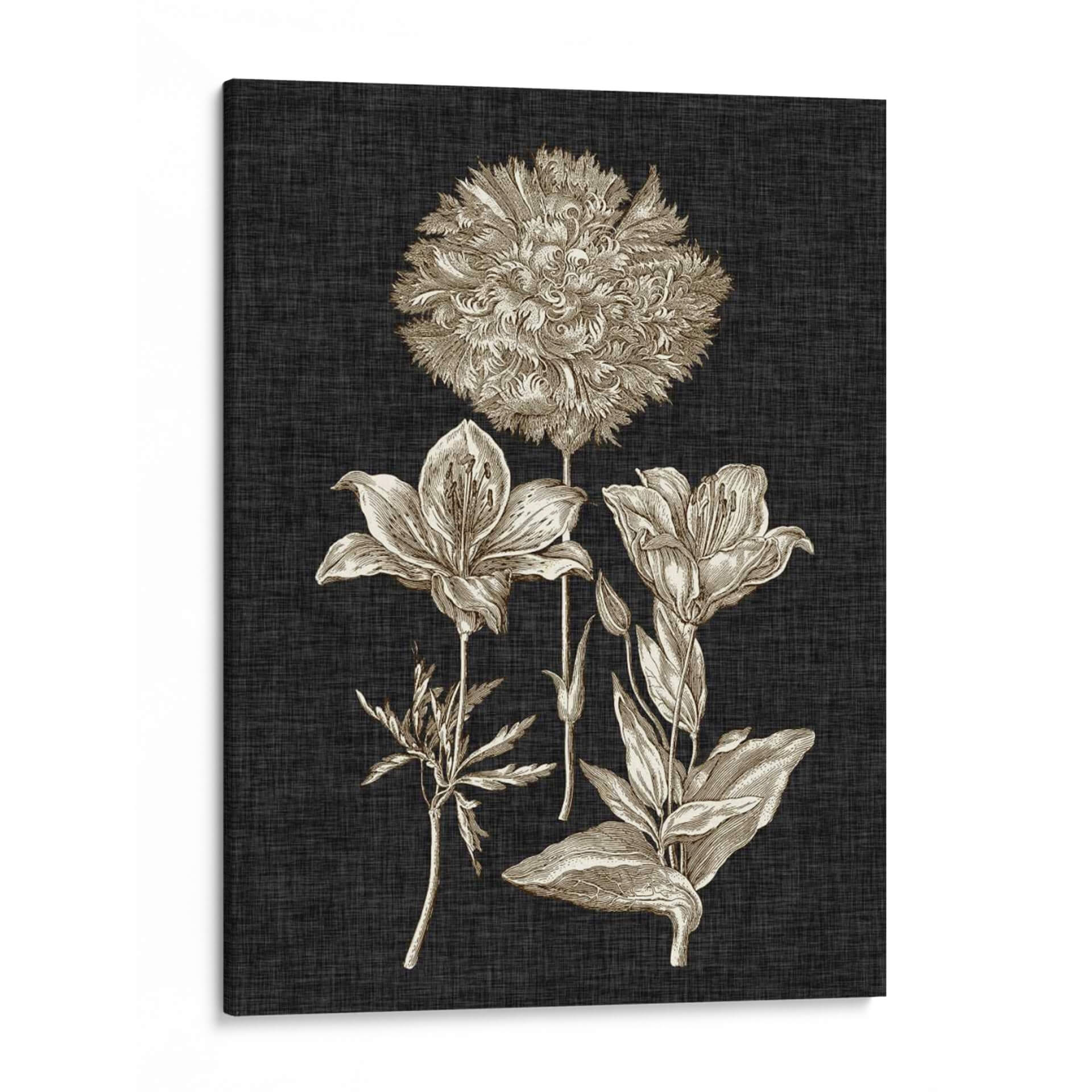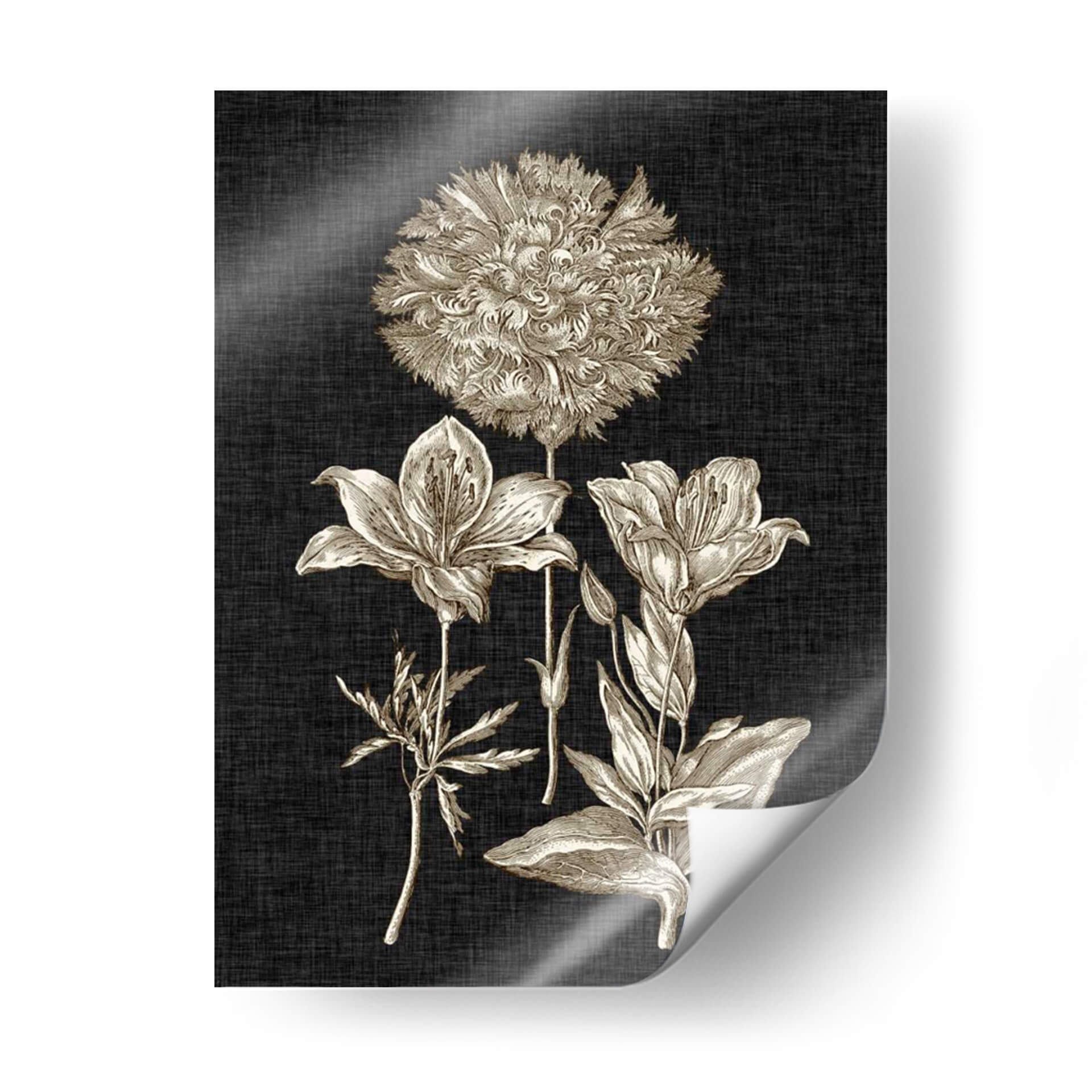 Transforma tu espacio con la cautivadora obra "Dramático Chintz Iv", una pieza de arte de pared que evoca la elegancia atemporal de la botánica. Este cuadro decorativo presenta un estudio detallado de flores y follaje en una paleta de sepia sobre un fondo oscuro y texturizado, que recuerda a las ilustraciones científicas clásicas. Cada pétalo y hoja está renderizado con una delicadeza exquisita, creando una sensación de profundidad y realismo que captura la atención. La composición, centrada en un grupo de flores de aspecto exuberante y otras más delicadas, ofrece un equilibrio visual armonioso. Su estilo distintivo, que fusiona lo clásico con un toque contemporáneo, lo hace ideal para una variedad de decoraciones interiores, desde salones sofisticados y estudios de lectura hasta dormitorios que buscan un refugio de tranquilidad. Este cuadro decorativo no es solo una adición estética, sino una invitación a contemplar la belleza intrínseca de la naturaleza, añadiendo un toque de refinamiento y serenidad a cualquier ambiente. Es la elección perfecta para quienes aprecian el arte detallado y buscan una pieza que aporte carácter y elegancia duradera a su hogar u oficina.