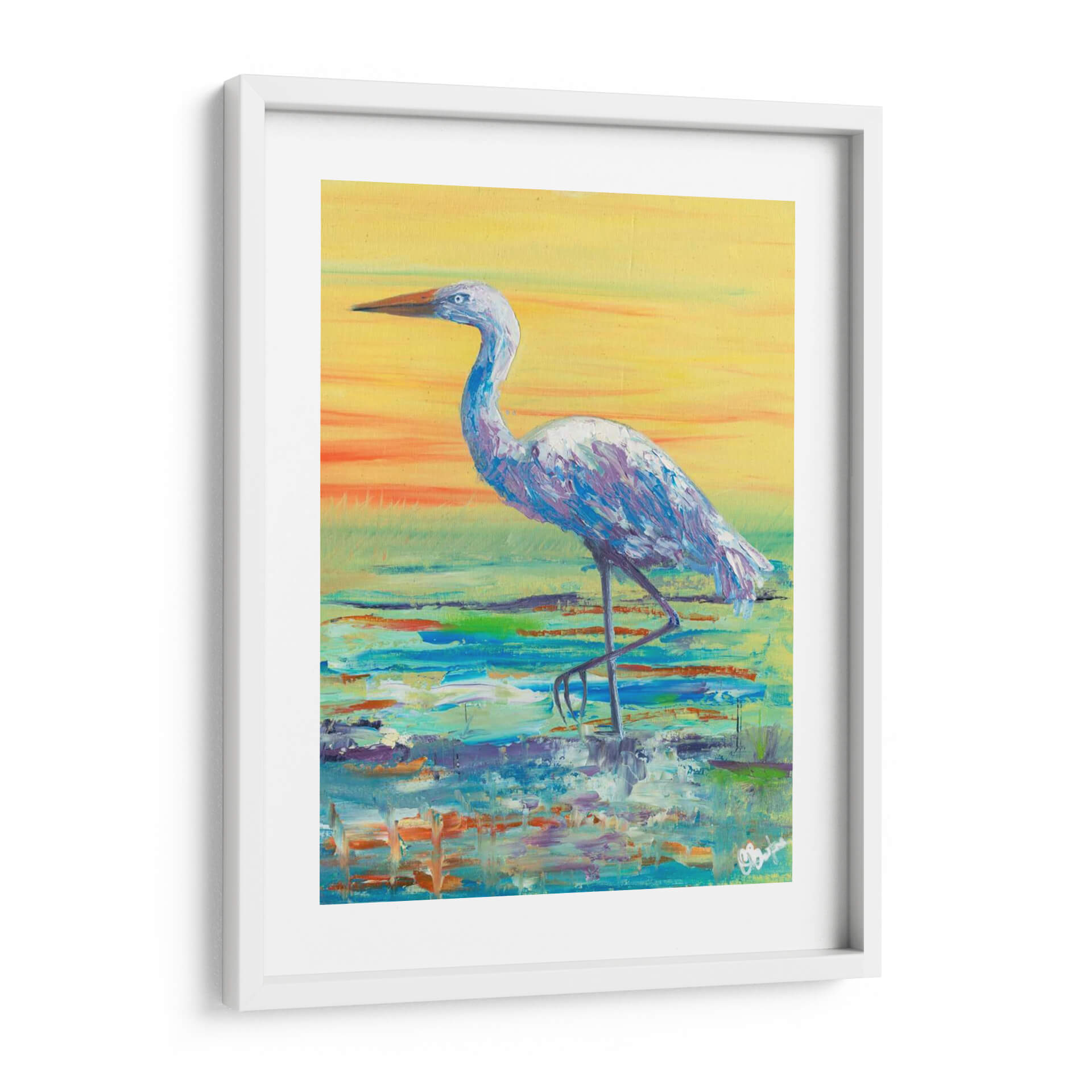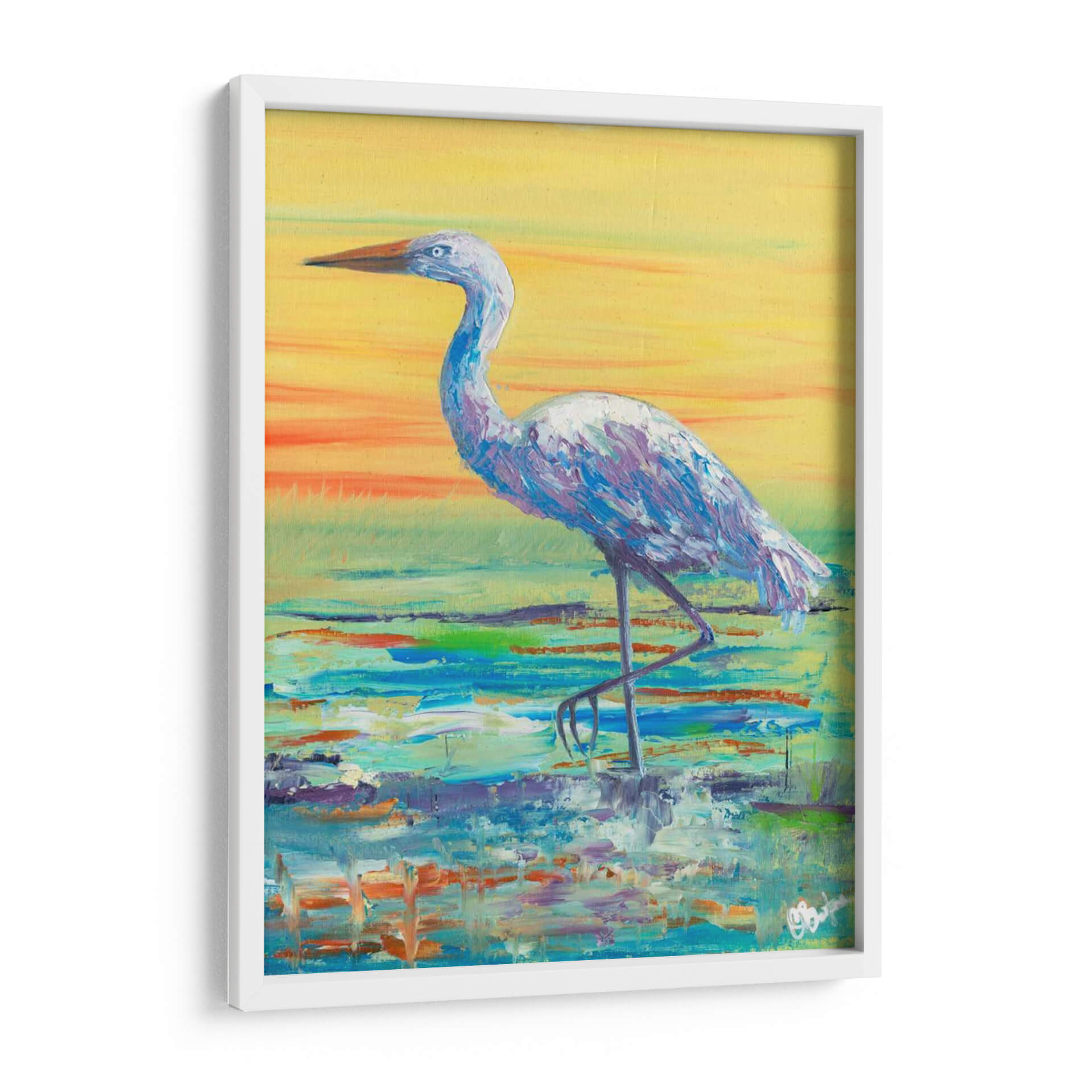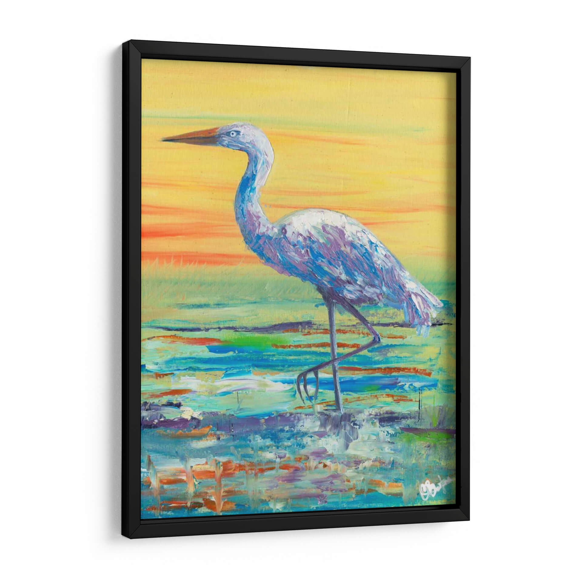 Sumérgete en la serenidad y la belleza natural con "Egret Sunset II" de Olivia Brewington, una obra de arte decorativo que captura la esencia de un atardecer junto a la vida silvestre. Este cuadro presenta una majestuosa garza blanca, pintada con pinceladas expresivas y un toque impresionista, que se alza con elegancia en un entorno acuático vibrante. Los colores cálidos del atardecer, que van desde el amarillo dorado hasta el naranja y el rojo, contrastan maravillosamente con los tonos fríos de azul, verde y púrpura del agua y del plumaje de la garza, creando una atmósfera de calma y armonía. La técnica pictórica, con su textura y profundidad, añade un carácter dinámico a la pieza, invitando al espectador a contemplar la paz del momento. Este cuadro decorativo es ideal para añadir un punto de interés sereno y a la vez vibrante a cualquier espacio, ya sea una sala de estar, un dormitorio o una oficina. Su estilo artístico contemporáneo y su evocadora paleta de colores lo convierten en una adición perfecta para quienes buscan piezas únicas que transmitan tranquilidad y conexión con la naturaleza. "Egret Sunset II" no es solo una imagen, sino una ventana a un momento de paz y belleza natural, lista para transformar su hogar u oficina en un santuario de arte y serenidad. Descubre la magia de este cuadro decorativo y deja que la naturaleza inspire tu día a día.