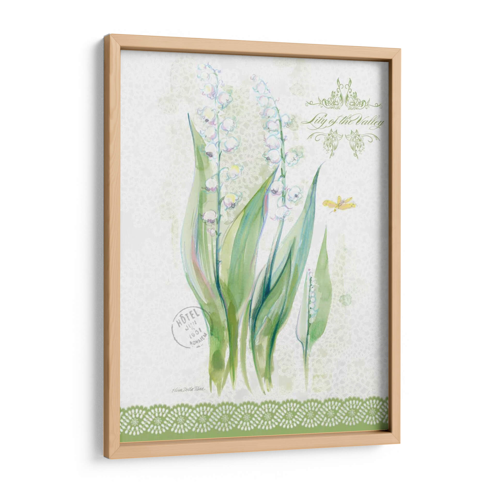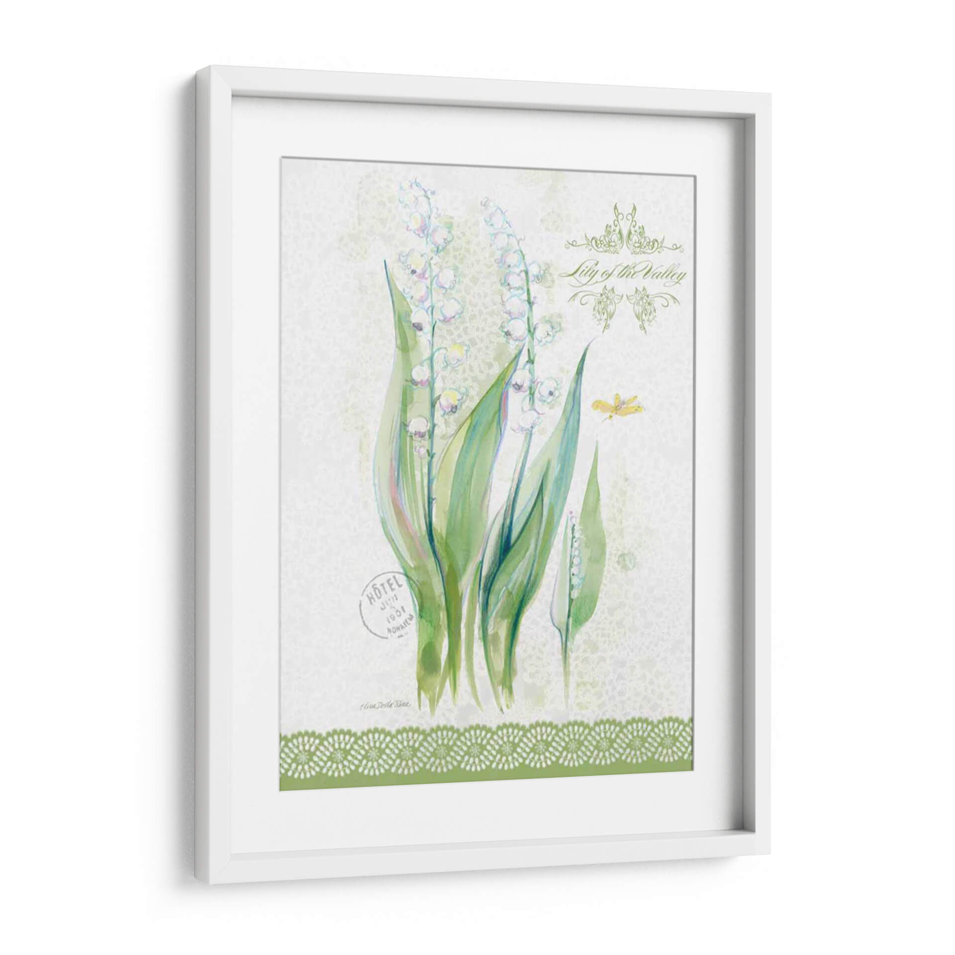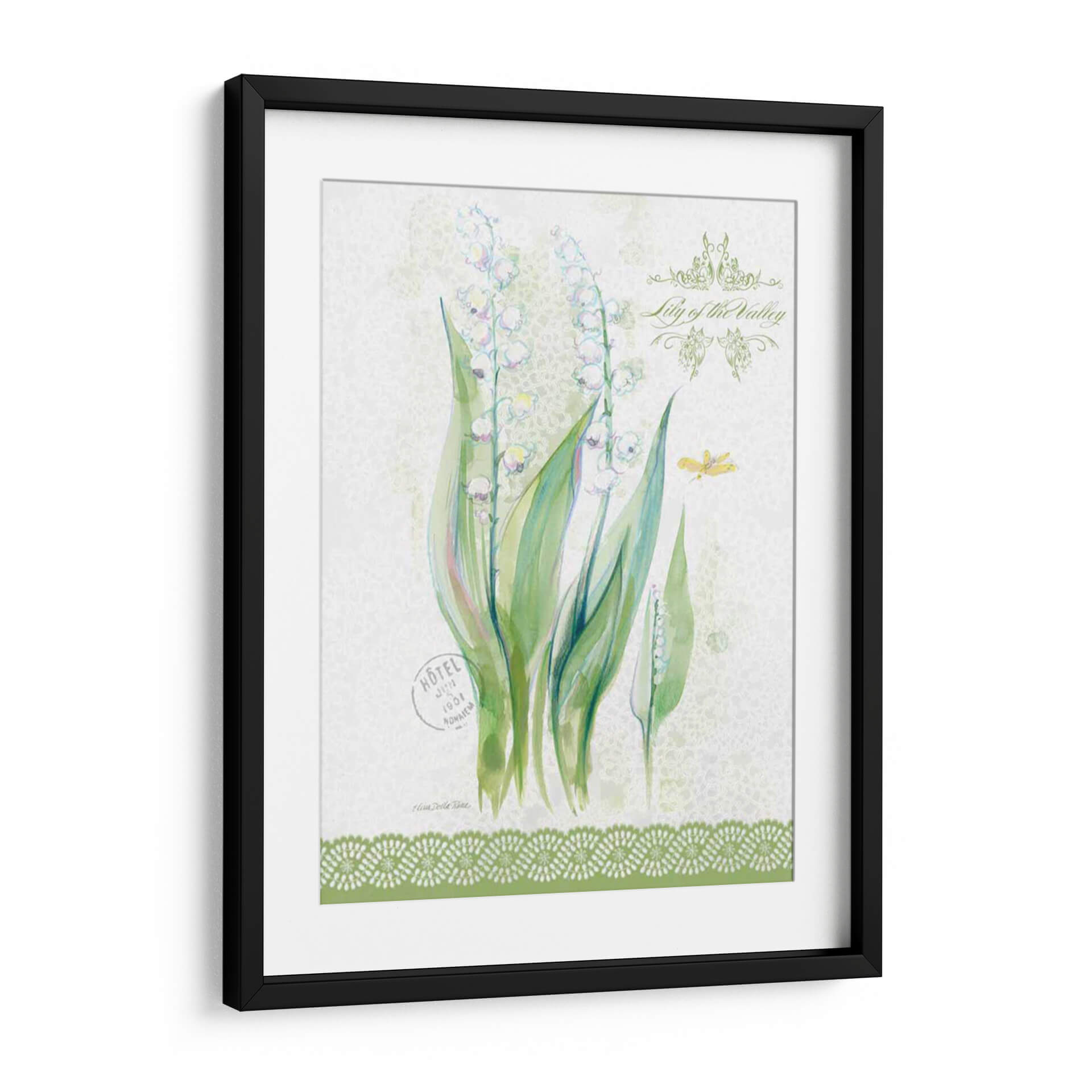 Sumérgete en la delicadeza primaveral con nuestro cuadro decorativo 'Estudio De Flores En Lace Ix', una obra maestra de Elissa Della-Piana que captura la esencia efímera del lirio de los valles. Esta pieza evoca una sensación de frescura y pureza, con delicadas flores blancas suspendidas en tallos verdes vibrantes, contrastando sobre un sutil fondo texturizado que recuerda a encaje fino. La paleta de colores suaves, dominada por verdes y blancos con toques de rosa pálido y azul, crea una atmósfera serena y etérea, perfecta para infundir tranquilidad en cualquier espacio. La composición se enriquece con detalles sutiles como una mariposa y elementos gráficos vintage, añadiendo una capa de encanto y nostalgia. Ideal para aquellos que buscan añadir un toque de elegancia natural y un susurro de primavera a su hogar u oficina, este cuadro decorativo es una invitación a la contemplación y la belleza. Su estilo, que fusiona lo botánico con toques de acuarela y texturas delicadas, lo convierte en una adición versátil que complementará tanto decoraciones clásicas como contemporáneas, aportando un aire de sofisticación y serenidad.
