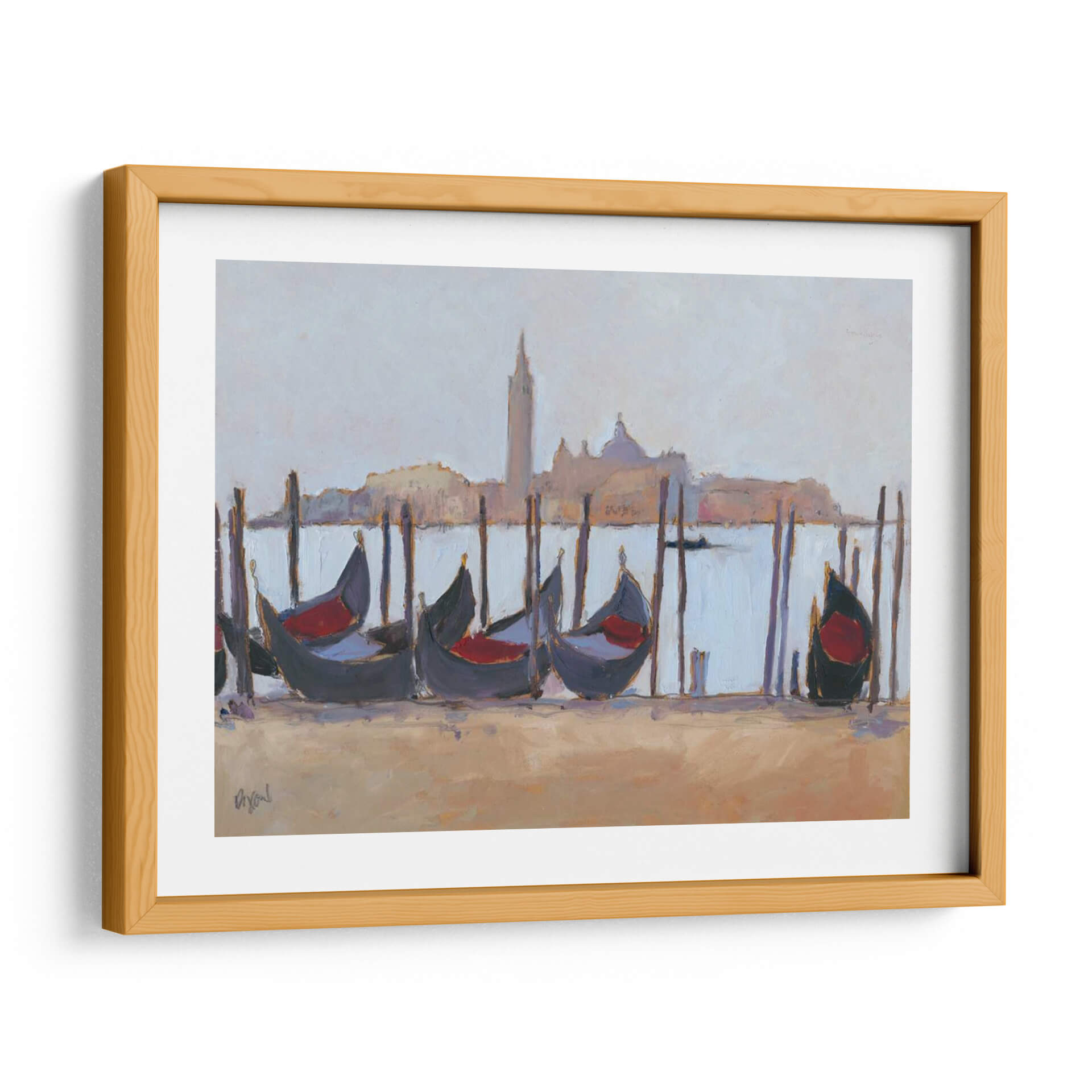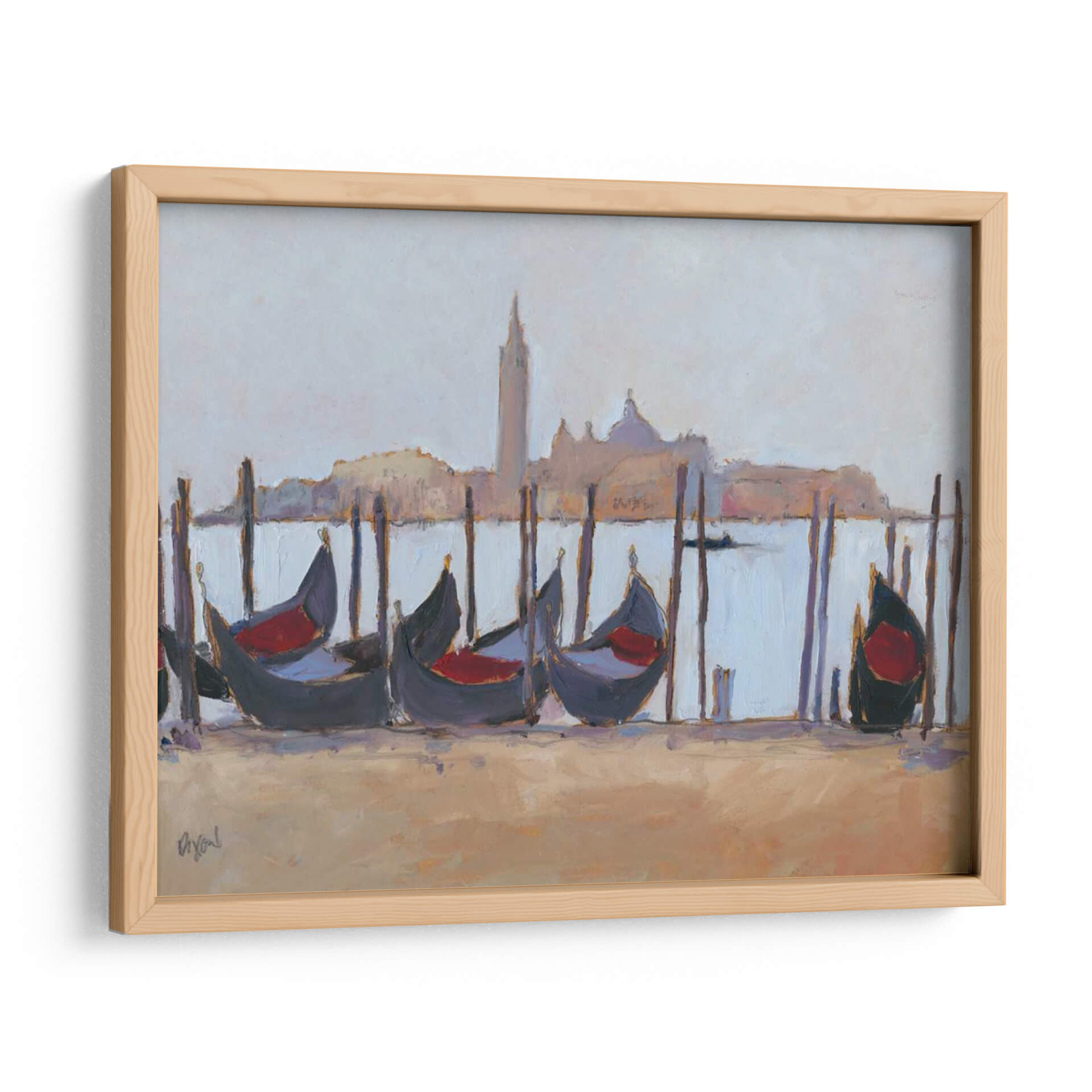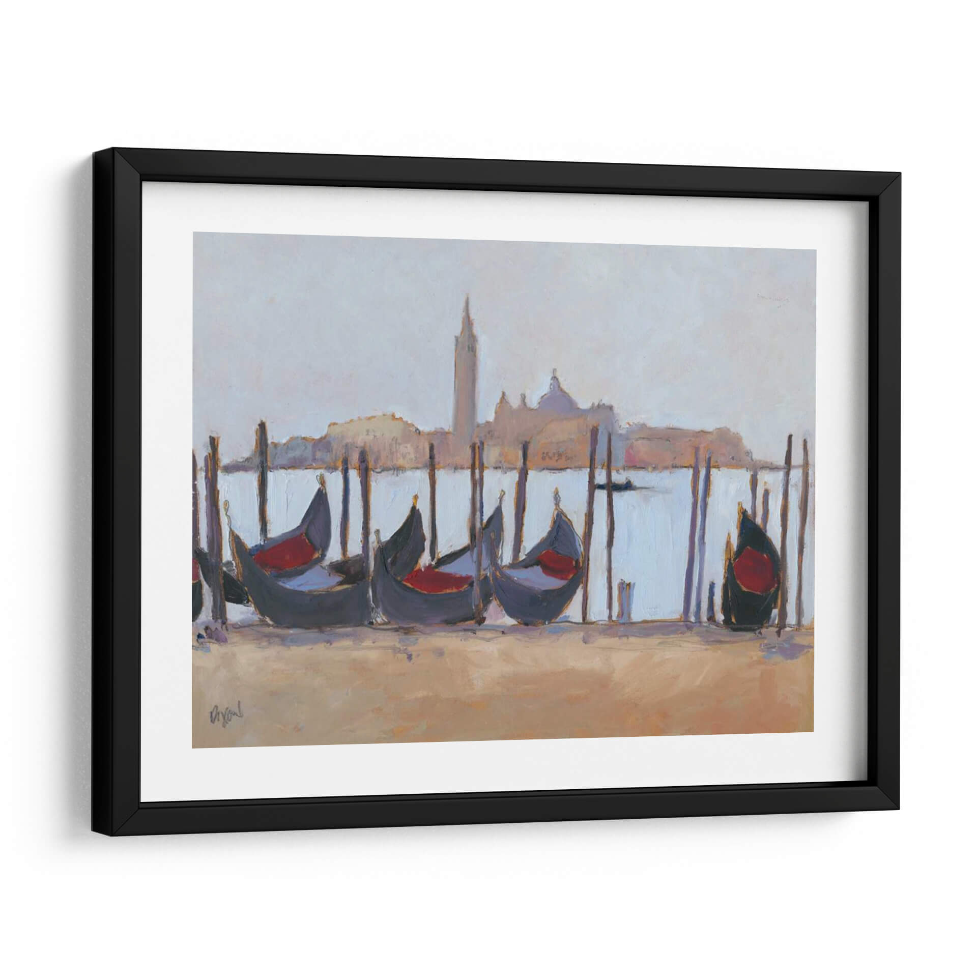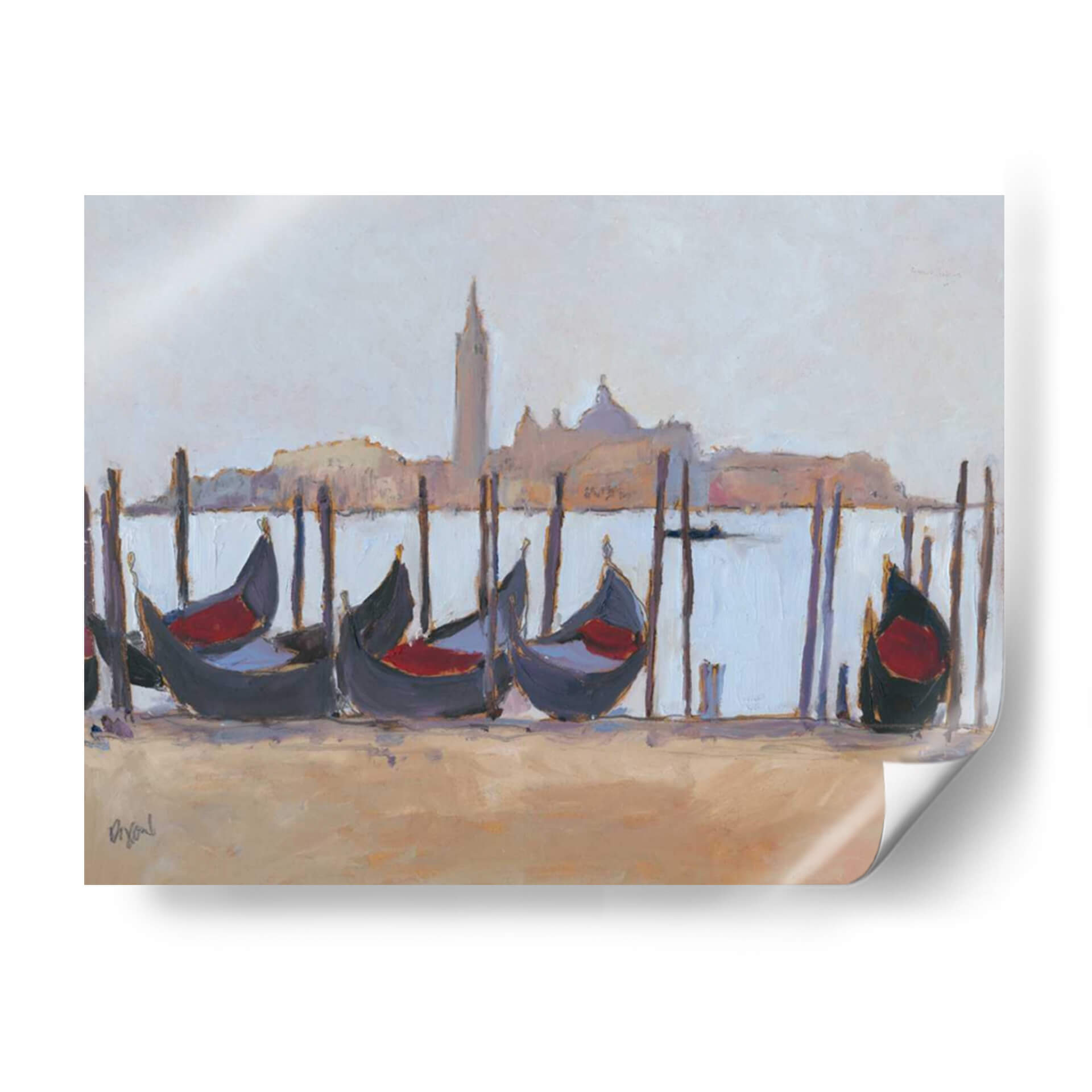 Sumérgete en la serenidad de "Estudio De Venecia Iv", una obra de arte cautivadora de Samuel Dixon que captura la esencia icónica de Venecia. Este cuadro decorativo presenta una evocadora escena de góndolas esperando a lo largo de un canal, con la silueta de la ciudad reflejada en un cielo brumoso. La paleta de colores, dominada por tonos suaves y apacibles de azul pálido, beige arena y sutiles toques de rojo en los asientos de las góndolas, crea una atmósfera de calma y nostalgia. El estilo impresionista de Dixon, con pinceladas sueltas y una captura magistral de la luz, da vida a la escena, invitando al espectador a sentir la brisa marina y el encanto atemporal de la ciudad. "Estudio De Venecia Iv" es perfecto para añadir un toque de elegancia sofisticada y tranquilidad a cualquier espacio, ya sea una sala de estar, un dormitorio o una oficina. Este lienzo es una invitación a soñar despierto, transportándote a los pintorescos canales de una de las ciudades más románticas del mundo, convirtiéndose en un punto focal de conversación y admiración.