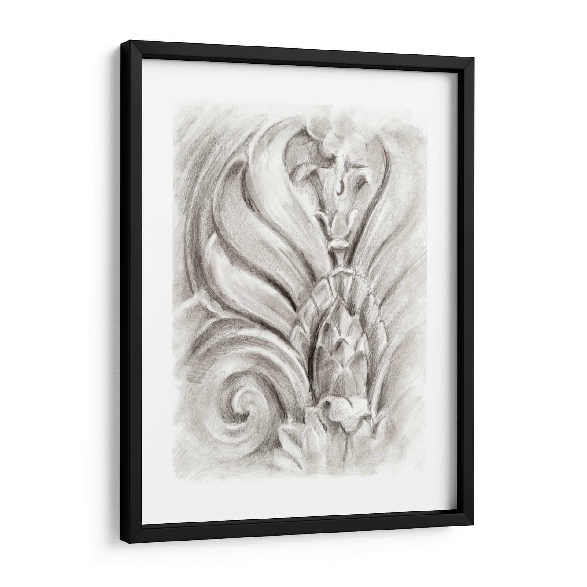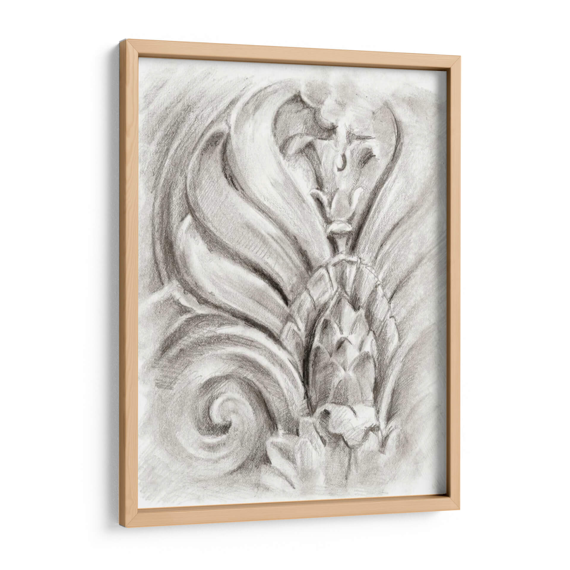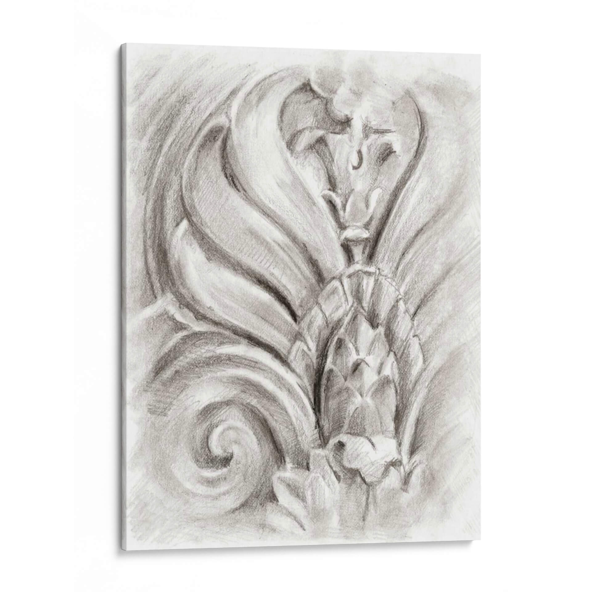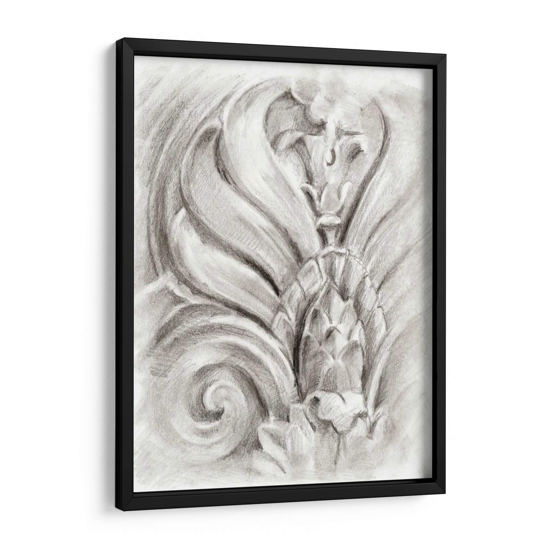 Sumérgete en la delicadeza y la profundidad del 'Estudio Frieze III' de Ethan Harper, una obra de arte que evoca una sensación de elegancia atemporal. Este cuadro decorativo, realizado con trazos magistrales a lápiz, presenta una intrincada composición inspirada en motivos clásicos y naturales. Las formas fluidas y orgánicas se entrelazan con un elemento central que recuerda a una piña o a un capullo floral, sugiriendo crecimiento y vitalidad. La paleta monocromática en grises y blancos resalta la textura y el volumen, creando un juego de luces y sombras que añade dimensión y sofisticación a la pieza. La técnica detallada del lápiz revela la mano experta del artista, capaz de capturar la esencia de la forma con una sutileza exquisita. Este cuadro es perfecto para añadir un toque de refinamiento a cualquier espacio, desde un salón moderno hasta un estudio clásico o una entrada acogedora. Su diseño atemporal lo convierte en una pieza versátil que complementa una amplia gama de estilos decorativos, aportando calma, belleza y un aire de contemplación artística. Un verdadero estudio de la forma y la luz que invita a la admiración.
