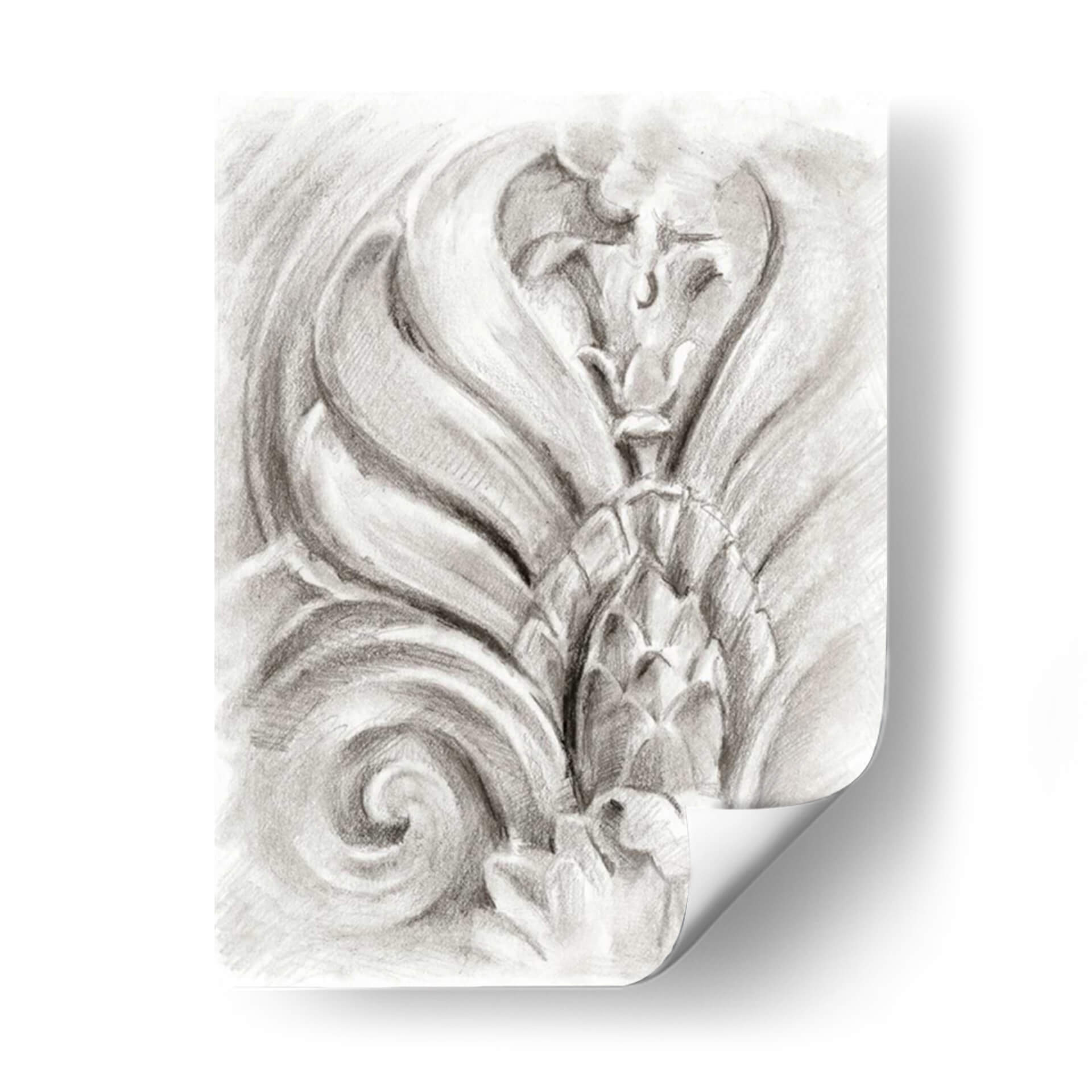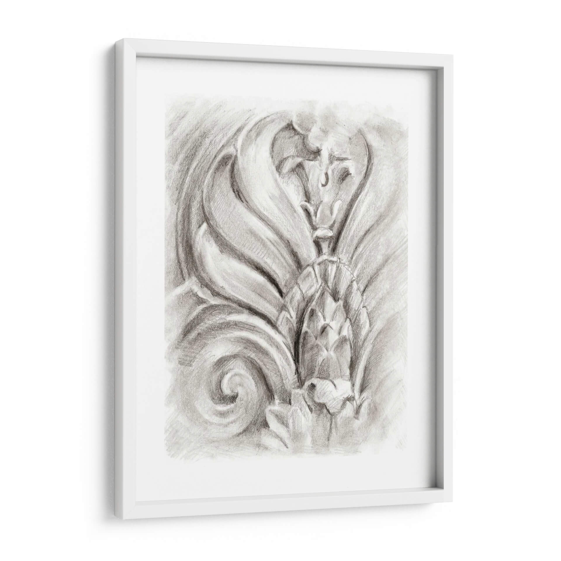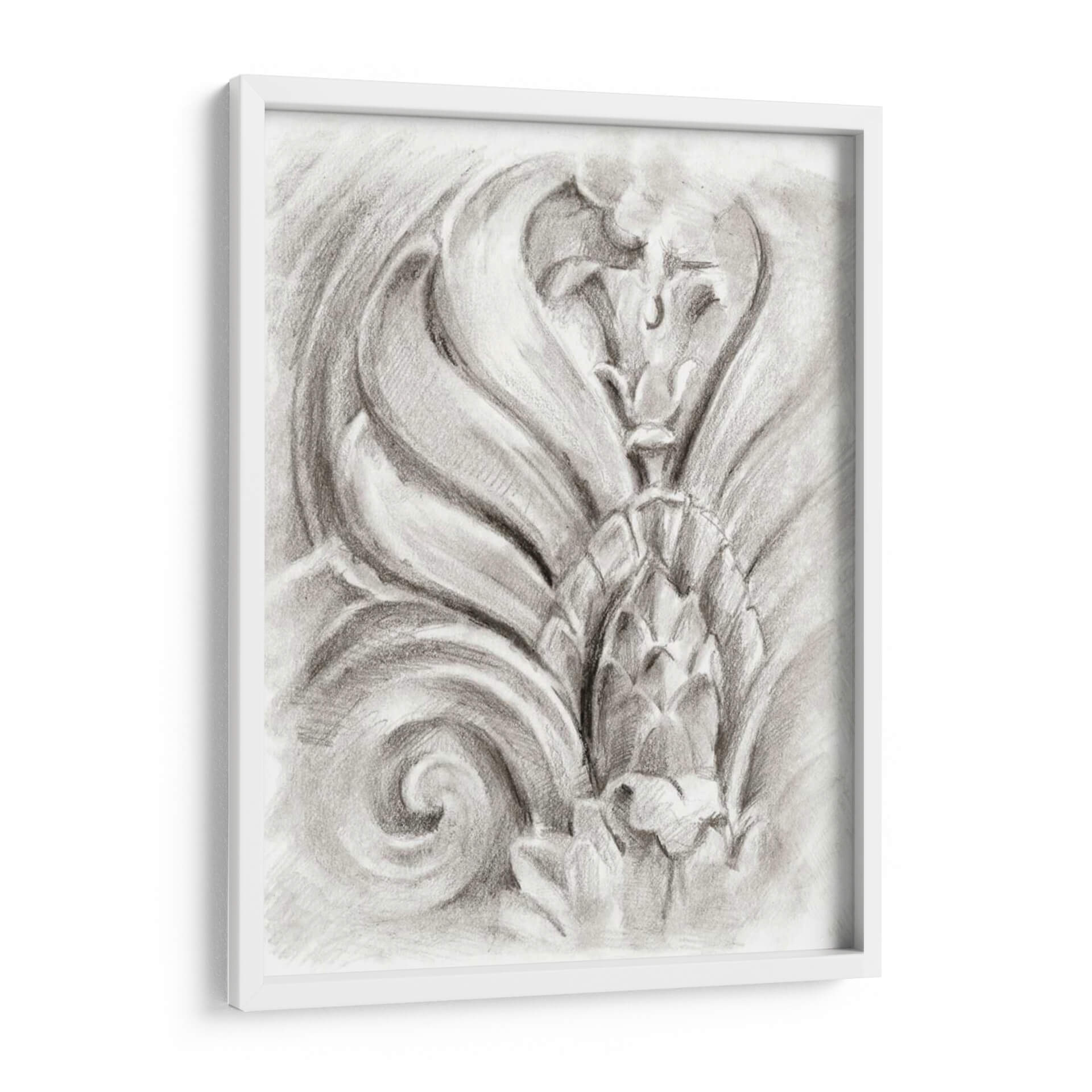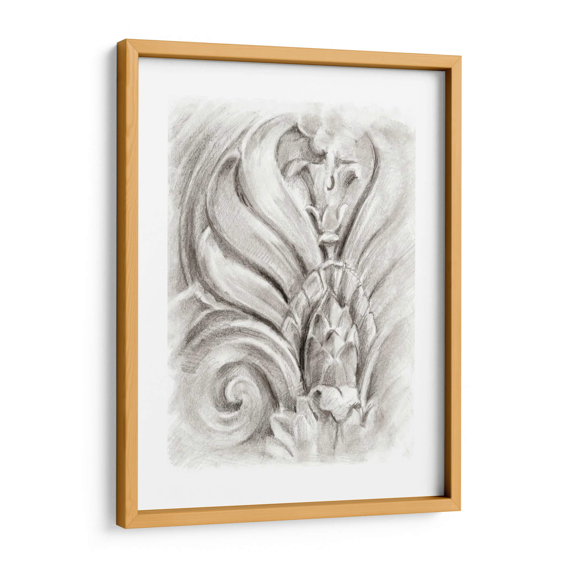 Sumérgete en la delicadeza y la profundidad del 'Estudio Frieze III' de Ethan Harper, una obra de arte que evoca una sensación de elegancia atemporal. Este cuadro decorativo, realizado con trazos magistrales a lápiz, presenta una intrincada composición inspirada en motivos clásicos y naturales. Las formas fluidas y orgánicas se entrelazan con un elemento central que recuerda a una piña o a un capullo floral, sugiriendo crecimiento y vitalidad. La paleta monocromática en grises y blancos resalta la textura y el volumen, creando un juego de luces y sombras que añade dimensión y sofisticación a la pieza. La técnica detallada del lápiz revela la mano experta del artista, capaz de capturar la esencia de la forma con una sutileza exquisita. Este cuadro es perfecto para añadir un toque de refinamiento a cualquier espacio, desde un salón moderno hasta un estudio clásico o una entrada acogedora. Su diseño atemporal lo convierte en una pieza versátil que complementa una amplia gama de estilos decorativos, aportando calma, belleza y un aire de contemplación artística. Un verdadero estudio de la forma y la luz que invita a la admiración.