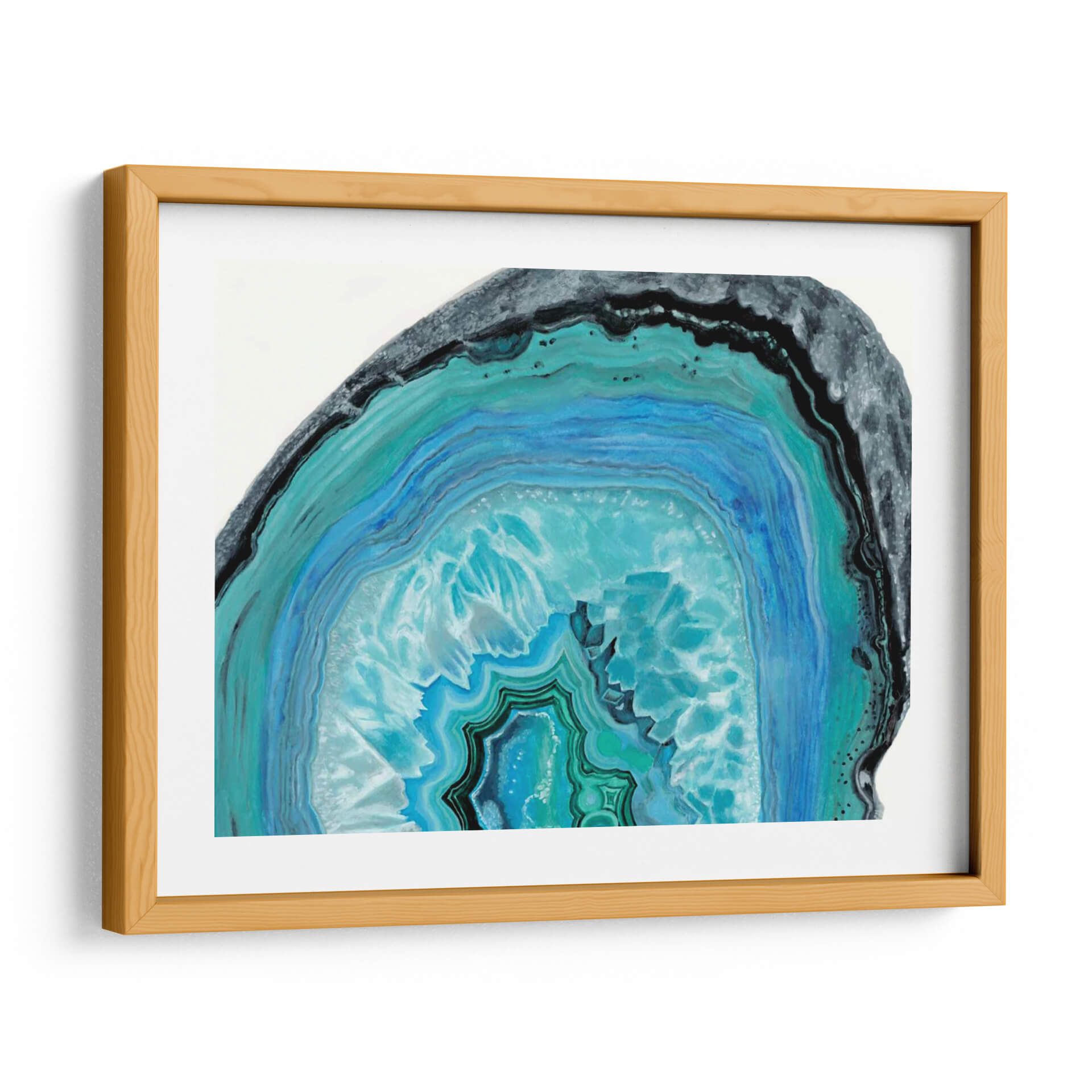 Sumérgete en la belleza hipnótica de "Estudios De Ágata II", una obra maestra abstracta de Naomi McCavitt que captura la esencia geológica de las gemas en una explosión de tonos acuáticos. Este cuadro decorativo es una ventana a las profundidades de la Tierra, con capas concéntricas de azules vibrantes, turquesas profundas y blancos etéreos que imitan la intrincada estructura de una ágata. Las texturas visuales y los sutiles degradados de color crean una sensación de movimiento y profundidad, invitando al espectador a explorar sus detalles. La composición, centrada en el corte transversal de esta maravilla natural, está enmarcada por un borde oscuro y texturizado que contrasta con el fondo luminoso, realzando la intensidad de los colores centrales. "Estudios De Ágata II" no es solo una pieza decorativa, sino una invitación a la contemplación, perfecta para infundir calma y sofisticación en cualquier espacio, desde una sala de estar moderna hasta un sereno dormitorio o un espacio de trabajo inspirador. Añade un toque de la naturaleza reimaginada a tu hogar con este cuadro abstracto que evoca serenidad y asombro.