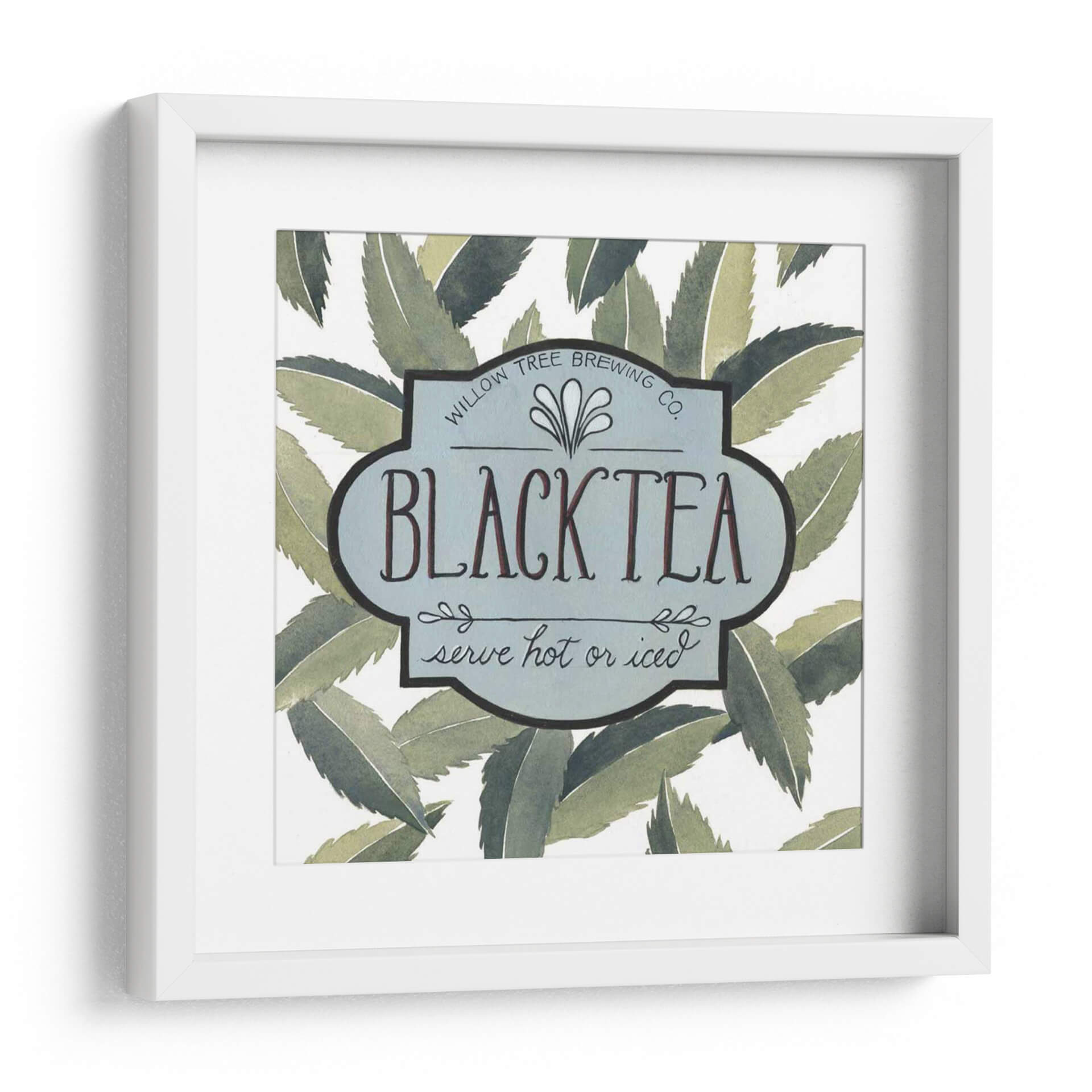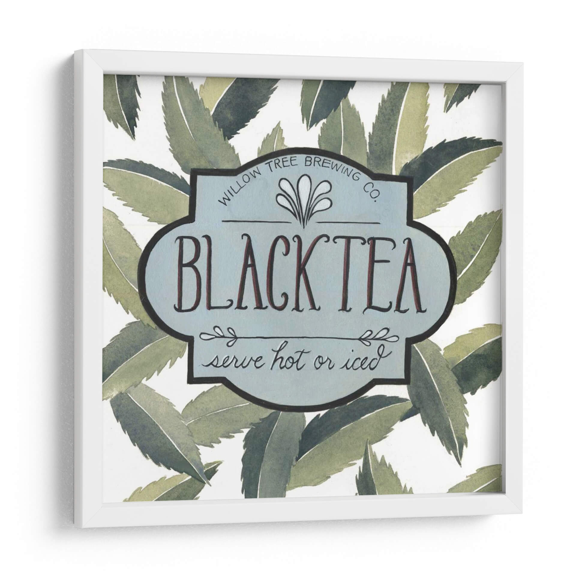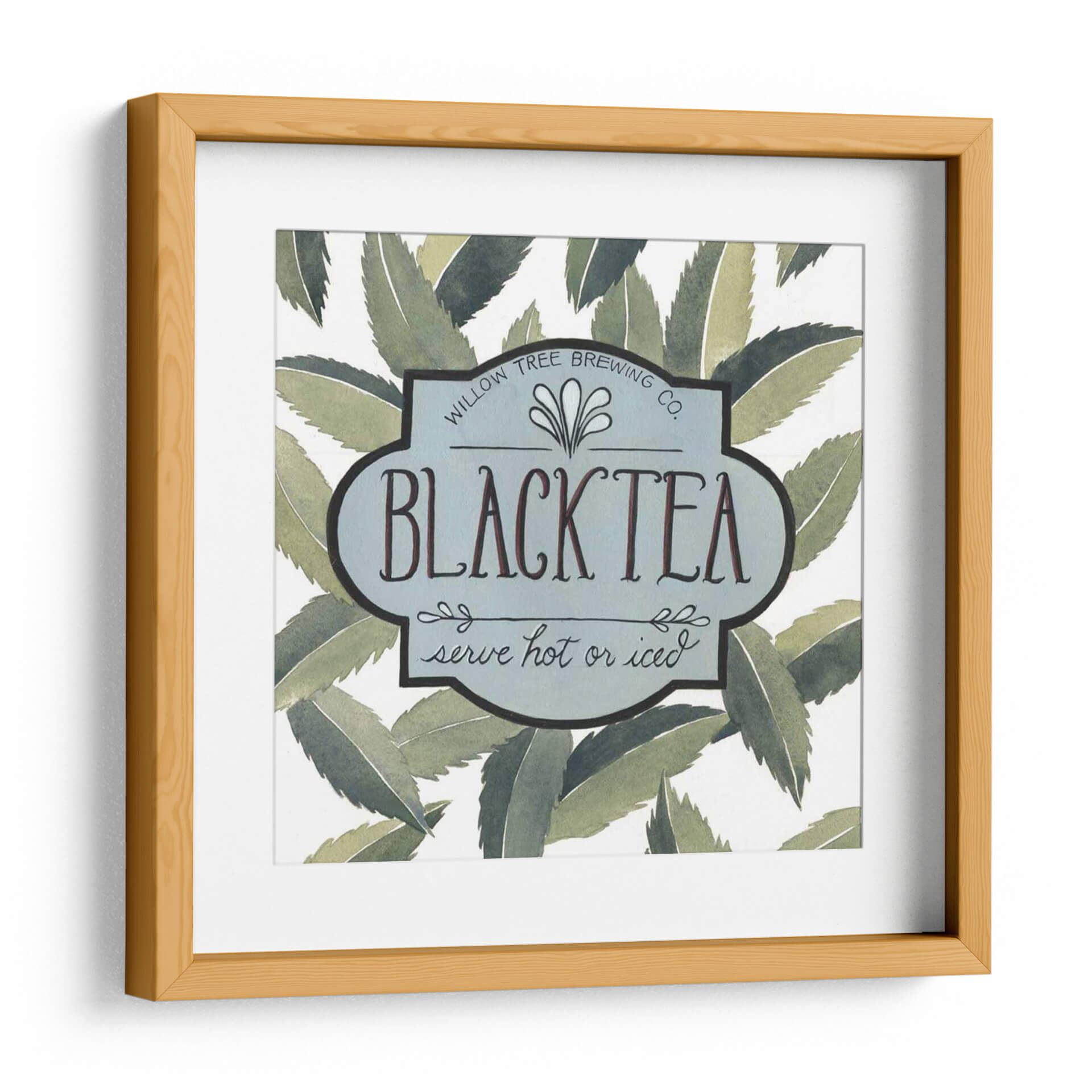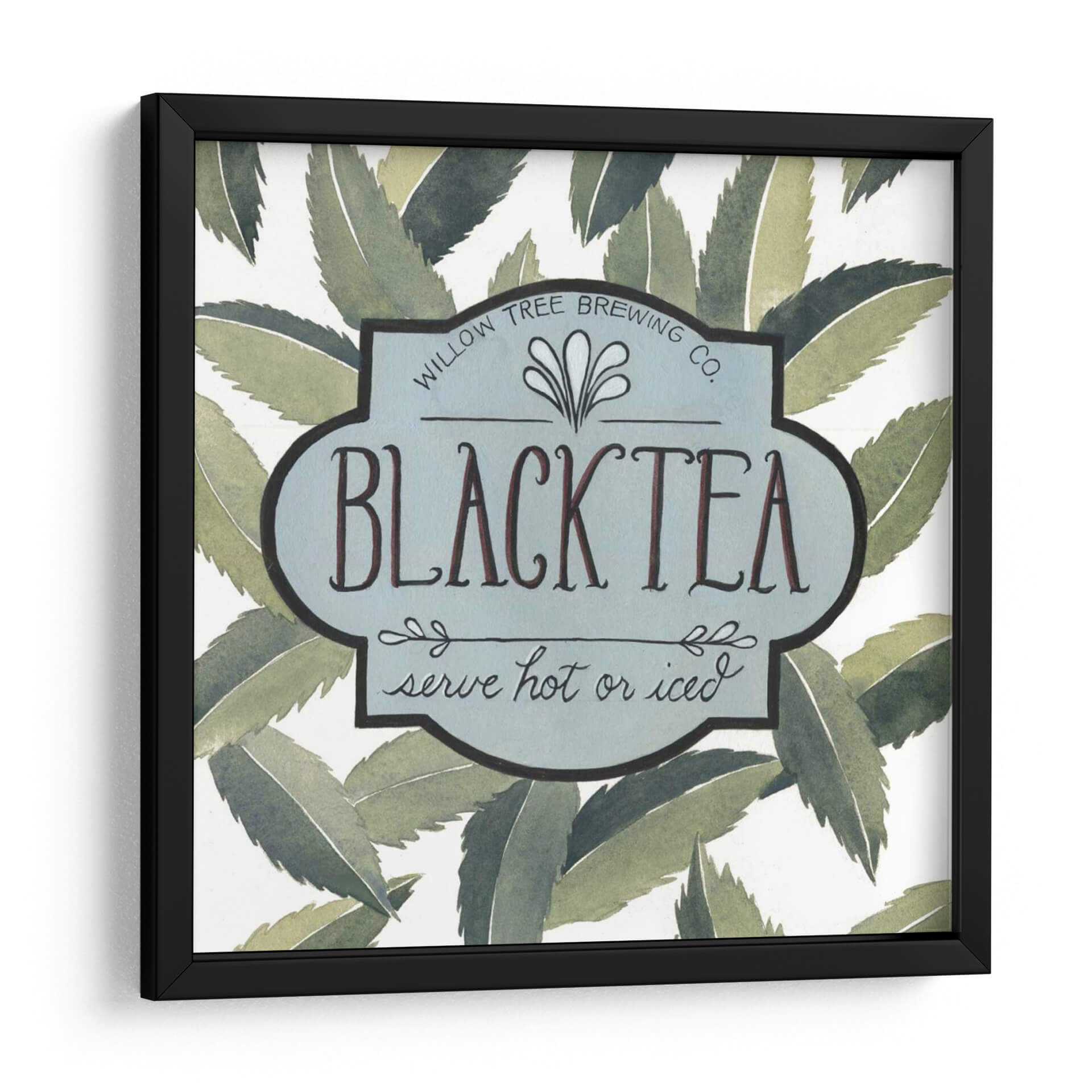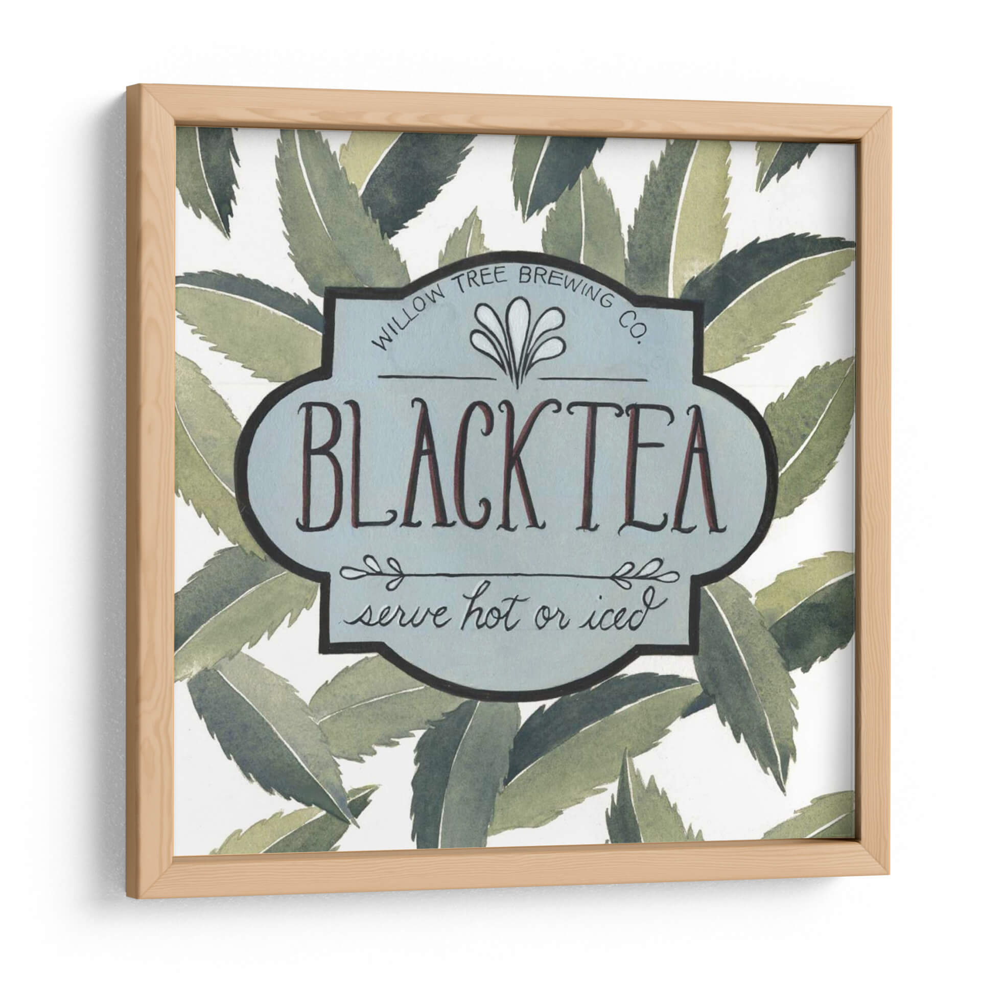 Transforma tu espacio con "Etiqueta de Té II", una cautivadora obra de arte de Grace Popp que evoca la frescura y el encanto de una experiencia de té relajante. Esta pieza presenta un diseño inspirado en etiquetas vintage, con el texto "BLACK TEA" centralizado en un elegante panel azul pálido, complementado por la inscripción "serve hot or iced" en una tipografía cursiva y atractiva. El fondo y los bordes de la obra se adornan con una exuberante repetición de hojas verdes, pintadas con acuarelas sutiles que aportan una sensación orgánica y natural. La paleta de colores, dominada por verdes vibrantes y el suave contraste del azul, crea una atmósfera serena y acogedora, perfecta para añadir un toque de sofisticación botánica a cualquier ambiente. Ideal para cocinas, comedores o espacios donde se busca una conexión con la naturaleza y un respiro del ajetreo diario, este cuadro decorativo es una invitación a la calma y al disfrute. Su estilo, que combina elementos gráficos con un toque artesanal, lo convierte en una pieza versátil que puede complementar desde decoraciones rústicas hasta interiores modernos con un guiño a lo vintage. Añade "Etiqueta de Té II" y respira la tranquilidad y el buen gusto en tu hogar.