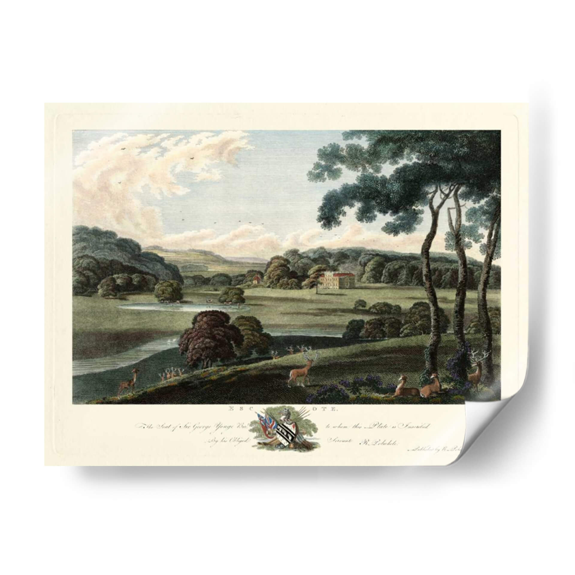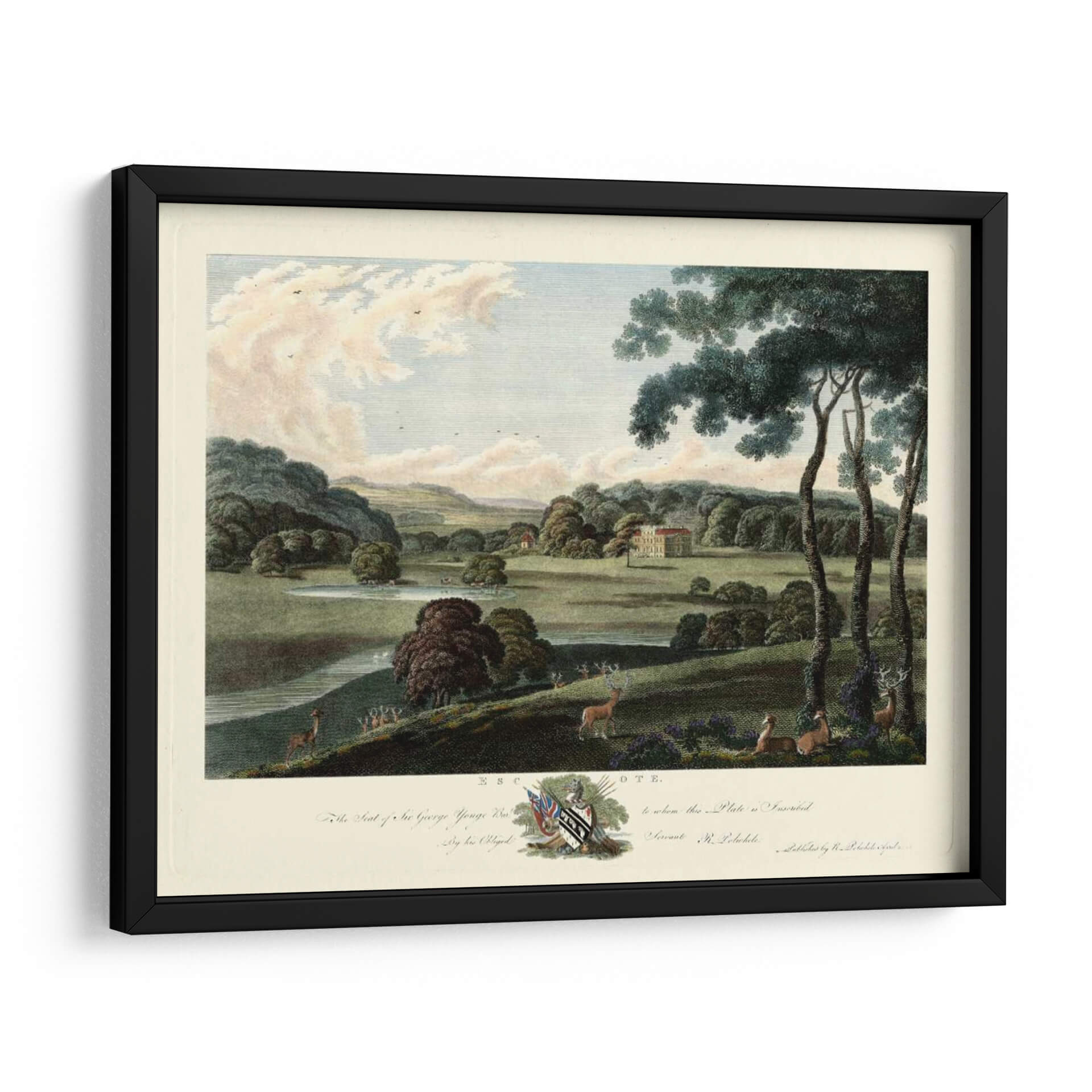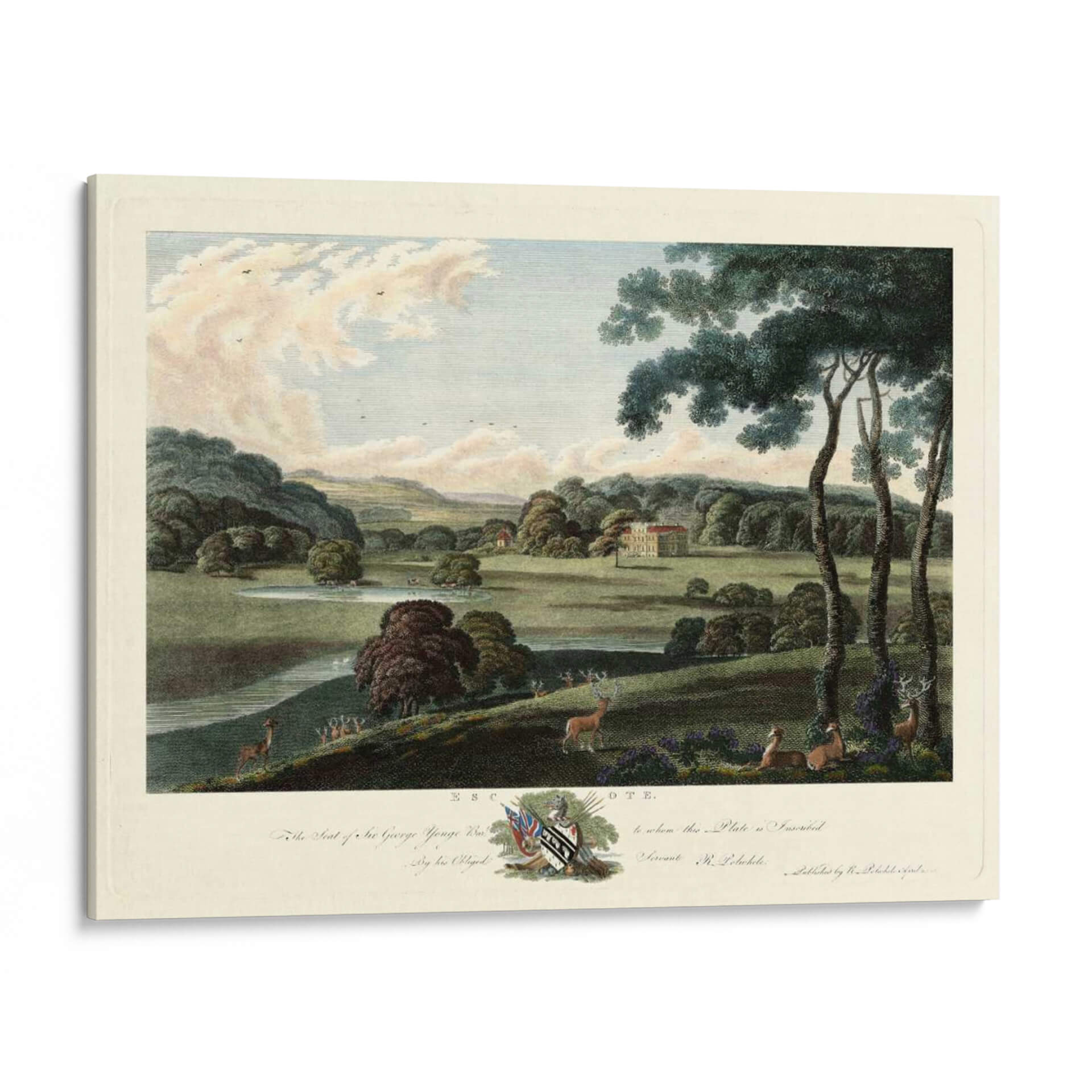 Emb uevo en la serenidad de "Finca Escote", una obra de arte que transporta al espectador a un idílico paisaje campestre. Richard Polwhele captura con maestría la majestuosidad de una finca rodeada de exuberante vegetación, colinas ondulantes y un sereno cuerpo de agua. La paleta de colores, dominada por verdes profundos, tonos tierra y el suave azul del cielo, crea una atmósfera de paz y tranquilidad. La composición, con árboles imponentes en primer plano y una casa señorial en la distancia, invita a la contemplación y al asombro. La presencia de ciervos pastando pacíficamente añade un toque de vida salvaje y naturalidad a la escena. Este cuadro decorativo es ideal para infundir calma y elegancia en salones, estudios o dormitorios, transformando cualquier espacio en un remanso de paz. Su estilo clásico y su temática atemporal lo convierten en una elección perfecta para quienes buscan una decoración sofisticada y evocadora.