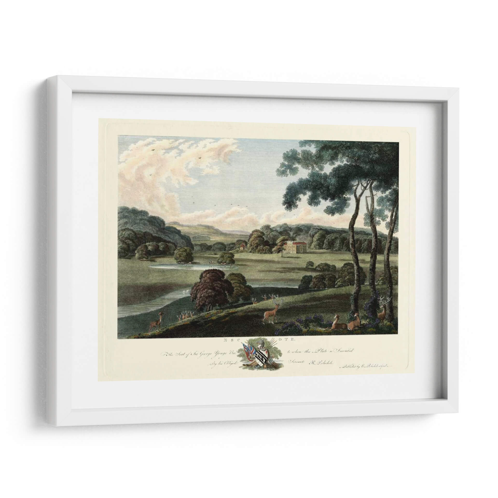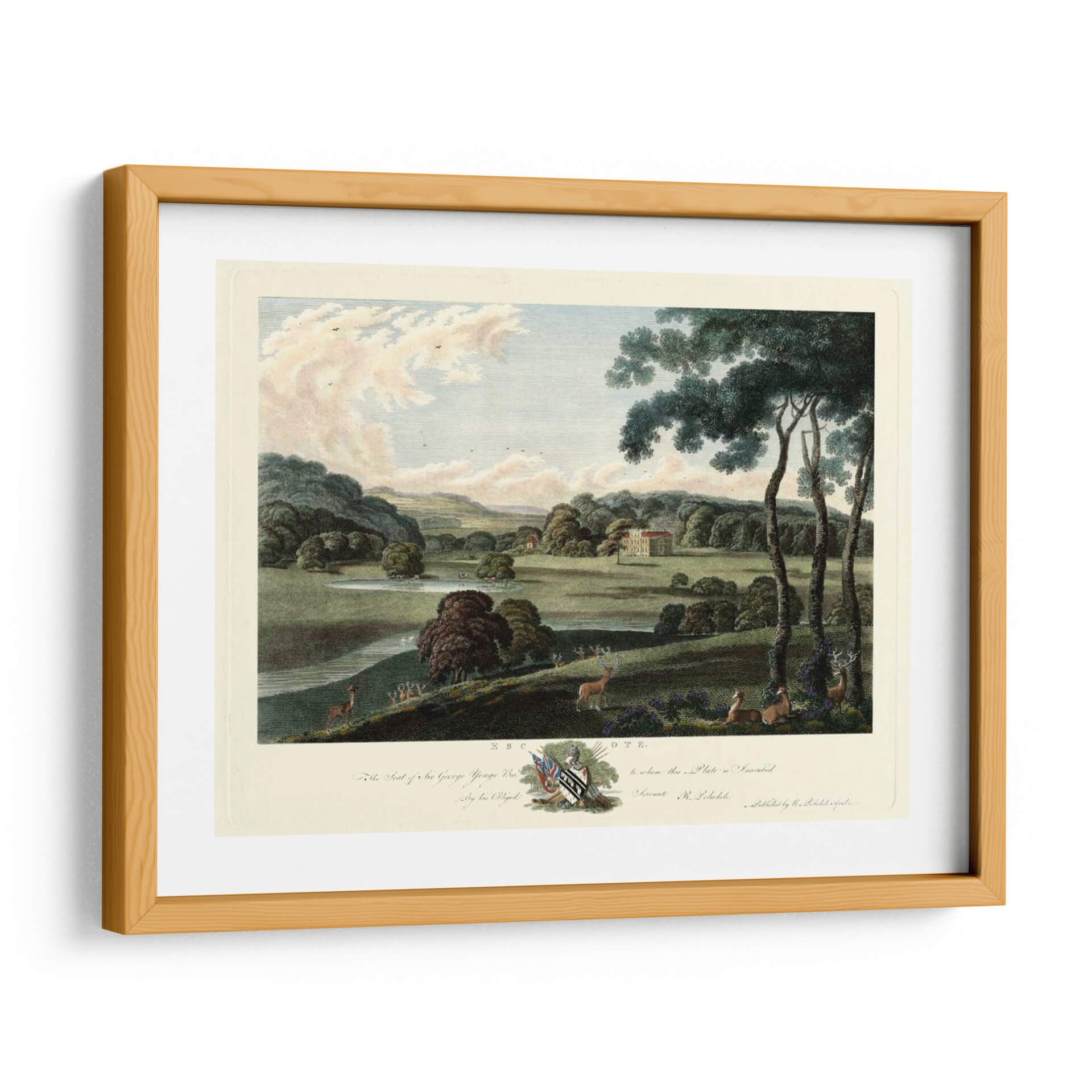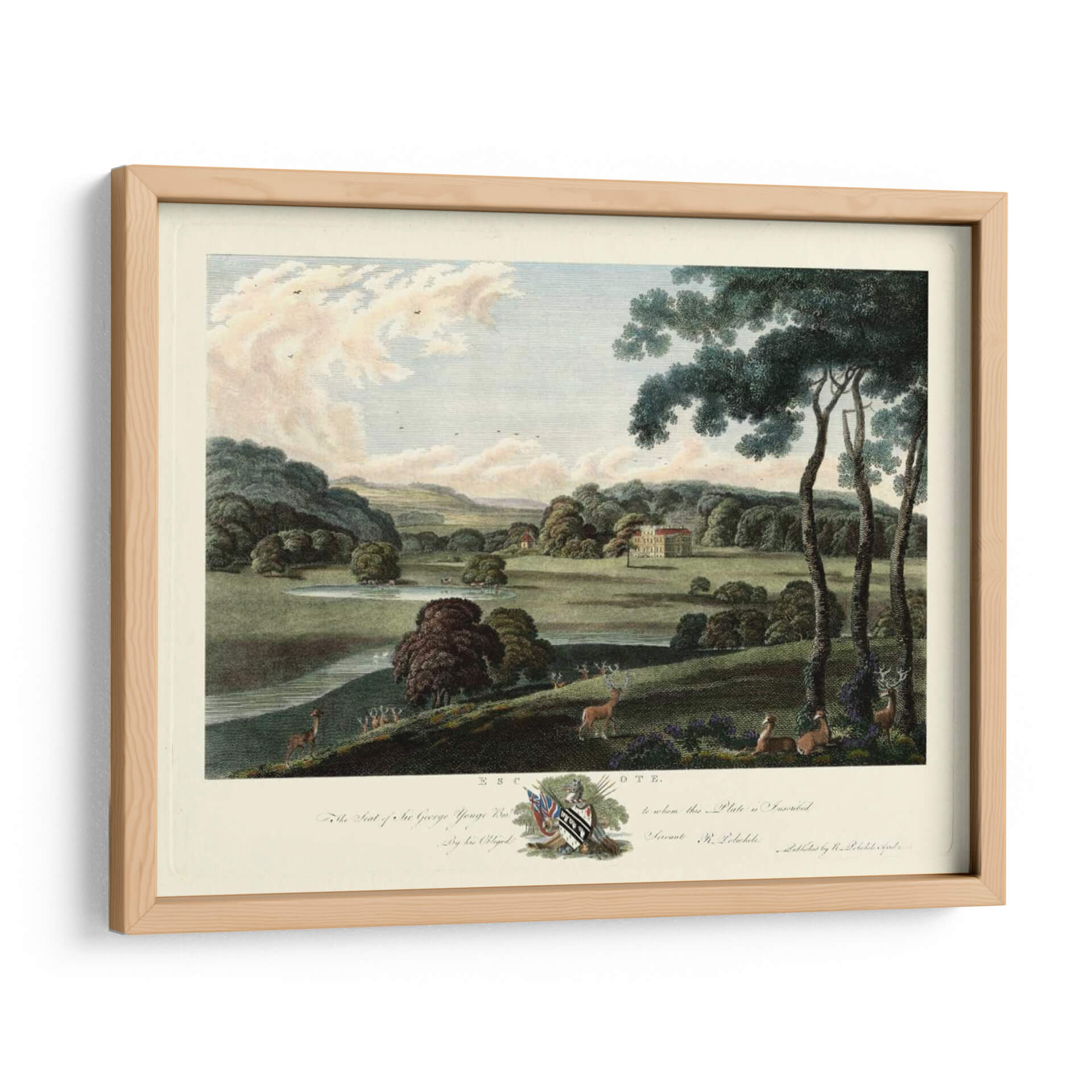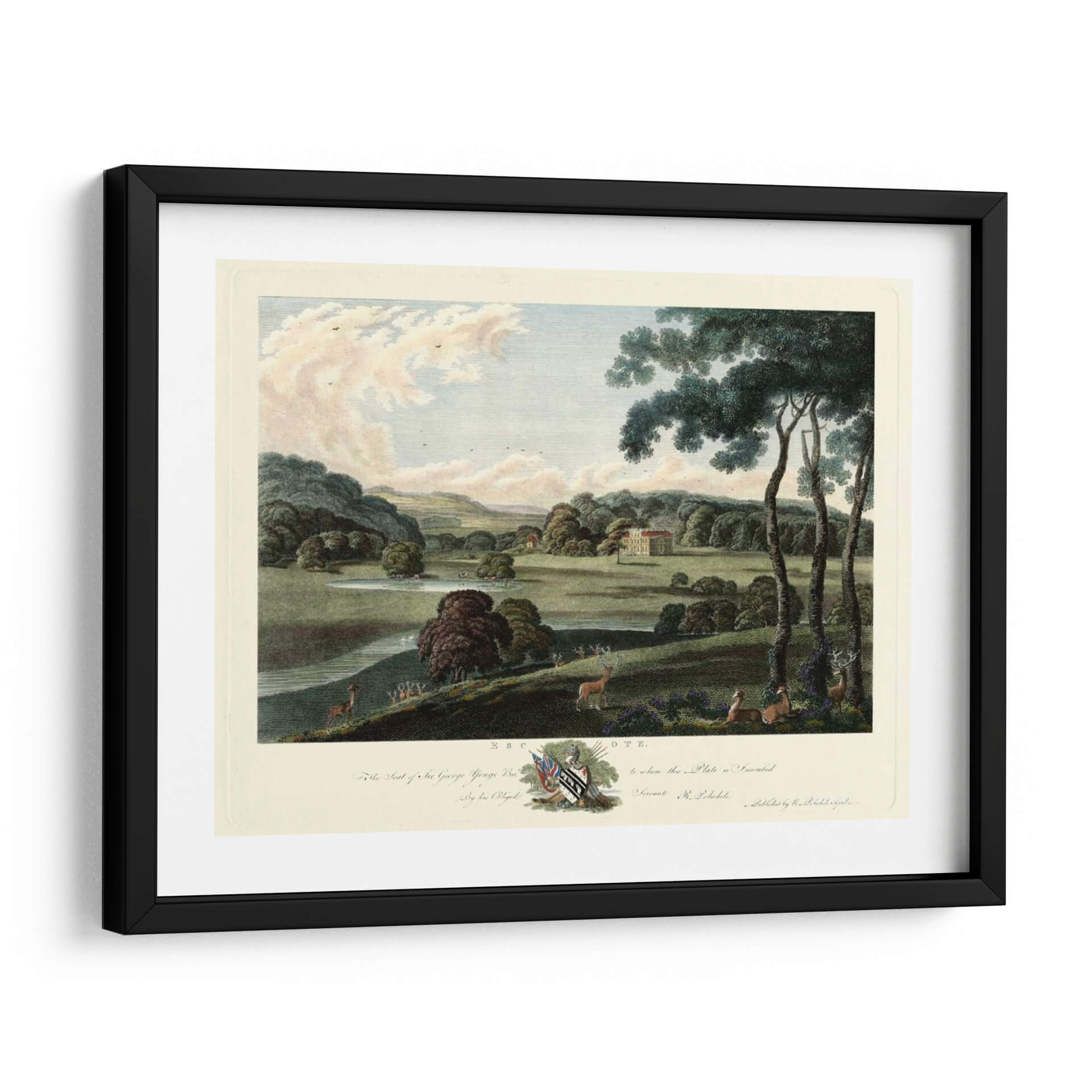 Emb uevo en la serenidad de "Finca Escote", una obra de arte que transporta al espectador a un idílico paisaje campestre. Richard Polwhele captura con maestría la majestuosidad de una finca rodeada de exuberante vegetación, colinas ondulantes y un sereno cuerpo de agua. La paleta de colores, dominada por verdes profundos, tonos tierra y el suave azul del cielo, crea una atmósfera de paz y tranquilidad. La composición, con árboles imponentes en primer plano y una casa señorial en la distancia, invita a la contemplación y al asombro. La presencia de ciervos pastando pacíficamente añade un toque de vida salvaje y naturalidad a la escena. Este cuadro decorativo es ideal para infundir calma y elegancia en salones, estudios o dormitorios, transformando cualquier espacio en un remanso de paz. Su estilo clásico y su temática atemporal lo convierten en una elección perfecta para quienes buscan una decoración sofisticada y evocadora.