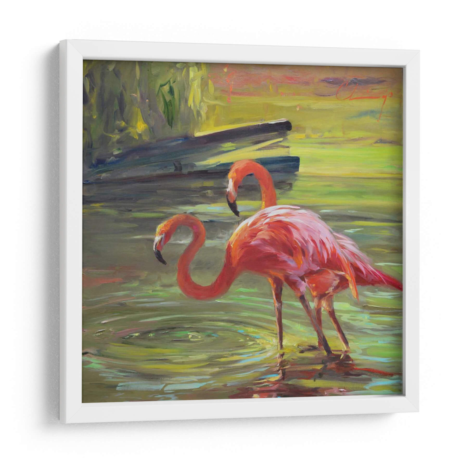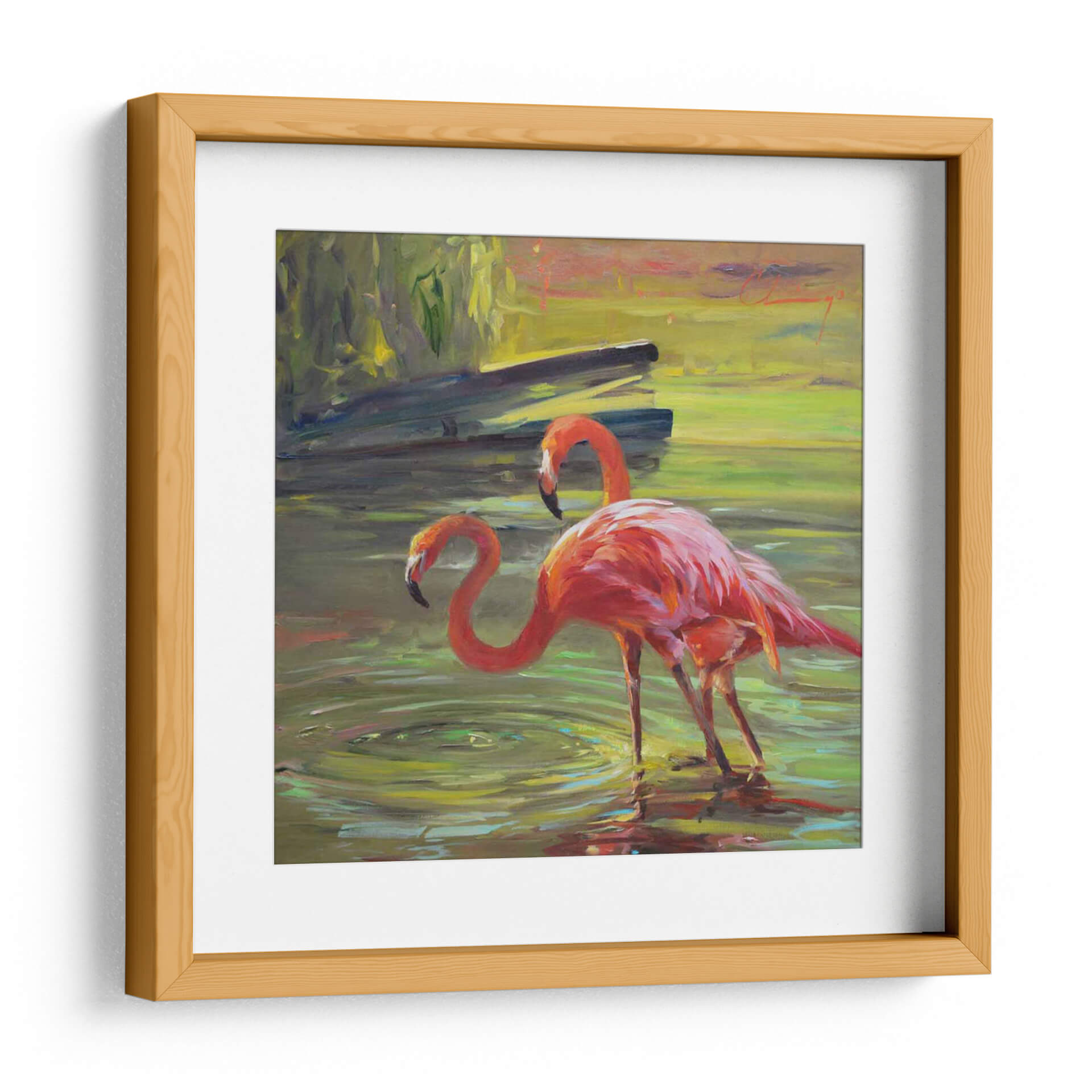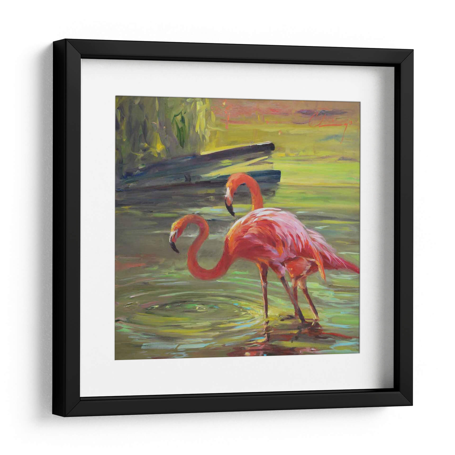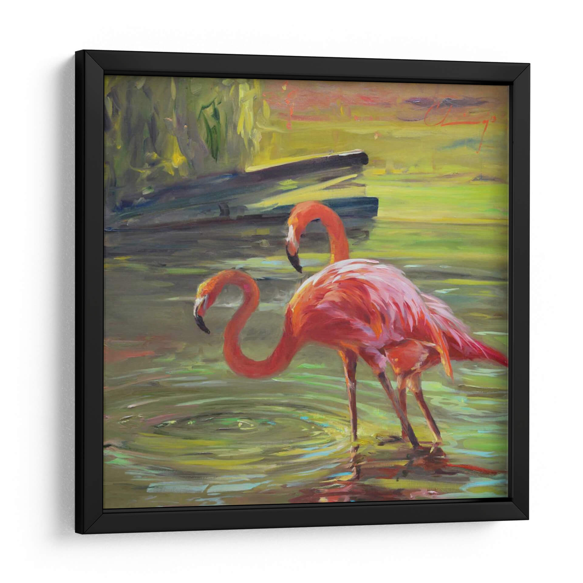 Sumérgete en la serena belleza de "Flamingo III" de Chuck Larivey, una cautivadora obra de arte que captura la gracia de estas icónicas aves en su hábitat natural. Los vibrantes tonos rosados de los flamencos contrastan maravillosamente con el exuberante follaje verde y las aguas tranquilas que los rodean, creando una composición visualmente impactante. La técnica de pintura, con sus pinceladas expresivas y un juego de luces y sombras cautivador, aporta una sensación de movimiento y vida a la pieza. Esta obra evoca una atmósfera de paz y armonía, perfecta para añadir un toque de naturaleza exótica y sofisticación a cualquier espacio, ya sea tu hogar o tu oficina. Ideal para quienes buscan una decoración que combine elegancia con la vitalidad de la fauna. "Flamingo III" no es solo un cuadro, es una ventana a un mundo de calma y color que transformará tus paredes en una galería personal. Añade esta pieza maestra a tu colección y disfruta de su encanto atemporal.