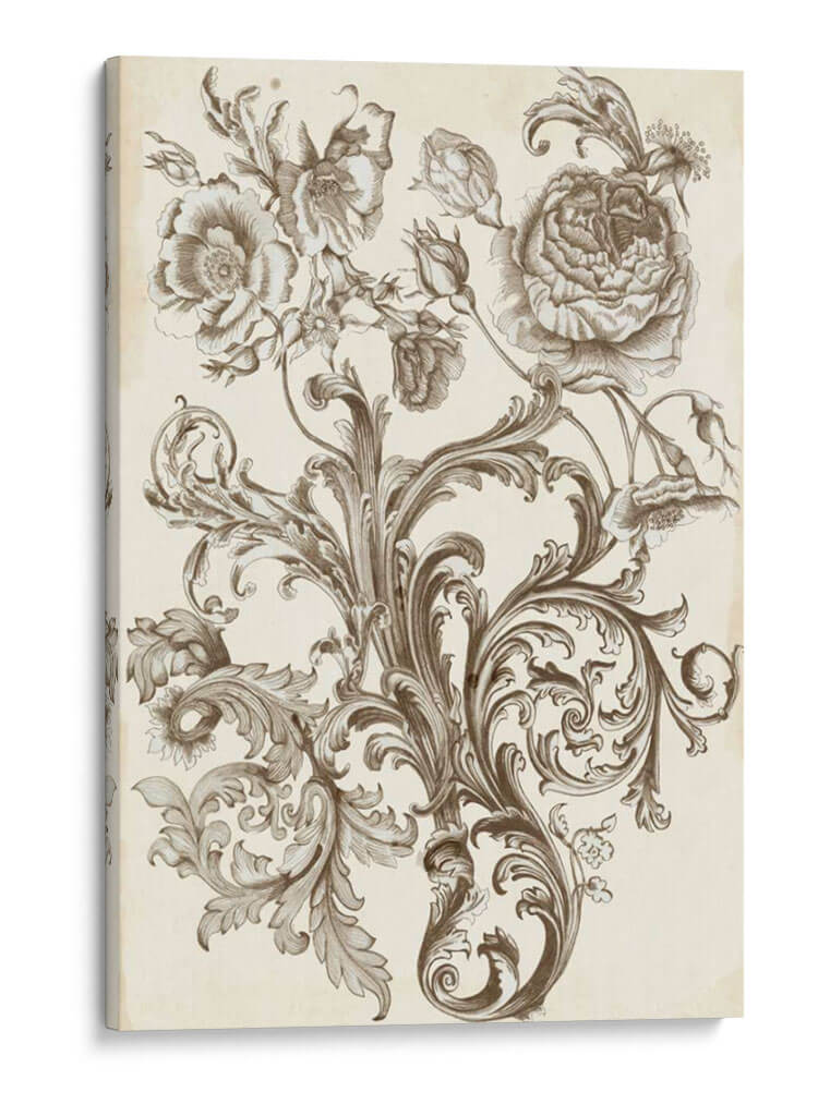 Sumérgete en la elegancia atemporal con "Flora y Filigrana II", una obra maestra de Naomi McCavitt que evoca la delicadeza de la naturaleza a través de un intrincado diseño de inspiración botánica. Este cuadro decorativo presenta un detallado estudio de flores y hojas, ejecutado con un estilo que recuerda a las ilustraciones botánicas clásicas y los grabados antiguos, pero con una sensibilidad contemporánea. La paleta de colores sepia y beige crea una atmósfera serena y sofisticada, aportando calidez y un toque de nostalgia a cualquier espacio. La composición, rica en detalles y curvas ornamentales, invita a la contemplación, fusionando la delicadeza floral con la complejidad de la filigrana. Ideal para aquellos que buscan añadir un elemento de gracia y refinamiento a su hogar u oficina, este lienzo es perfecto para salones, comedores o estudios donde se desee proyectar tranquilidad y un aprecio por el arte detallado. "Flora y Filigrana II" no es solo una pieza decorativa, sino una ventana a un mundo de belleza orgánica y artesanía exquisita, capaz de transformar cualquier pared en un punto focal de elegancia sutil y estilo clásico reinventado, asegurando que tu espacio refleje una personalidad cultivada y un gusto impecable.
