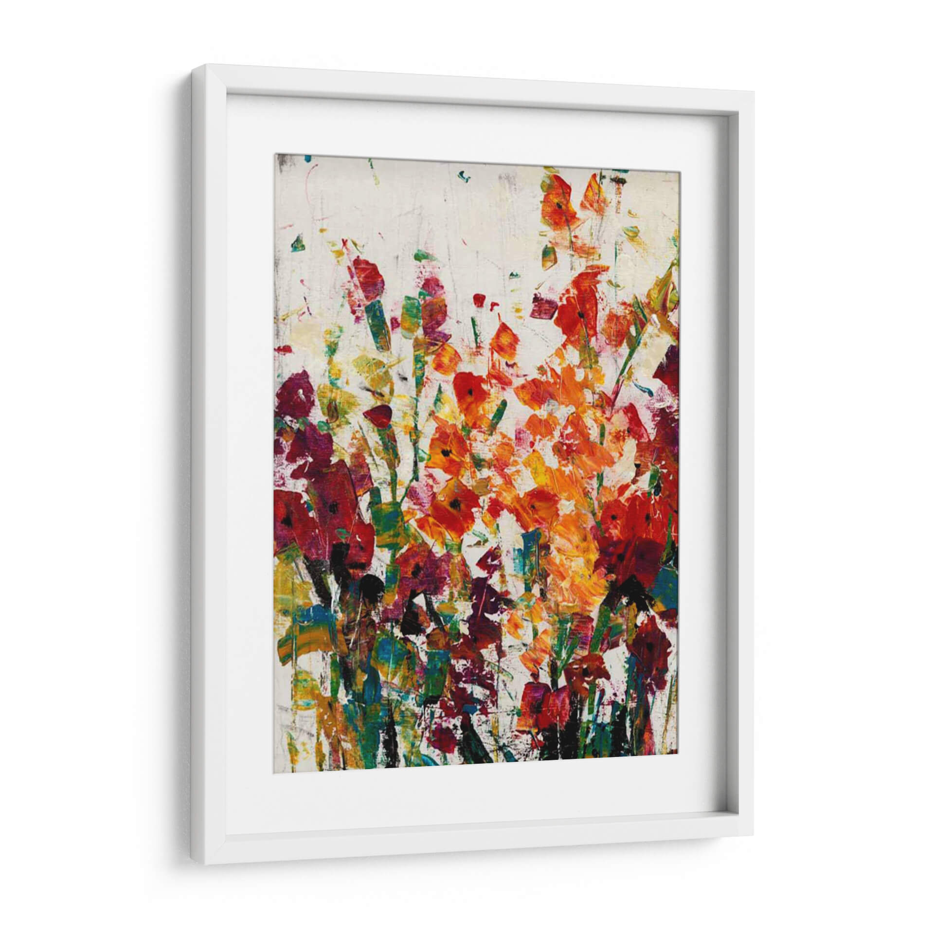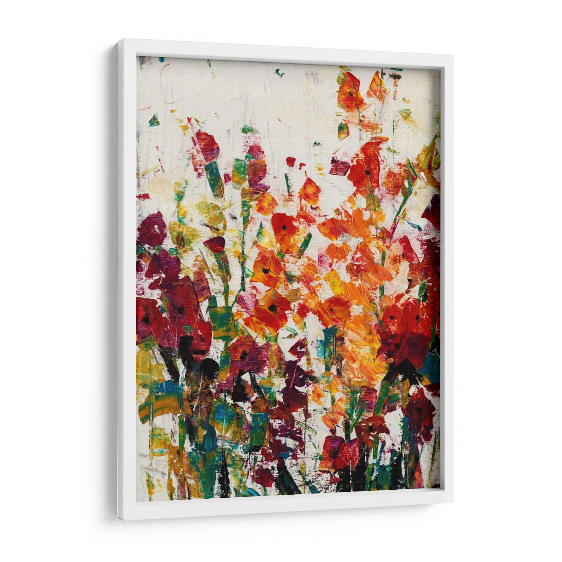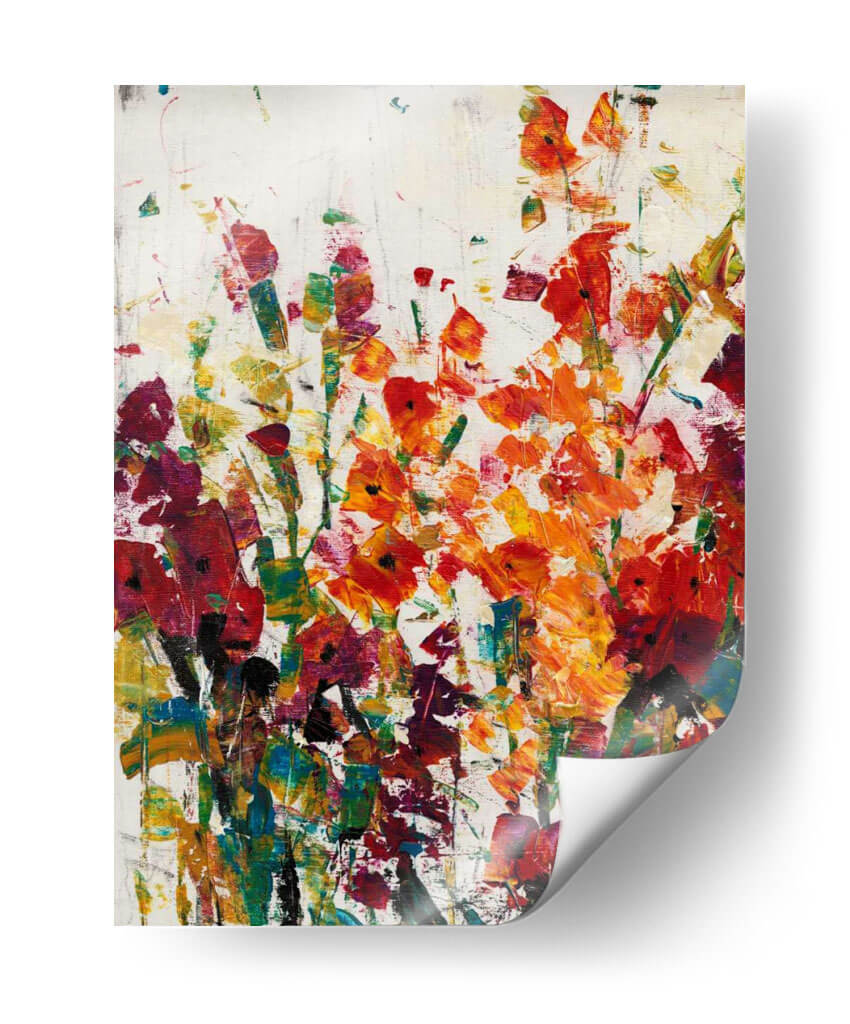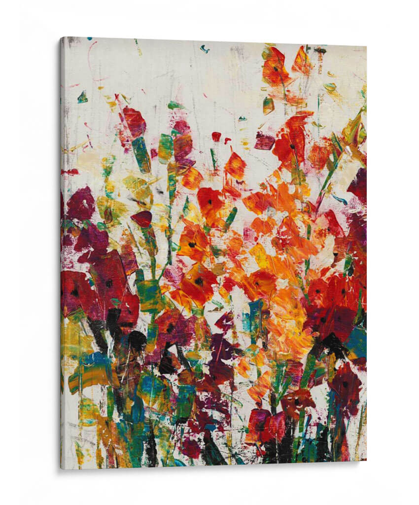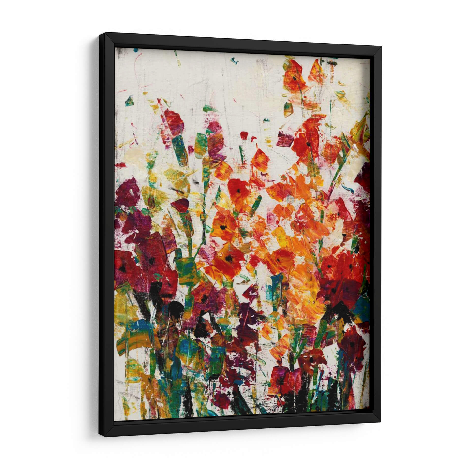 Embellece tu hogar con el vibrante cuadro decorativo 'Flores Silvestres Florecientes II' de Tim OToole. Esta obra de arte abstracto captura la esencia de un jardín en plena floración con pinceladas audaces y una paleta de colores intensa que evoca alegría y vitalidad. Los tonos rojos, naranjas y púrpuras se entrelazan con toques de verde y azul, creando una composición dinámica que atrae la mirada y añade profundidad a cualquier espacio. Su estilo impresionista moderno, con texturas ricas y un enfoque en la emoción sobre la representación literal, lo convierte en una pieza ideal para dar vida a salas de estar, comedores o incluso oficinas. Imagina cómo este cuadro transformará tu ambiente, aportando un toque de naturaleza y optimismo. Es una elección perfecta para quienes buscan una decoración de pared que sea a la vez elegante y llena de energía, capaz de convertirse en el punto focal de la habitación y reflejar un espíritu creativo y audaz. Añade esta explosión de color y vida a tu colección de arte.