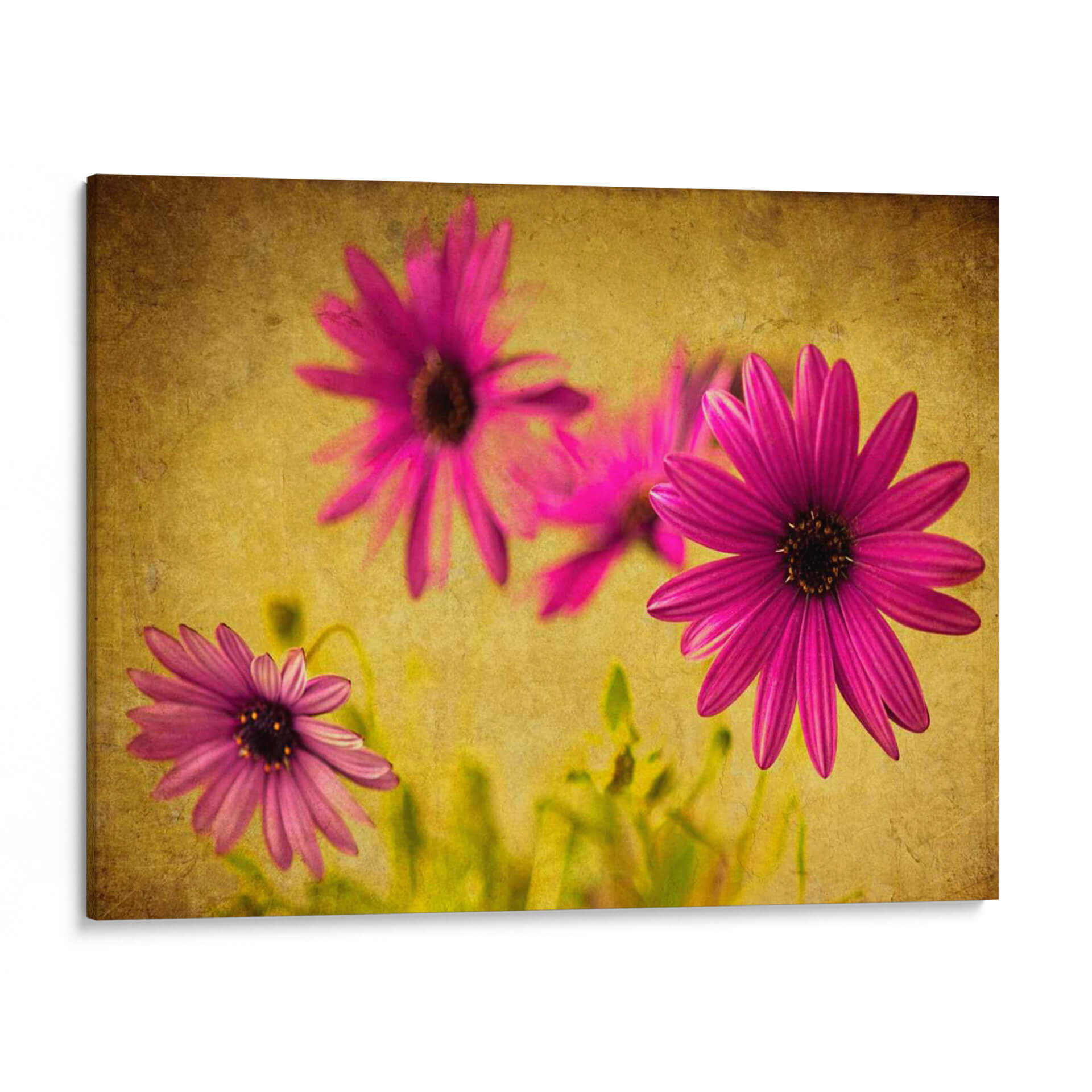 Sumérgete en la vibrante belleza de 'Fucsia Daisy II', una obra de arte que captura la esencia de las flores con una intensidad cautivadora. Este cuadro decorativo presenta delicadas flores de un vibrante color fucsia, dispuestas con una gracia natural sobre un fondo texturizado de tonos ocres y dorados que evoca una sensación de calidez y antigüedad. La técnica utilizada resalta la delicadeza de los pétalos y la profundidad de los centros oscuros, creando un contraste visual impactante. El estilo, con toques de realismo y una atmósfera etérea, invita a la contemplación y añade un toque de sofisticación a cualquier espacio. Ideal para quienes buscan infundir energía y color en su hogar u oficina, esta pieza se convierte en un punto focal excepcional. 'Fucsia Daisy II' es más que una simple decoración; es una ventana a la naturaleza, una explosión de vitalidad y un recordatorio de la belleza efímera de las flores, perfecta para salones modernos, dormitorios acogedores o estudios creativos, aportando un aire de frescura y elegancia atemporal. Su composición centrada en la flor principal atrae la mirada, mientras que los elementos difuminados añaden misterio y profundidad.