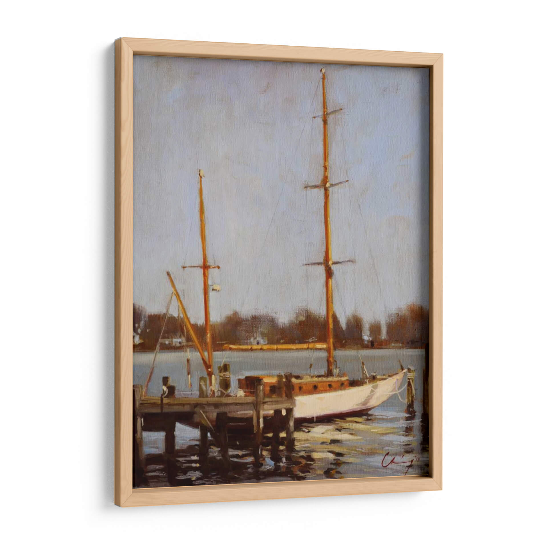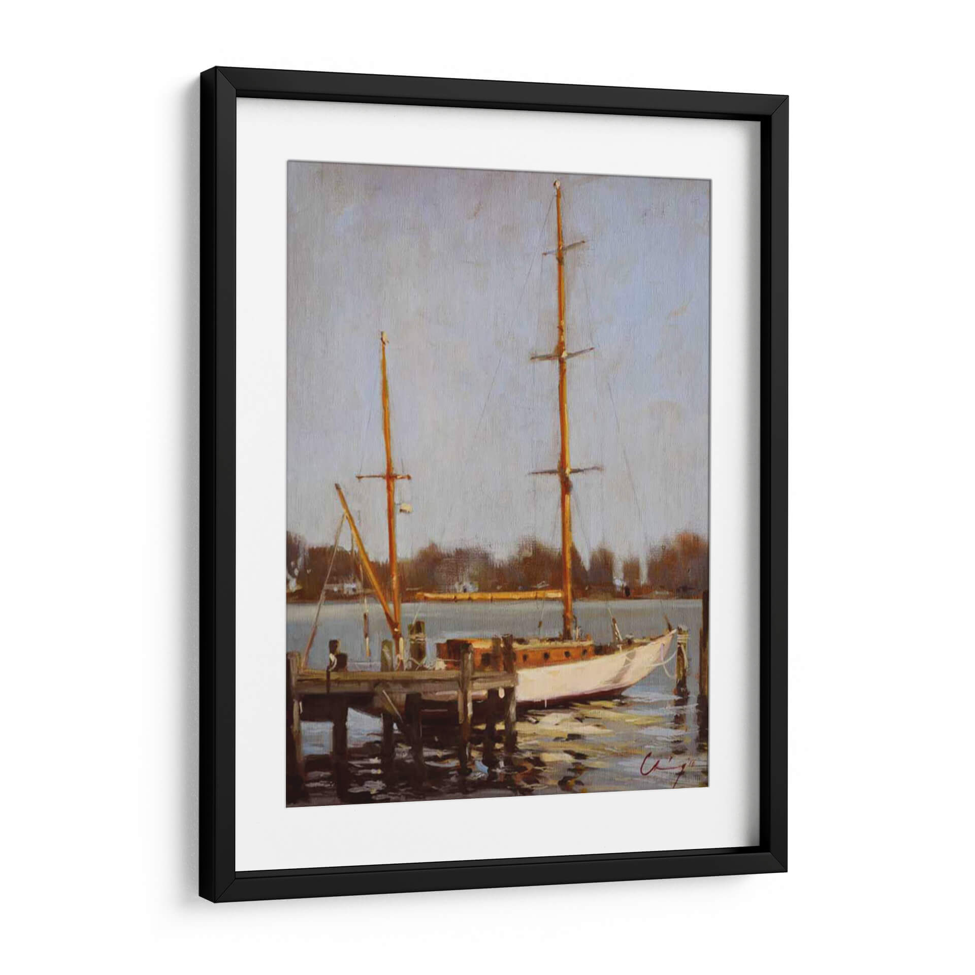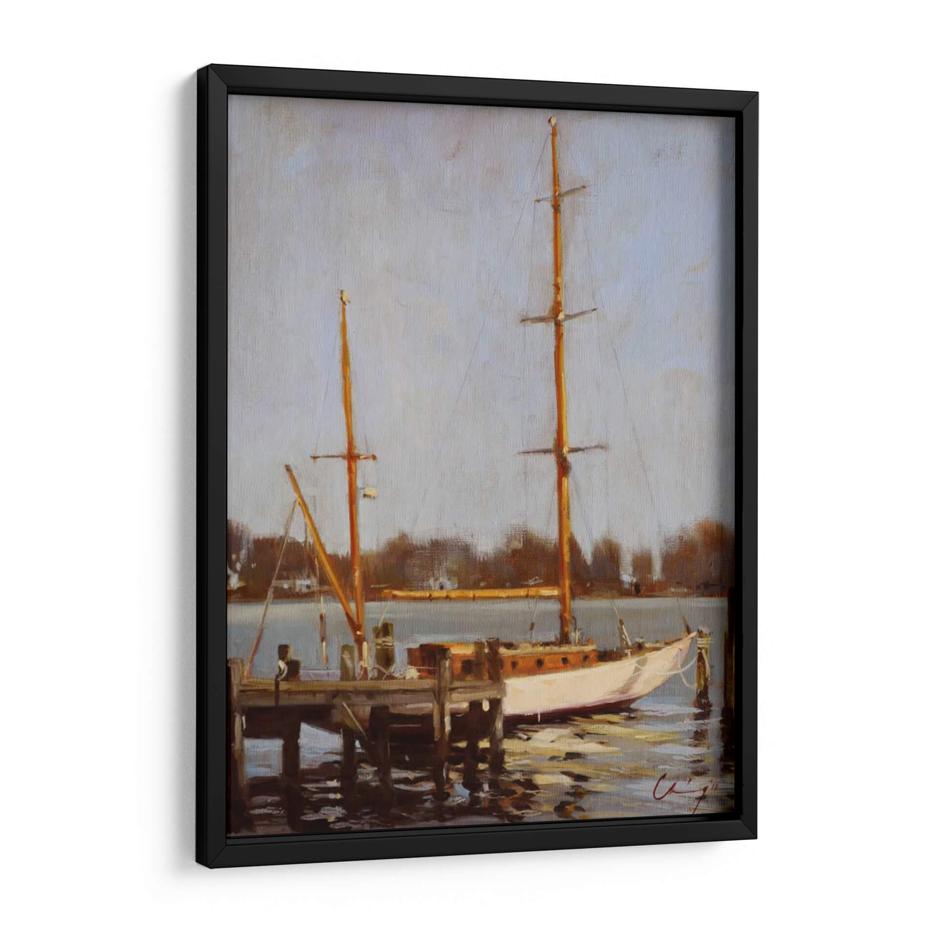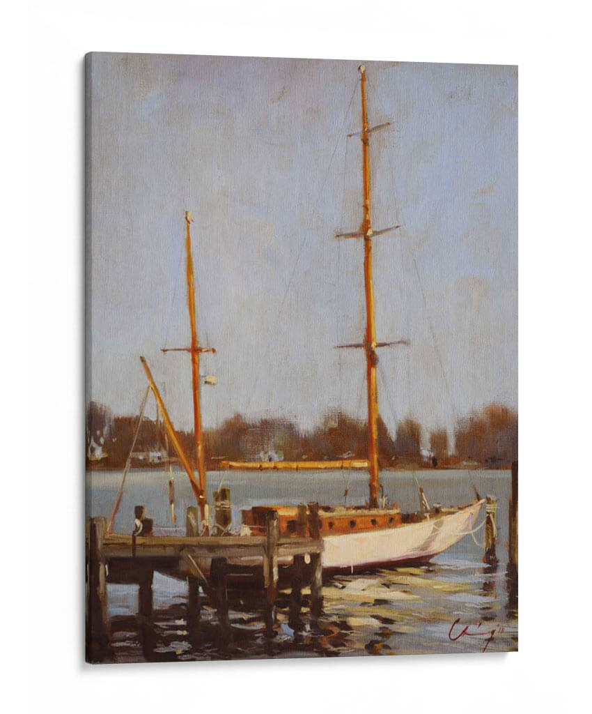 Captura la serenidad y la elegancia atemporal del mar con este cautivador cuadro decorativo, "Halcón De Marfil En Reposo", del aclamado artista Chuck Larivey. La obra nos transporta a un tranquilo puerto donde un velero aguarda, envuelto en una atmósfera de paz y contemplación. La paleta de colores, dominada por suaves tonos azulados y grises del cielo y el agua, se complementa con los cálidos toques ocres de los mástiles y el muelle, creando un contraste visual armonioso. La técnica pictórica, con pinceladas visibles que sugieren movimiento en el agua y la textura de las embarcaciones, aporta una sensación de realismo artístico y profundidad. Este cuadro es ideal para quienes buscan infundir calma y sofisticación en su hogar u oficina, convirtiéndose en un punto focal que invita a la reflexión y al disfrute de la belleza serena de la navegación. Perfecto para salones, estudios o dormitorios, este lienzo decorativo evoca una sensación de escapada y tranquilidad, añadiendo un toque de clase náutica a cualquier espacio. Una pieza que celebra la maestría de Larivey y la belleza del reposo en el mar.