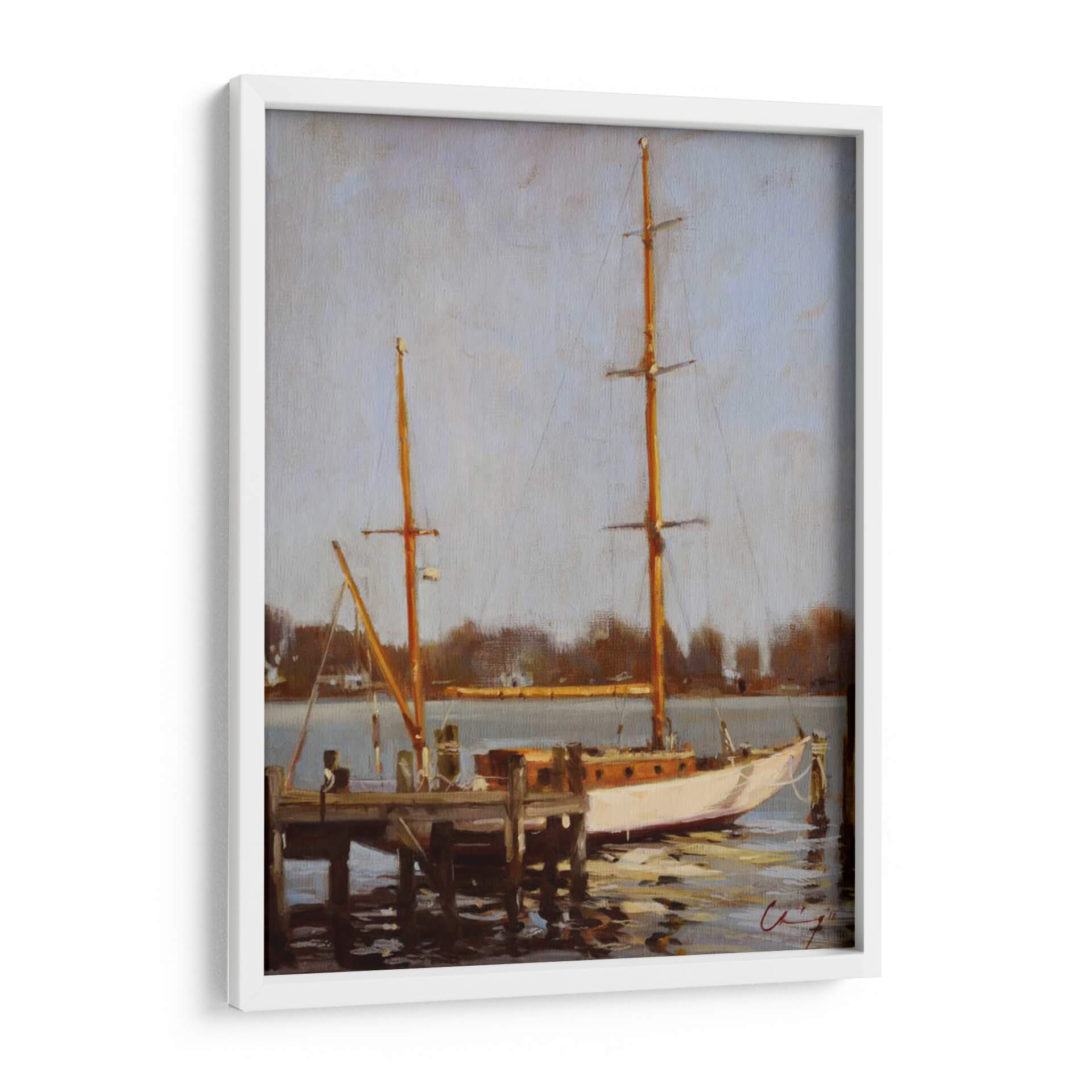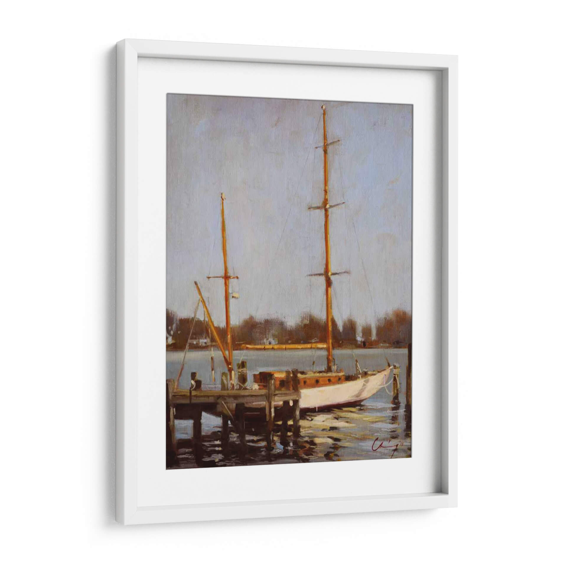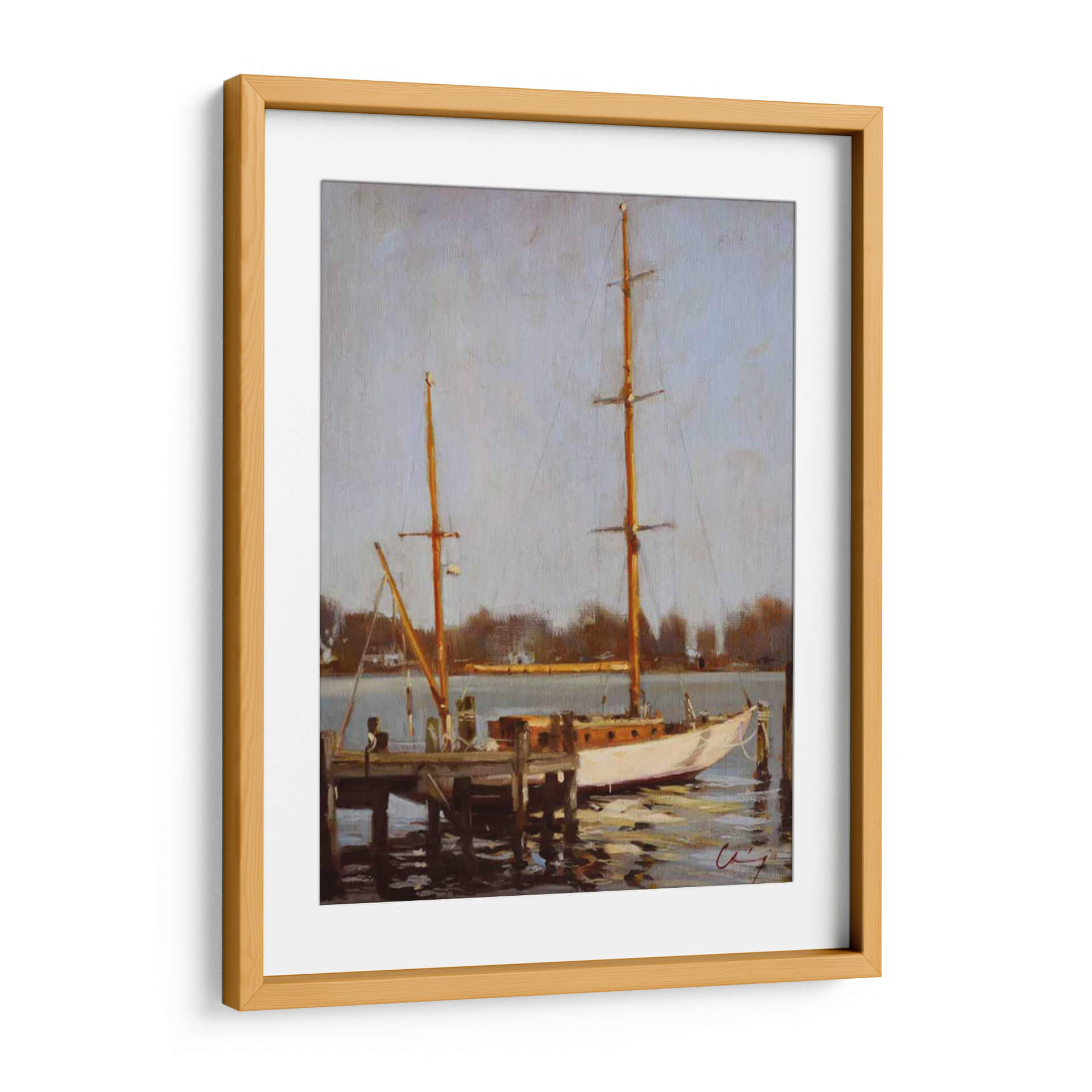 Captura la serenidad y la elegancia atemporal del mar con este cautivador cuadro decorativo, "Halcón De Marfil En Reposo", del aclamado artista Chuck Larivey. La obra nos transporta a un tranquilo puerto donde un velero aguarda, envuelto en una atmósfera de paz y contemplación. La paleta de colores, dominada por suaves tonos azulados y grises del cielo y el agua, se complementa con los cálidos toques ocres de los mástiles y el muelle, creando un contraste visual armonioso. La técnica pictórica, con pinceladas visibles que sugieren movimiento en el agua y la textura de las embarcaciones, aporta una sensación de realismo artístico y profundidad. Este cuadro es ideal para quienes buscan infundir calma y sofisticación en su hogar u oficina, convirtiéndose en un punto focal que invita a la reflexión y al disfrute de la belleza serena de la navegación. Perfecto para salones, estudios o dormitorios, este lienzo decorativo evoca una sensación de escapada y tranquilidad, añadiendo un toque de clase náutica a cualquier espacio. Una pieza que celebra la maestría de Larivey y la belleza del reposo en el mar.