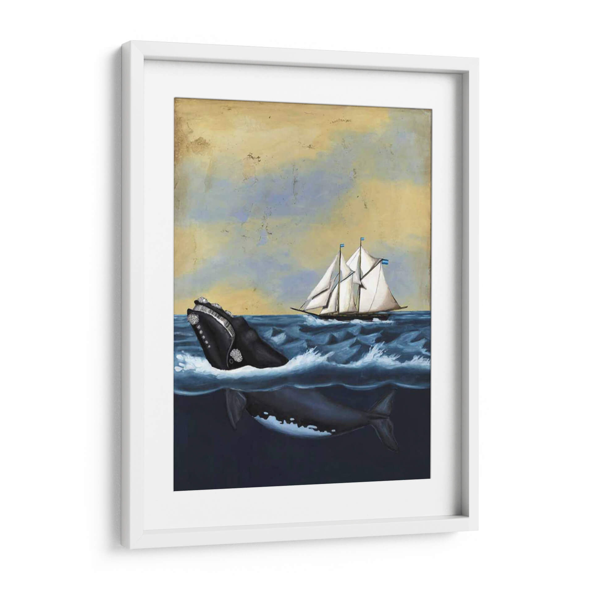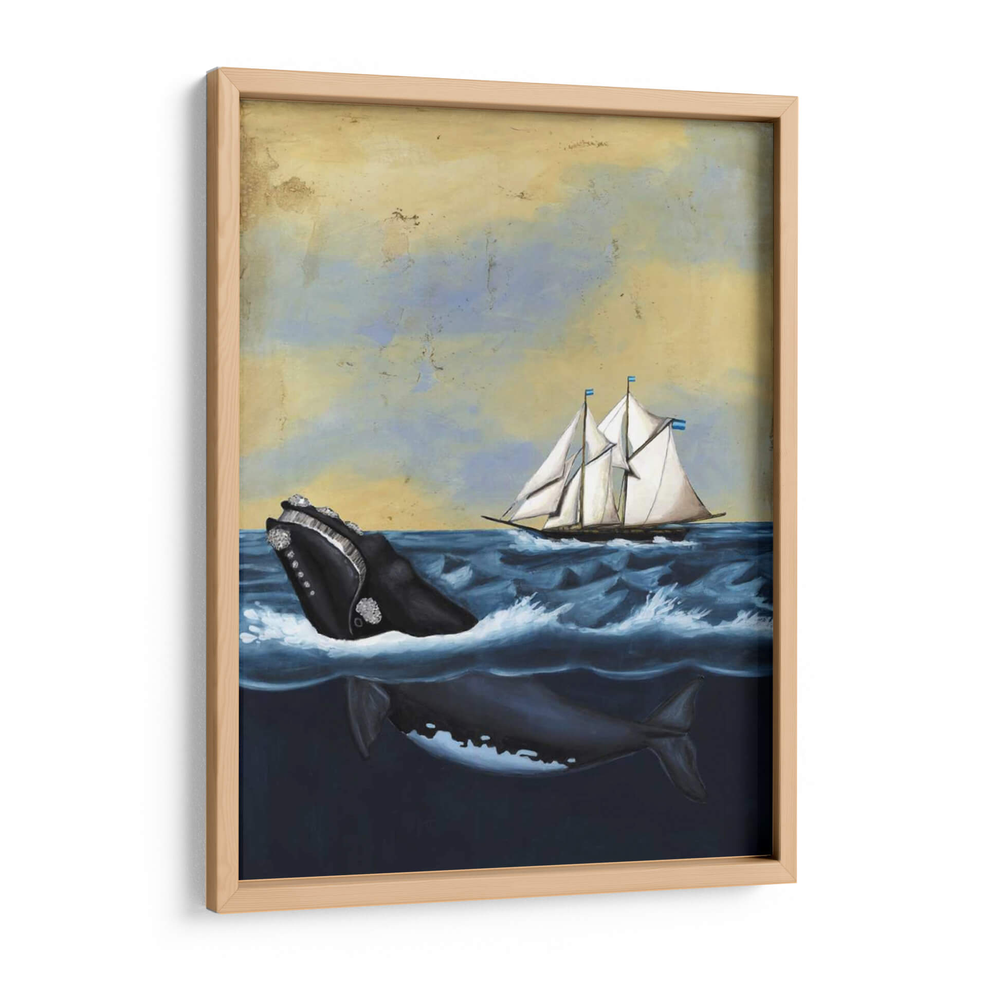 Sumérgete en la majestuosidad del océano con "Historias De Ballenas II", una cautivadora obra de arte de Naomi McCavitt. Este cuadro decorativo captura la esencia de la vida marina con una ballena emergiendo de las profundidades, acompañada por un velero clásico que navega en un mar sereno bajo un cielo con matices dorados y azules. La paleta de colores, dominada por profundos azules marinos, blancos espumosos y toques cálidos de ocre y celeste, crea una atmósfera de tranquilidad y aventura. El estilo pictórico de McCavitt evoca una sensación de nostalgia y asombro, ideal para quienes buscan añadir un toque de naturaleza y misterio a su hogar u oficina. La composición, que yuxtapone la inmensidad del océano con la fragilidad de la embarcación y la presencia imponente de la ballena, invita a la contemplación. Este cuadro decorativo es perfecto para espacios que buscan una conexión con el mar, aportando calma y un punto focal único a salas de estar, dormitorios o estudios. Transforma tu ambiente con esta pieza que narra historias silenciosas de los océanos.