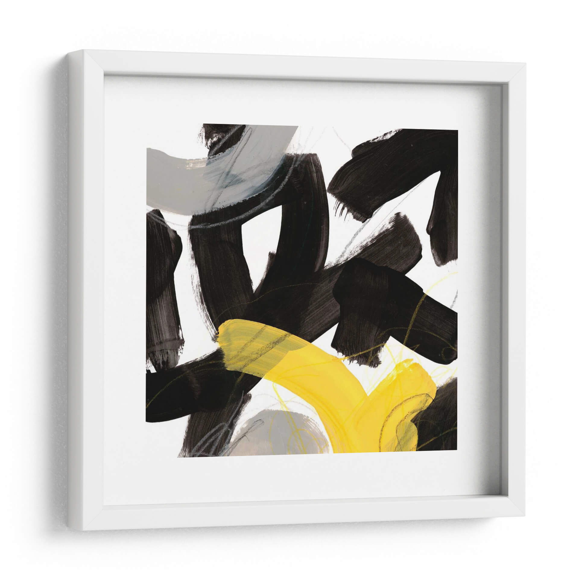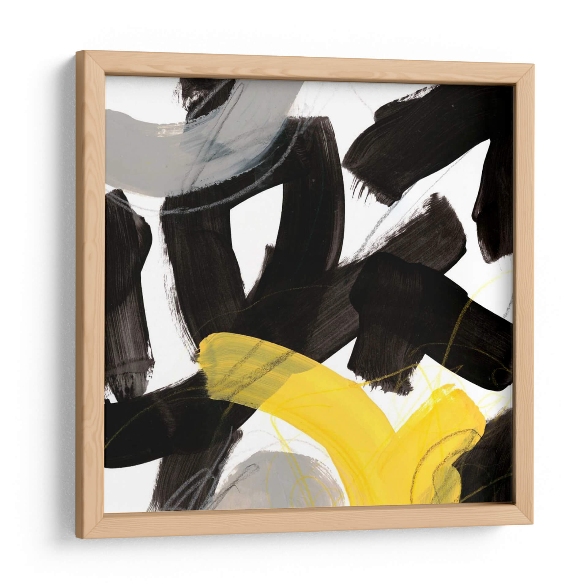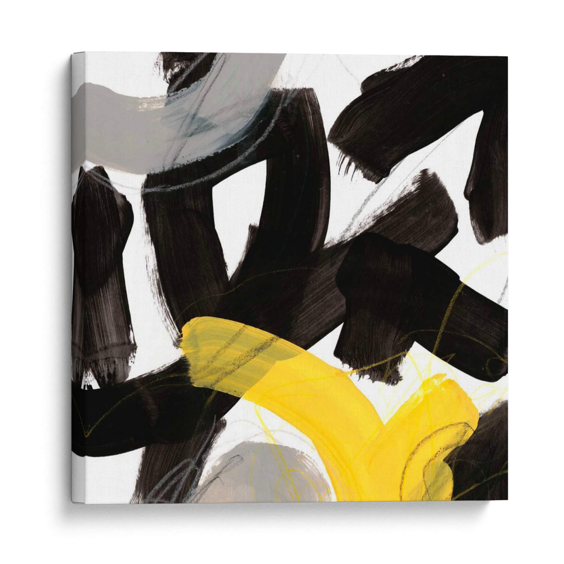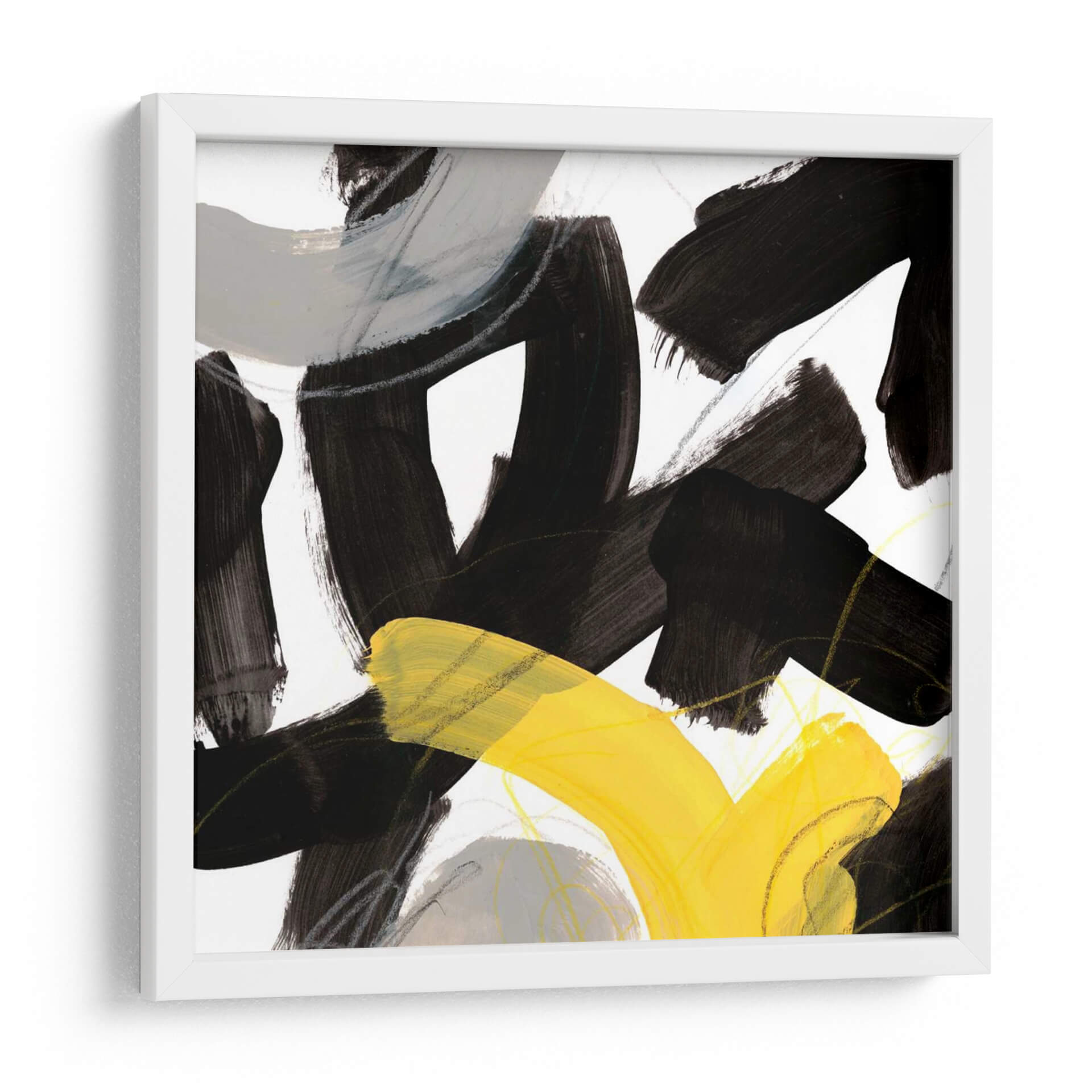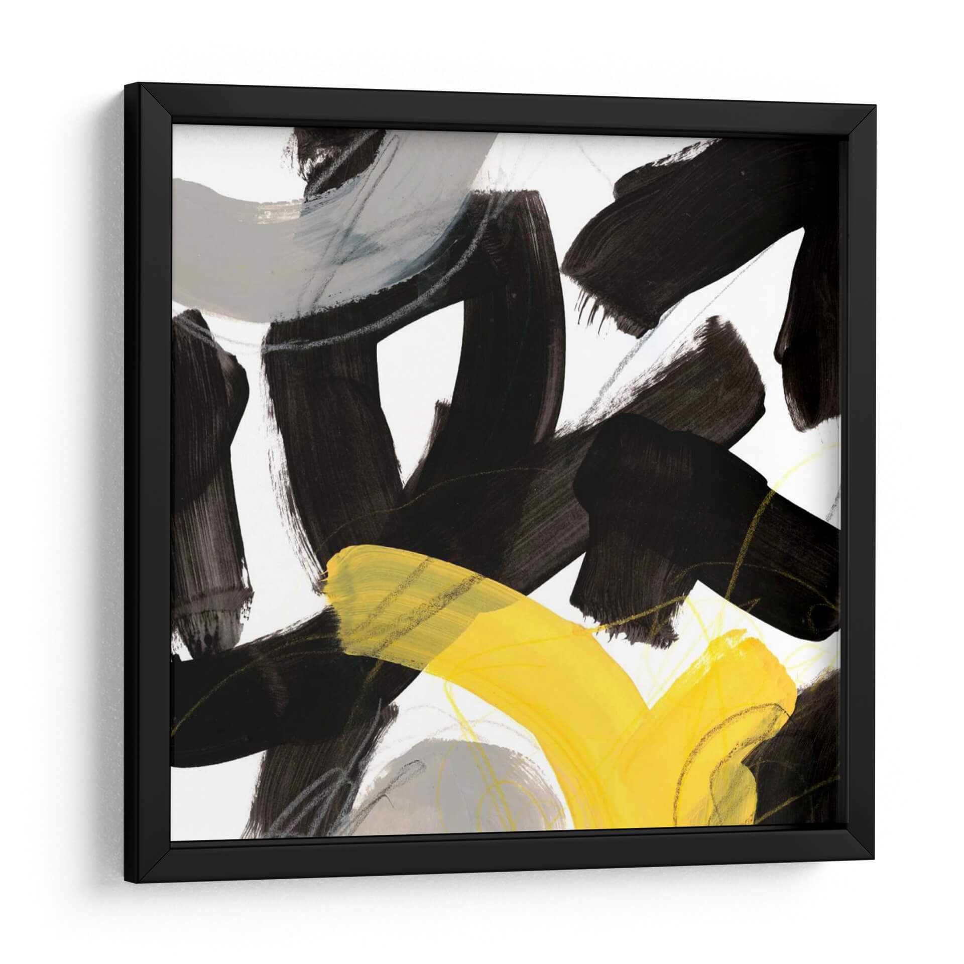 Sumérgete en la energía vibrante de "Impulso Cromático V", una obra de arte abstracta contemporánea de June Erica Vess. Este cuadro decorativo presenta audaces pinceladas en negro intenso que crean formas dinámicas y contrastantes, interactuando con sutiles toques de gris y líneas finas que añaden profundidad y textura. Un vibrante estallido de amarillo irrumpe en la composición, aportando un punto focal de luz y optimismo. La combinación de colores, dominada por el contraste entre el negro, el blanco, el gris y el amarillo, genera una sensación de movimiento y tensión controlada, perfecta para espacios que buscan un toque de modernidad y carácter. Este lienzo abstracto es ideal para inspirar creatividad en una oficina o para añadir un acento llamativo a una sala de estar minimalista o de estilo escandinavo. "Impulso Cromático V" no es solo una pieza decorativa, sino una expresión de fuerza y vitalidad que transformará cualquier pared en un centro de atención. Su estilo abstracto y su paleta audaz lo convierten en una adición versátil y cautivadora a cualquier colección de arte moderno.