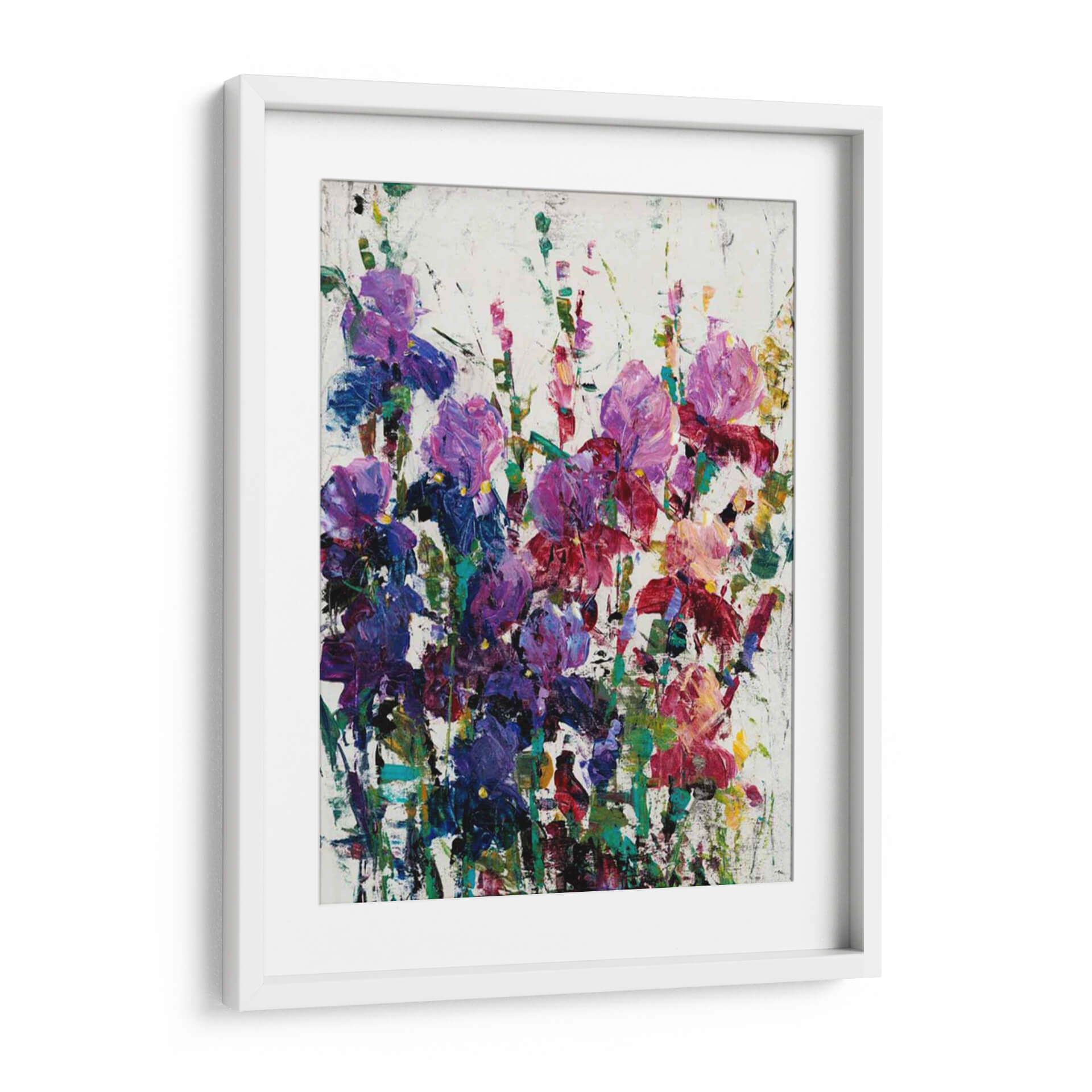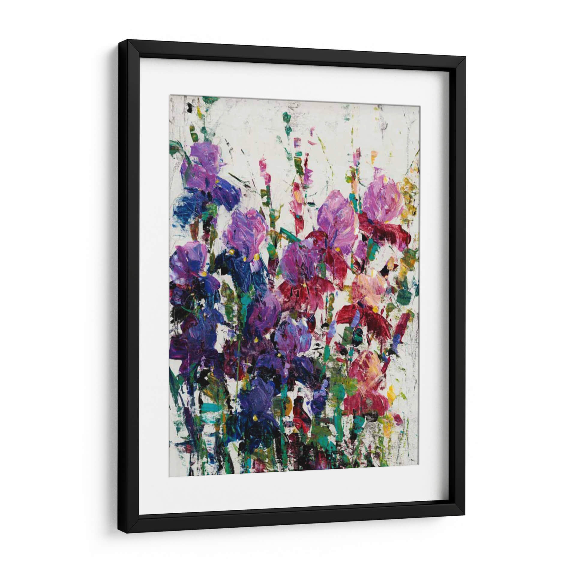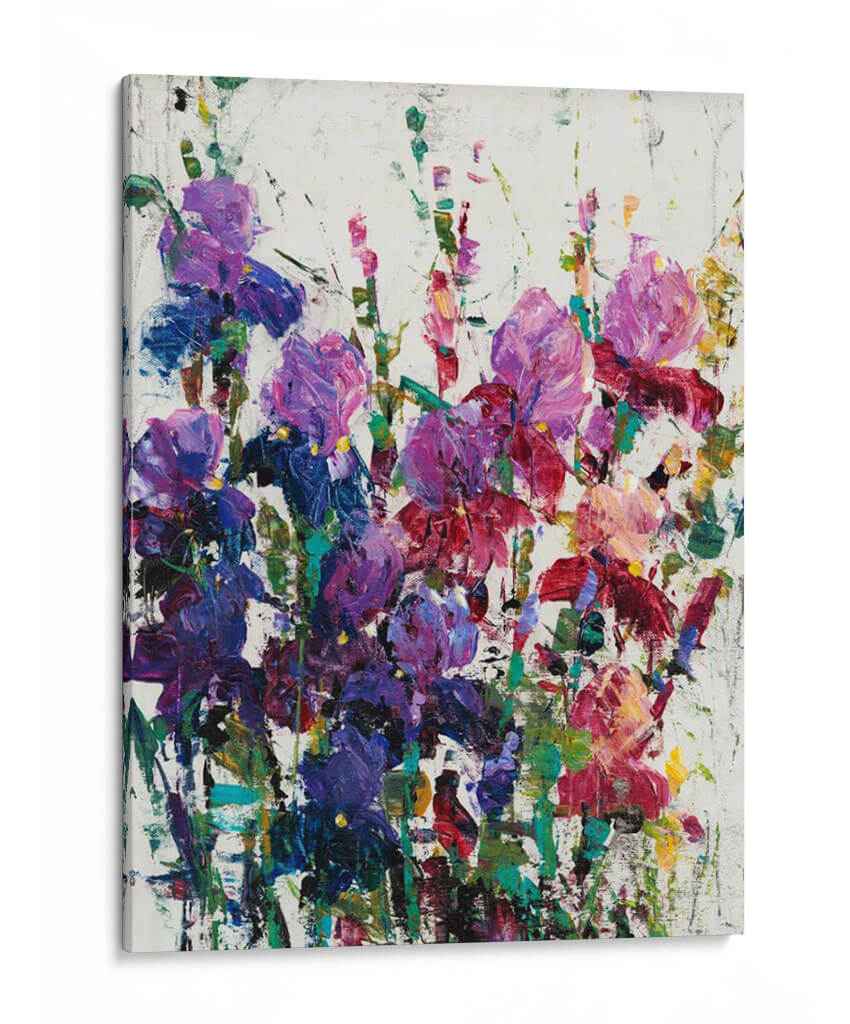 Sumérgete en la vibrante belleza floral de "Iris Blooming II", una obra de arte contemporáneo que captura la esencia efímera de los iris en plena floración. El artista Tim O'Toole utiliza una técnica expresionista y pinceladas audaces para dar vida a estas delicadas flores. Los tonos profundos de púrpura, azul y rosa se entrelazan con toques de verde y amarillo sobre un fondo texturizado de blanco roto, creando una composición dinámica y llena de energía. Esta pieza evoca una sensación de alegría y vitalidad, ideal para añadir un estallido de color y vida a cualquier espacio. Su estilo abstracto y su rica paleta de colores la convierten en un punto focal cautivador para salas de estar modernas, comedores o incluso oficinas, aportando un toque de naturaleza y sofisticación. "Iris Blooming II" no es solo un cuadro, es una celebración de la belleza natural a través del arte, una invitación a detenerse y apreciar la exuberancia de la primavera durante todo el año. Es perfecta para quienes buscan una decoración de pared que hable de pasión y optimismo, transformando cualquier habitación en una galería personal llena de inspiración y estilo.