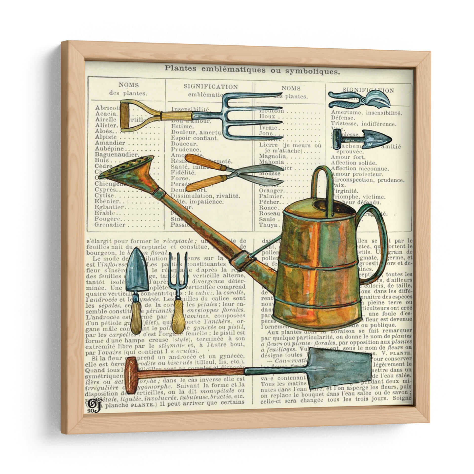 Sumérgete en la esencia del jardín con 'Jardín Puede', una obra de arte de Ginny Joyner que captura la belleza de las herramientas de jardinería con un toque nostálgico. Este cuadro decorativo presenta una regadera de latón antigua y unas tijeras de podar, evocando sensaciones de trabajo manual, naturaleza y crecimiento. La paleta de colores, dominada por tonos tierra, dorados y verdes apagados, crea una atmósfera serena y acogedora, perfecta para añadir un toque de encanto rústico a cualquier espacio. La técnica pictórica, que recuerda a las ilustraciones botánicas clásicas, aporta un aire de autenticidad y detalle. Ideal para salones, cocinas o estudios, esta pieza invita a la contemplación y al aprecio por los elementos simples de la vida. 'Jardín Puede' no es solo una imagen, sino una invitación a conectar con la tierra y la tranquilidad que ofrece la jardinería. Añade esta obra maestra a tu colección y transforma tu hogar en un refugio de paz y belleza natural, un verdadero homenaje a la conexión humana con el mundo vegetal.