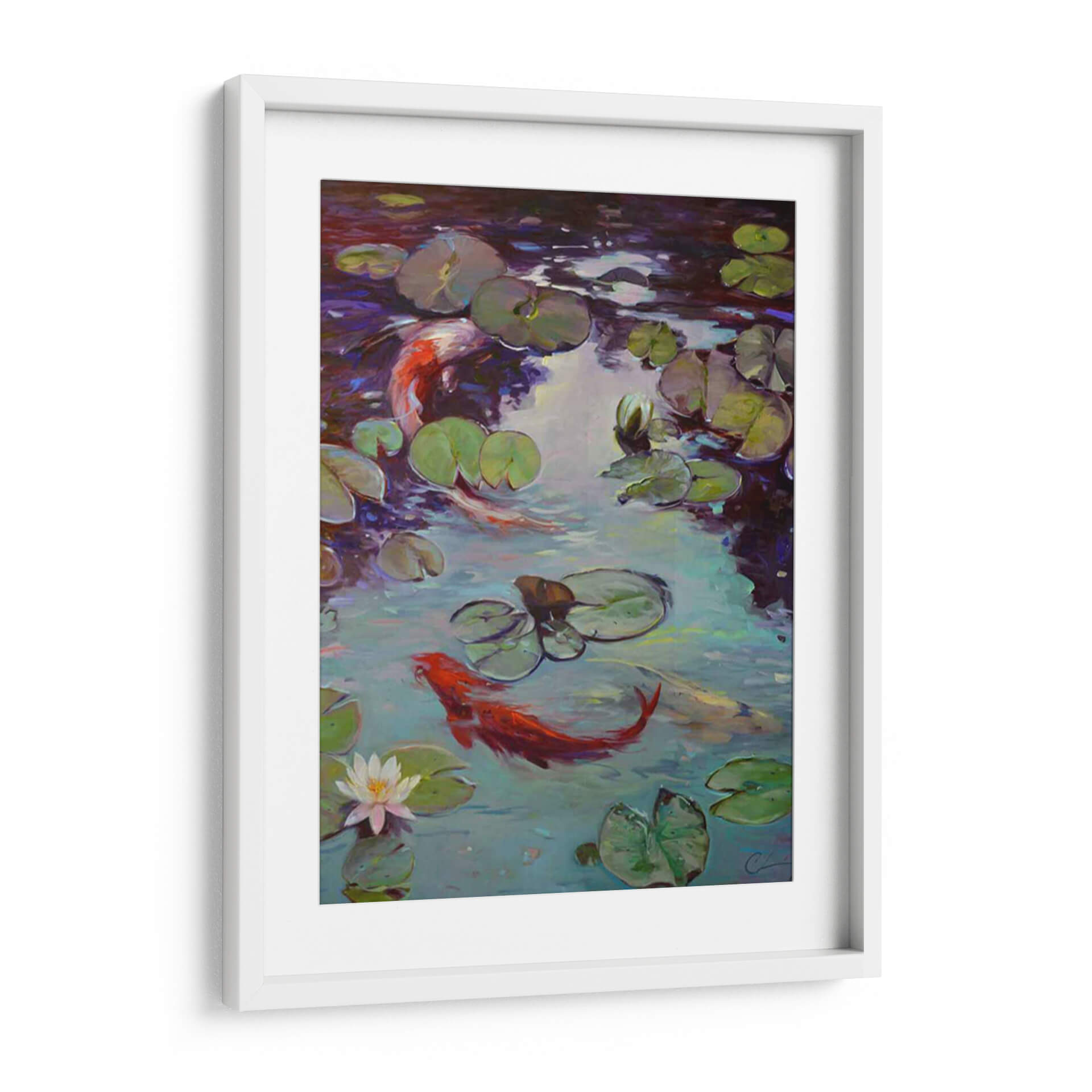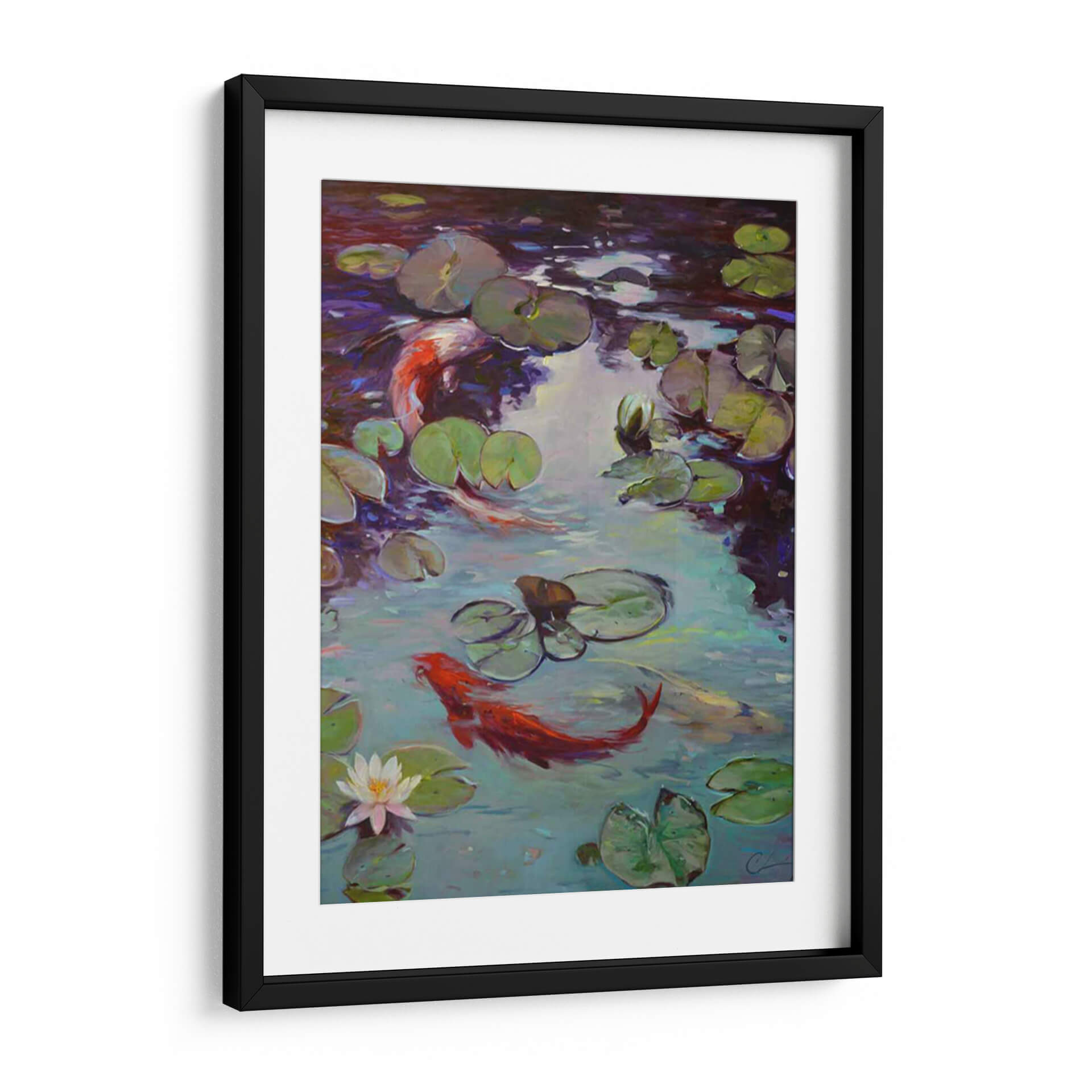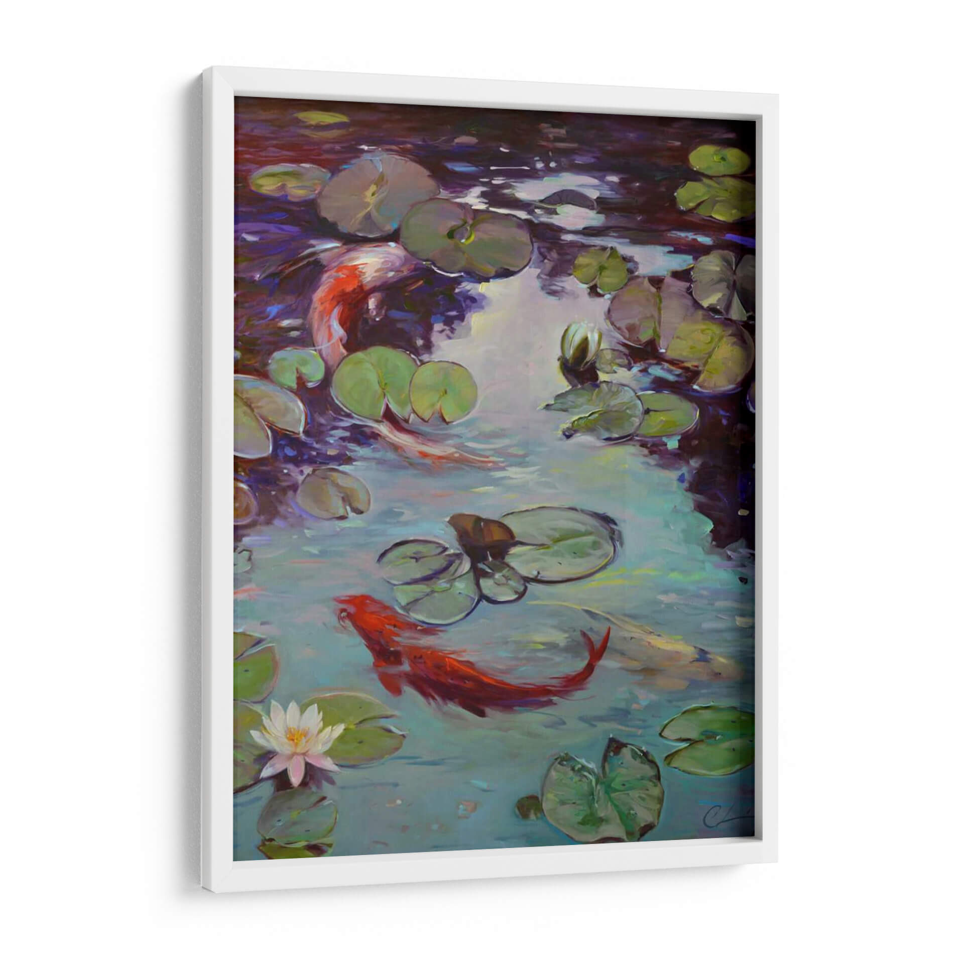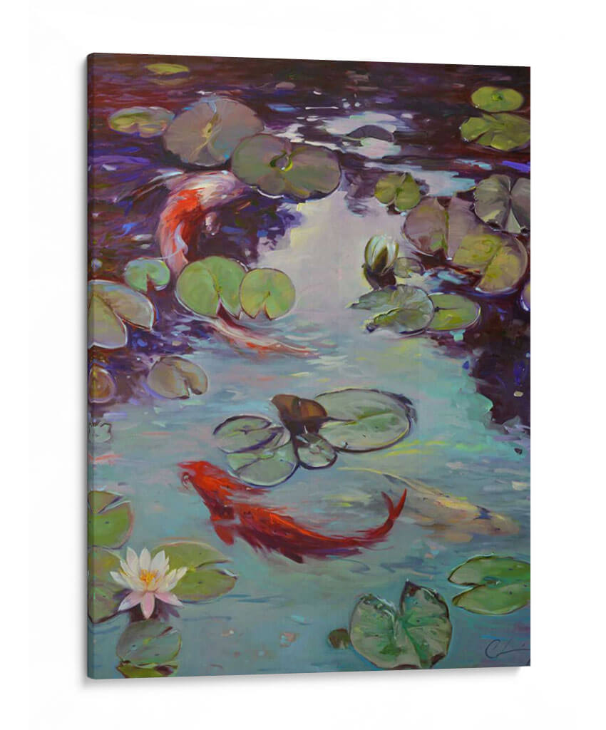 Sumérgete en la serena belleza de "Koi Rojo y Lirios" de Chuck Larivey, una obra de arte cautivadora que captura la esencia vibrante de un estanque tranquilo. Este cuadro decorativo presenta peces koi de vivos colores nadando grácilmente entre lirios flotantes, cuyas hojas verdes crean un tapiz natural sobre el agua serena. La paleta de colores, rica en azules profundos, verdes esmeralda y toques de blanco y rojo, evoca una atmósfera de calma y armonía, perfecta para cualquier espacio que busque un oasis de paz. El estilo impresionista del artista, con pinceladas expresivas y un juego magistral de luces y sombras, confiere a la obra una sensación de movimiento y vida. Cada detalle, desde el reflejo del sol en el agua hasta la delicada forma de los lirios, invita a la contemplación y a la relajación. Este cuadro decorativo es ideal para transformar un salón en un santuario de tranquilidad, añadir un toque de color y vitalidad a un dormitorio, o crear un ambiente inspirador en una oficina. "Koi Rojo y Lirios" no es solo una pieza de decoración, es una ventana a un mundo de serenidad y belleza natural, diseñada para resonar con tu espíritu y embellecer tu hogar con elegancia atemporal.
