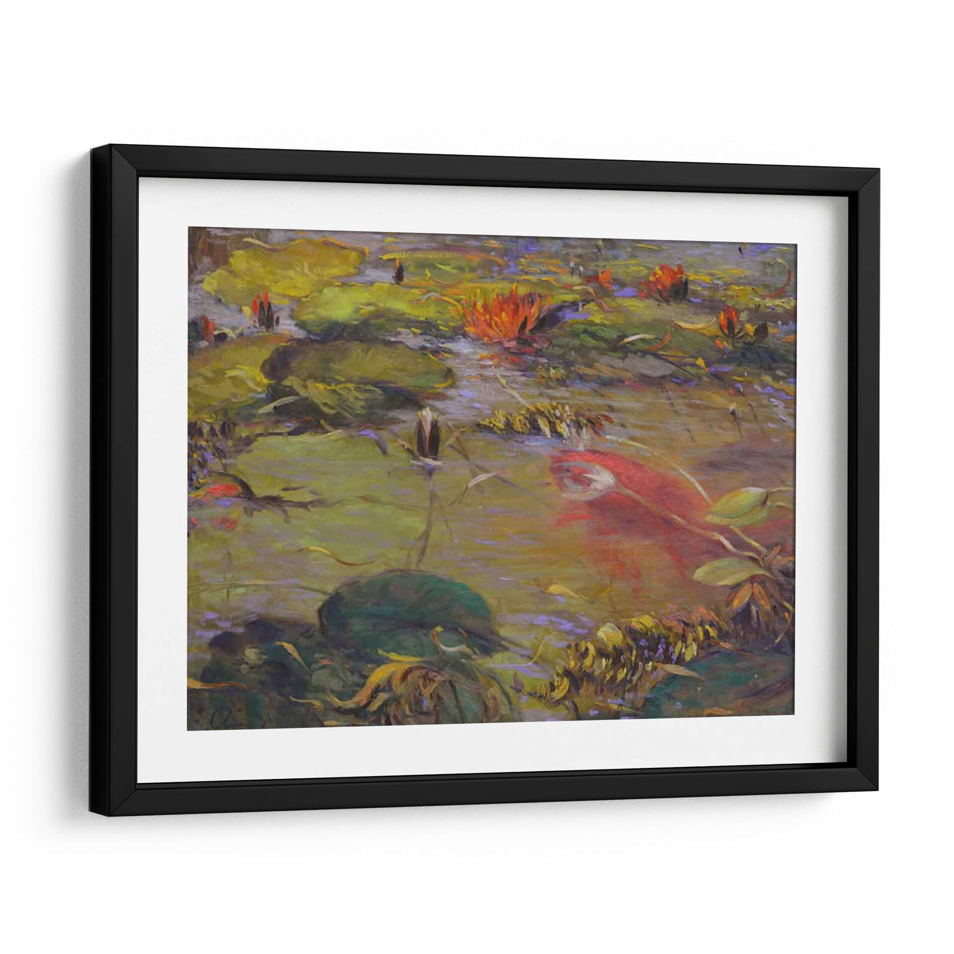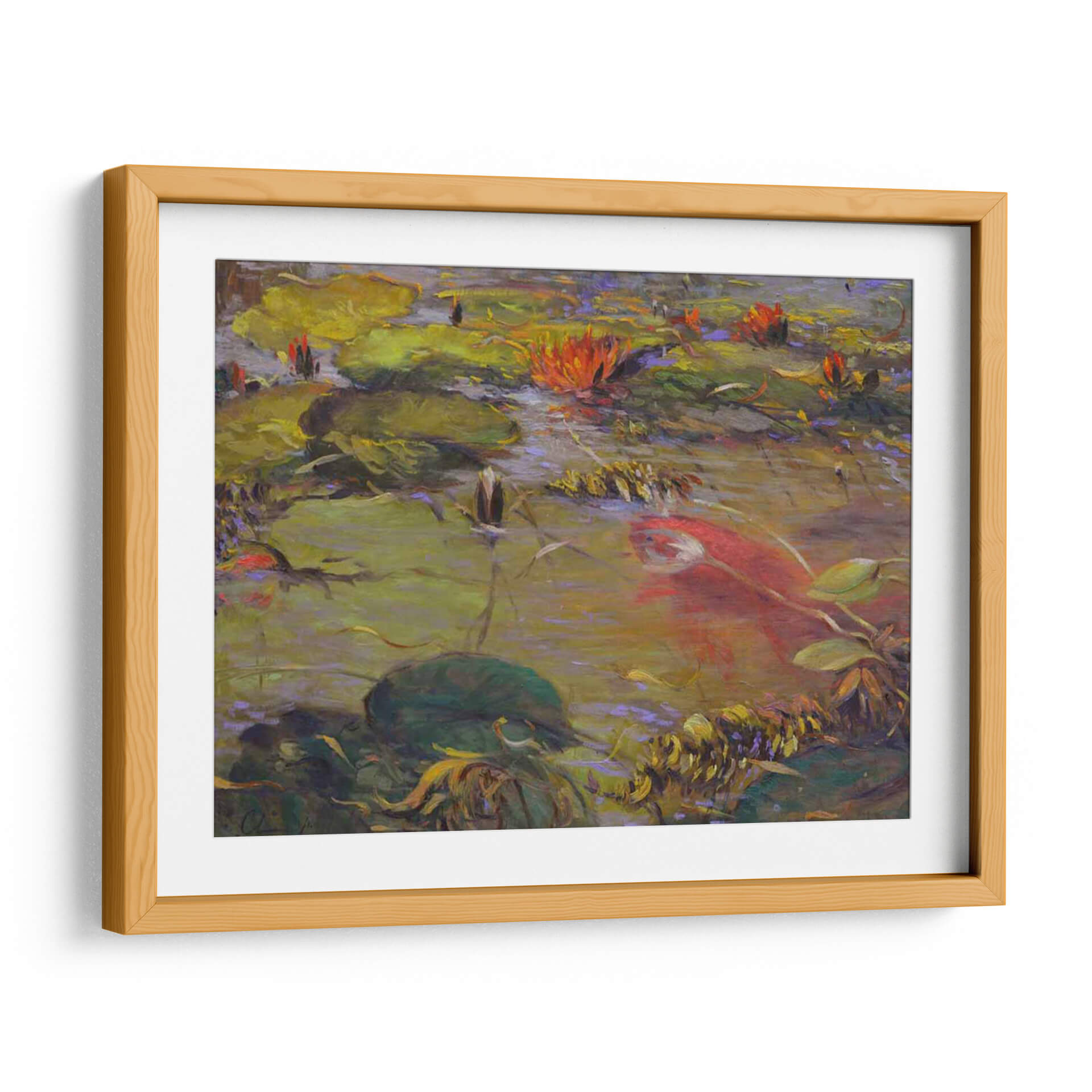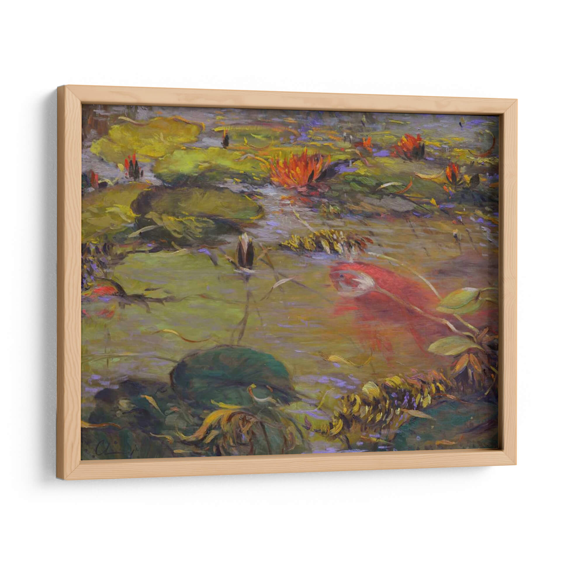 Sumérgete en la serena belleza de 'Koi y Lirios I', una obra maestra del artista Chuck Larivey que captura la esencia de un estanque tranquilo. Esta pieza vibrante te transporta a un mundo de colores exuberantes y formas fluidas, donde los lirios de agua despliegan su encanto y los peces koi se deslizan elegantemente bajo la superficie. La paleta de colores, rica en verdes, amarillos dorados, naranjas intensos y toques de púrpura, crea una atmósfera de paz y armonía, evocando la tranquilidad de la naturaleza. El estilo pictórico, con pinceladas sueltas y expresivas, aporta una sensación de movimiento y vida a la composición, invitando al espectador a perderse en los detalles y las texturas. Este cuadro decorativo es perfecto para infundir calma y sofisticación en cualquier espacio, ya sea tu sala de estar, dormitorio o estudio. 'Koi y Lirios I' no es solo una obra de arte, es una ventana a un oasis de serenidad, ideal para quienes buscan añadir un toque de elegancia natural y color a su decoración de pared, creando un ambiente de contemplación y bienestar.
