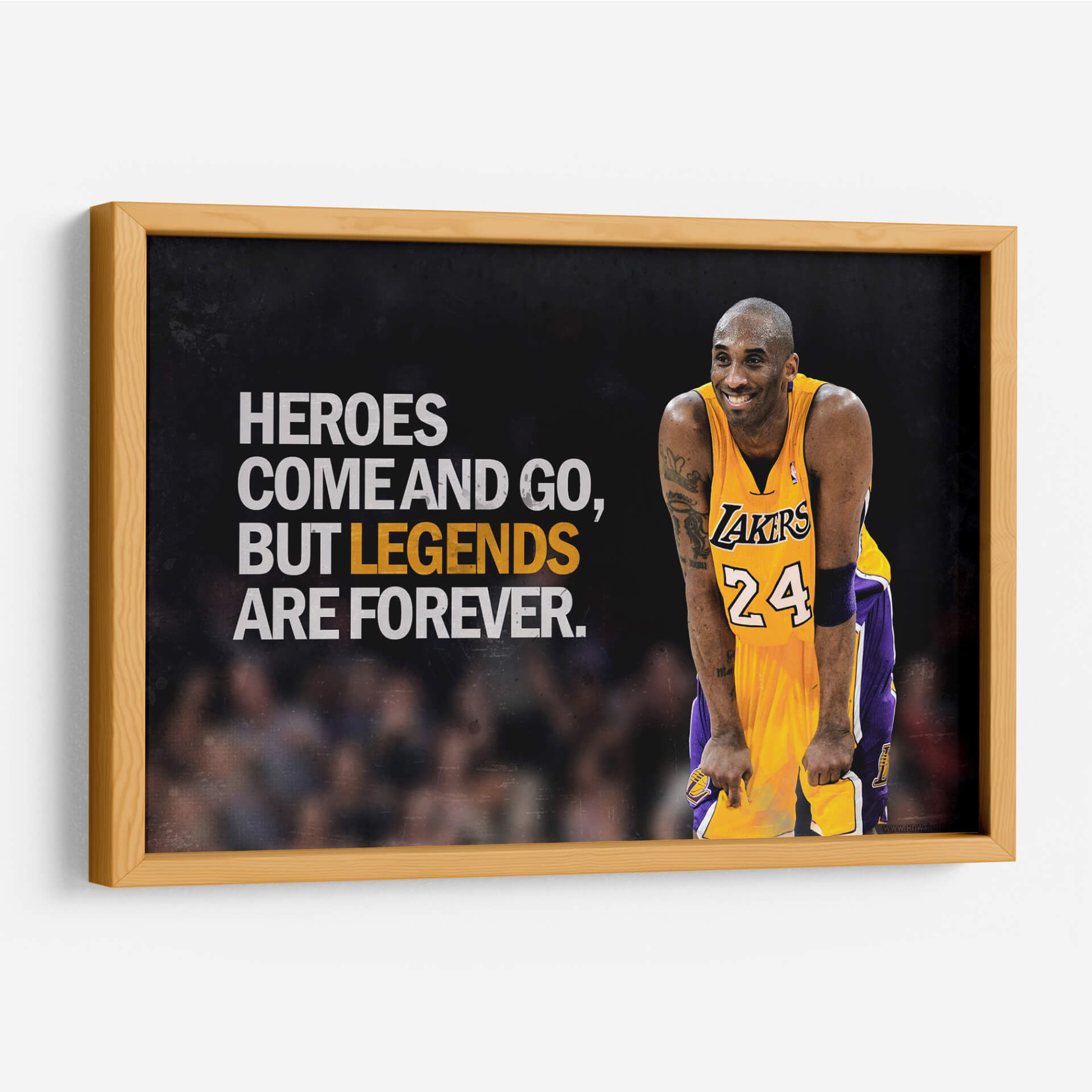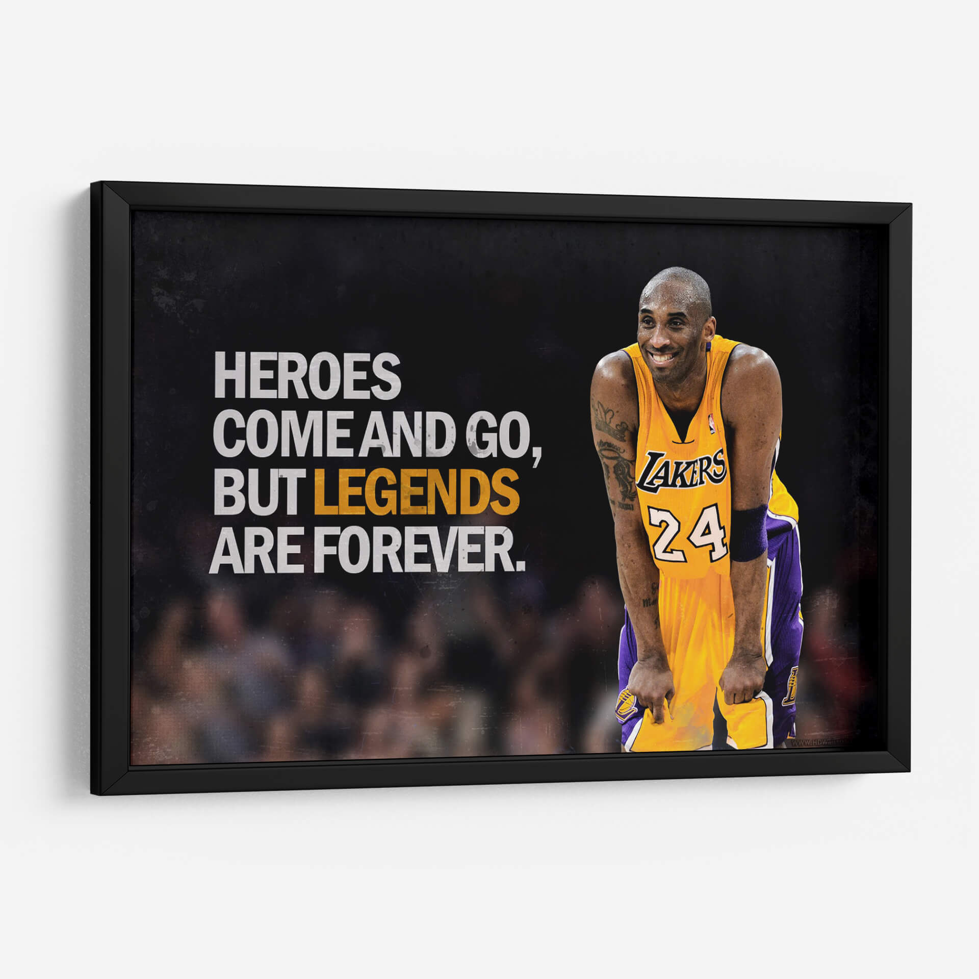 Captura la esencia de la grandeza con este impactante cuadro decorativo "Legend Kobe Bryant". La obra presenta una imagen icónica del legendario jugador de baloncesto Kobe Bryant, vestido con su icónico uniforme de Los Angeles Lakers, número 24. A su lado, la poderosa frase "HEROES COME AND GO, BUT LEGENDS ARE FOREVER." (Los héroes vienen y van, pero las leyendas son para siempre) resalta su legado imborrable. La paleta de colores, dominada por el vibrante amarillo y púrpura de los Lakers junto a un fondo oscuro y texturizado, crea una atmósfera de intensidad y respeto. El estilo de la obra es una fusión de fotografía deportiva y arte gráfico, con un tratamiento que le confiere una cualidad atemporal. Este cuadro decorativo es perfecto para inspirar y motivar, ideal para cualquier espacio que celebre el espíritu deportivo, la perseverancia y la excelencia. Imagina este potente mensaje visual adornando la pared de una sala de estar moderna, una oficina, un gimnasio en casa o la habitación de un aficionado al baloncesto, aportando un toque de determinación y admiración. Es una pieza que no solo decora, sino que también rinde homenaje a una figura inolvidable del deporte mundial.
