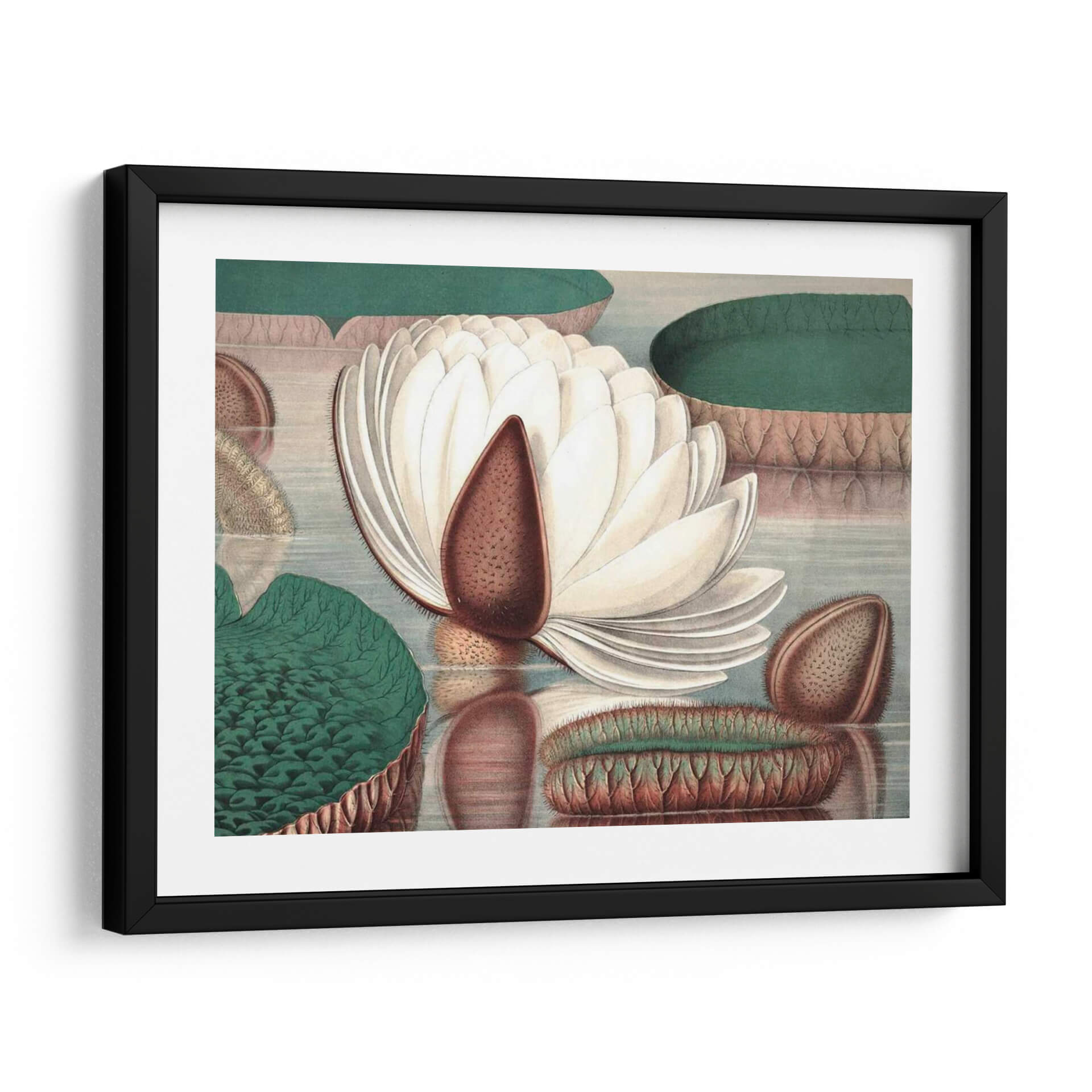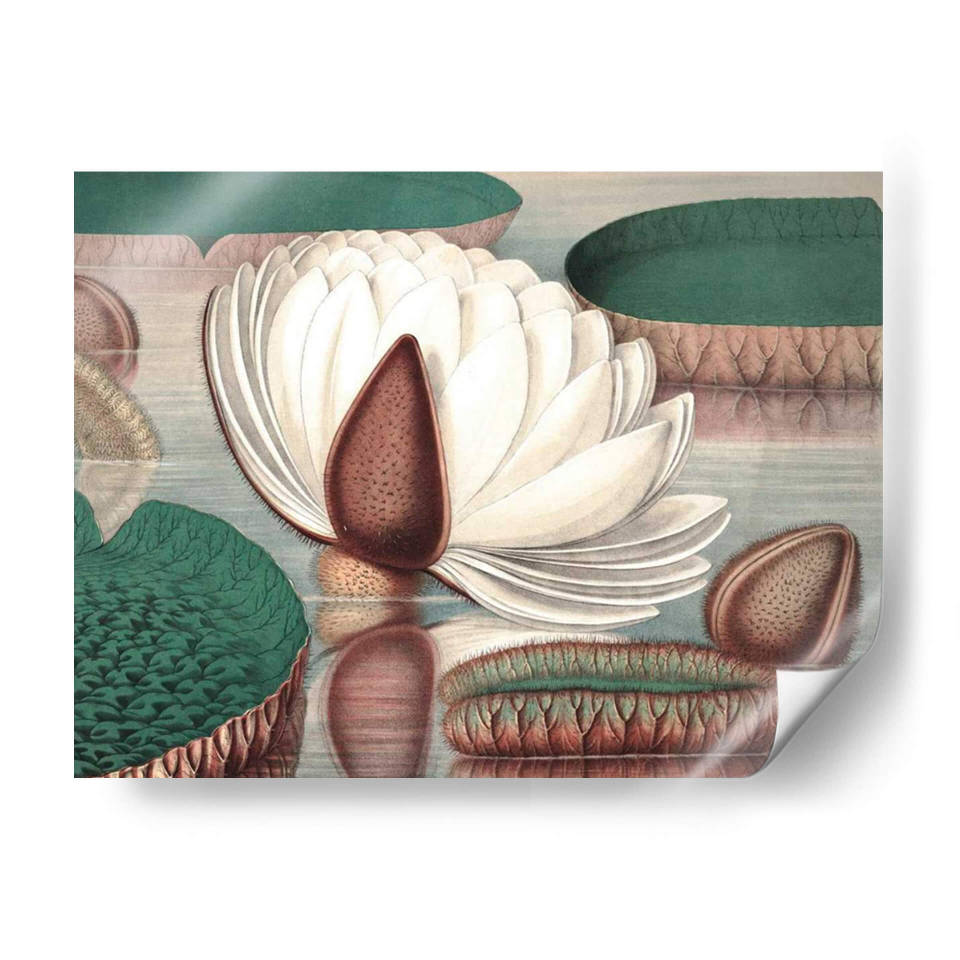Sumérgete en la serenidad botánica con este exquisito cuadro decorativo que captura la esencia del "Lirio de Agua Vintage I". La obra, creada por Vision Studio, te transporta a un estanque tranquilo, donde la delicadeza de un lirio de agua blanco y las formas escamosas de sus hojas y vainas se presentan con un detalle meticuloso y una paleta de colores suaves. Los verdes profundos de las hojas contrastan sutilmente con los tonos crema y marrones terrosos del lirio y sus vainas, creando una atmósfera de calma y contemplación. La composición, con reflejos sutiles en el agua, añade una sensación de profundidad y realismo, evocando la belleza serena de la naturaleza. Este cuadro decorativo es ideal para añadir un toque de elegancia natural a tu sala de estar, dormitorio o estudio, aportando una dosis de tranquilidad y sofisticación. Su estilo, que recuerda a ilustraciones botánicas clásicas pero con un toque contemporáneo, lo hace perfecto para una variedad de decoraciones, desde las más rústicas hasta las modernas minimalistas. Decora tu espacio con esta pieza que invita a la paz y admira la intrincada belleza de la flora acuática.