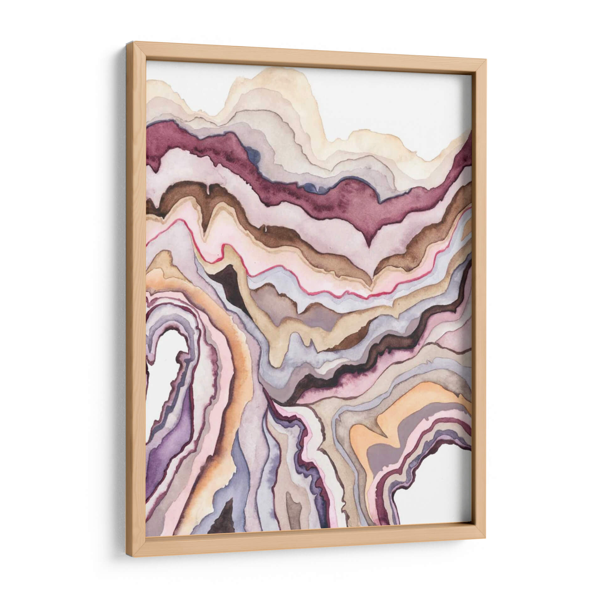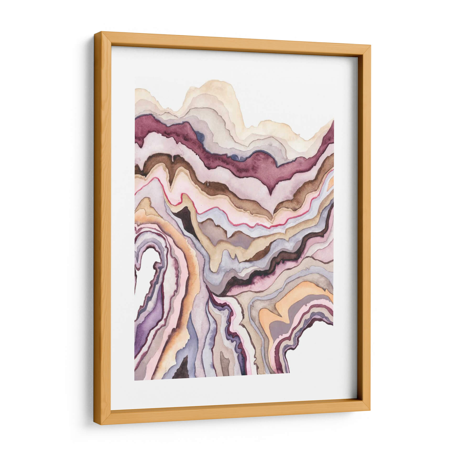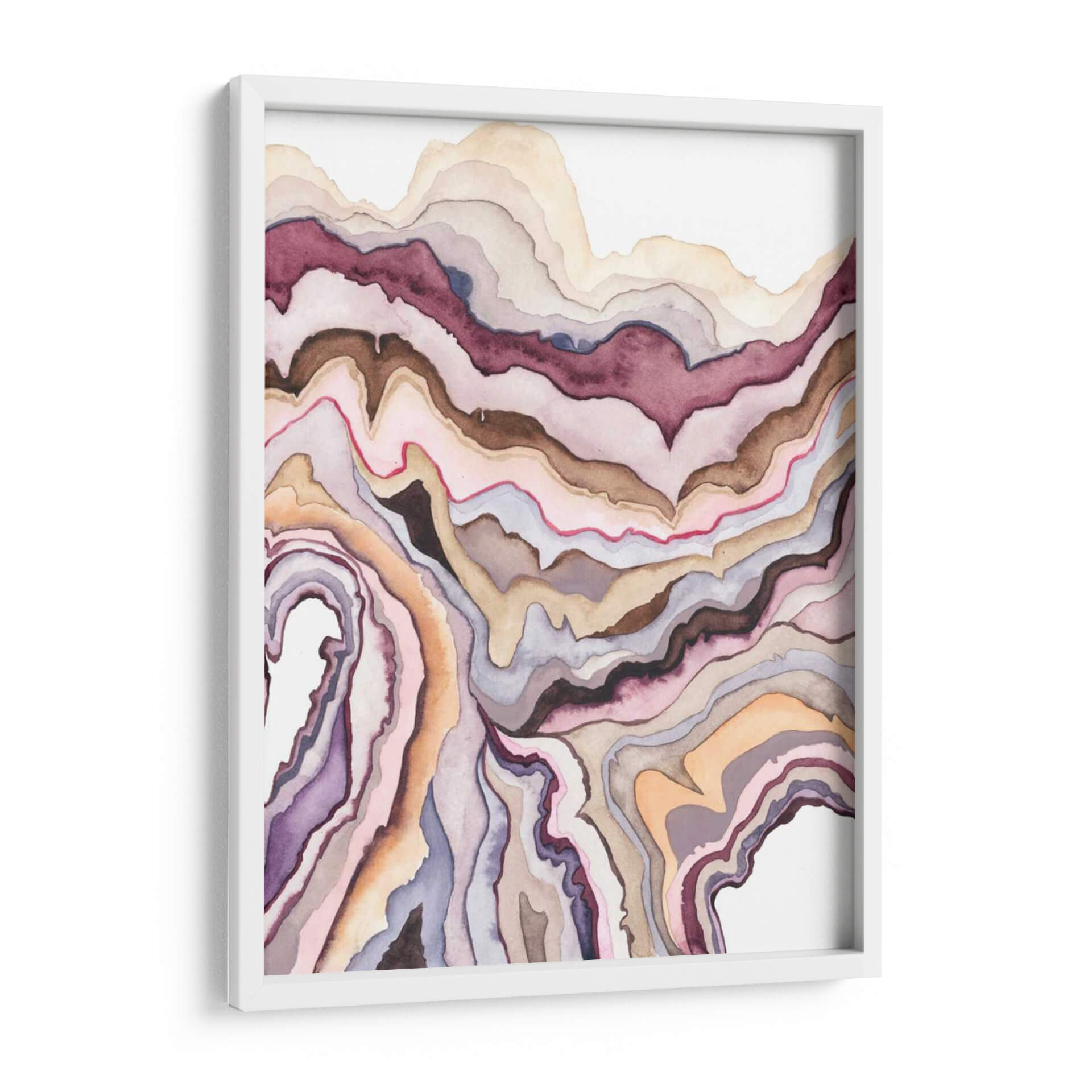 Sumérgete en la serena belleza de "Lore De Cuarzo I", una obra de arte contemporáneo que evoca la delicadeza de las formaciones geológicas. Grace Popp nos transporta a través de capas fluidas de color, donde tonos tierra, morados profundos, rosas suaves y toques de naranja se entrelazan en un patrón hipnotizante. La técnica de acuarela imparte una ligereza y transparencia únicas, creando una atmósfera de calma y contemplación. Cada pincelada parece fluir, imitando las vetas naturales de un cuarzo o ágata, pero con una interpretación artística que invita a la abstracción. Este cuadro decorativo es ideal para quienes buscan añadir un toque de sofisticación orgánica a sus espacios. Su composición abstracta y su paleta de colores terrosos lo convierten en una pieza versátil, perfecta para salas de estar modernas, dormitorios serenos o incluso oficinas que buscan inspirar tranquilidad y creatividad. "Lore De Cuarzo I" no es solo una decoración de pared, es una invitación a la introspección y a la apreciación de la belleza natural reinterpretada por el arte contemporáneo. Añade esta pieza única a tu colección y transforma tu hogar en un oasis de estilo y armonía.