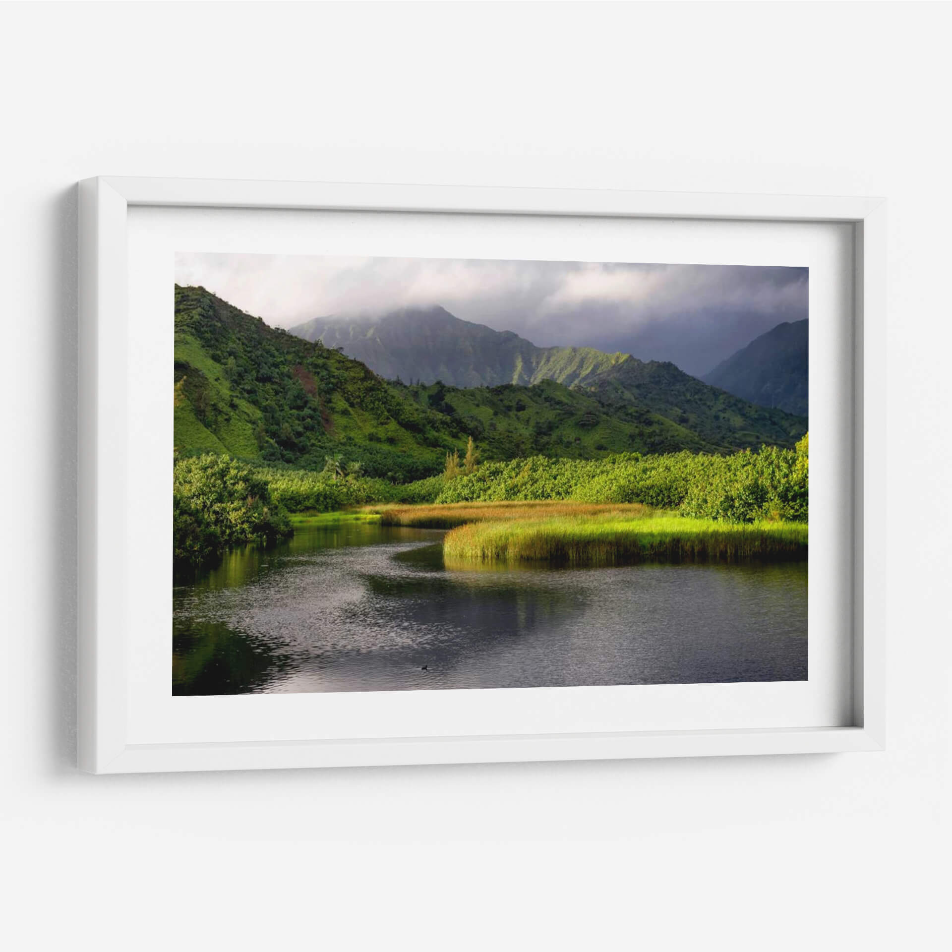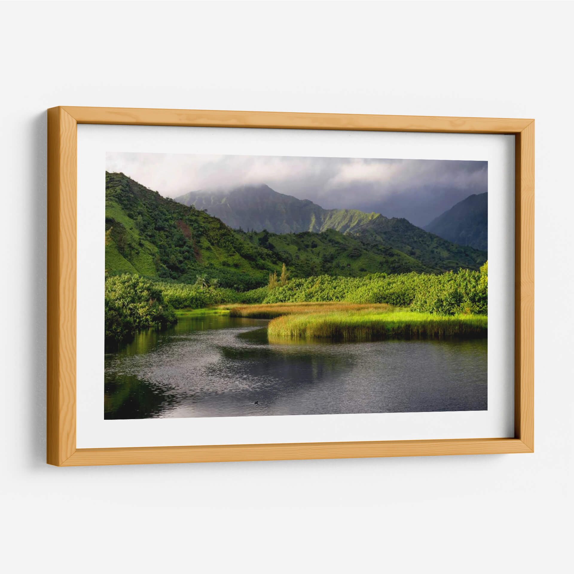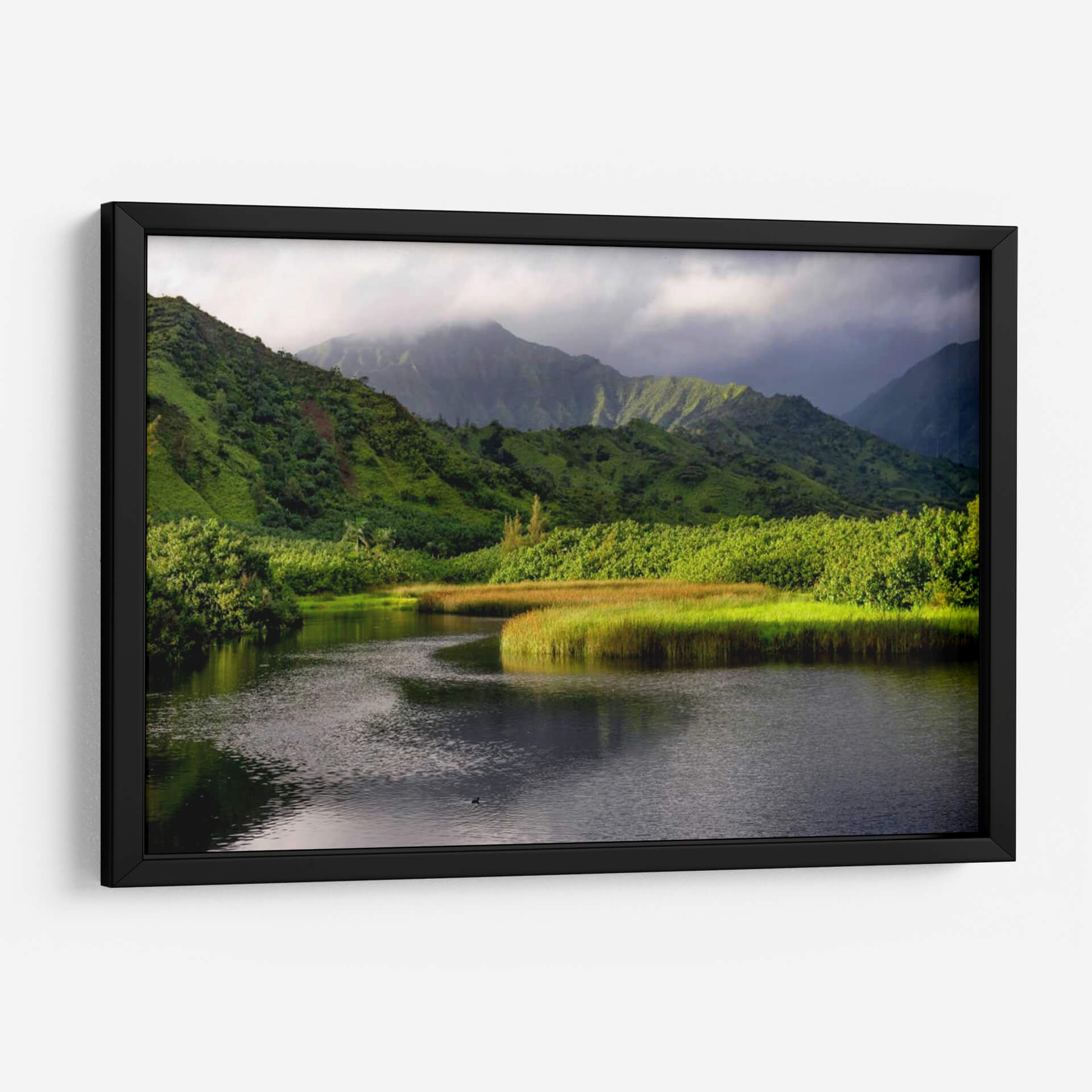 Sumérgete en la serenidad del 'Marisma Costero V', una obra de arte que captura la majestuosidad de un paisaje natural enigmático. El artista Danny Head nos transporta a un escenario donde imponentes montañas cubiertas de vegetación exuberante se elevan hacia un cielo plomizo, creando una atmósfera de misterio y calma. Un río serpenteante, cuyas aguas oscuras reflejan el verde intenso de la orilla y el cielo nublado, fluye a través de un lecho de juncos dorados, añadiendo textura y vida a la composición. La paleta de colores, dominada por verdes profundos y tonos tierra, evoca una sensación de conexión con la naturaleza y tranquilidad. Este cuadro decorativo es ideal para aquellos que buscan infundir paz y sofisticación en sus espacios, ya sea un rincón de lectura en el hogar o una oficina que necesite un toque de serenidad paisajística. Su estilo evocador y composición armónica lo convierten en una pieza central perfecta para salones, dormitorios o estudios que deseen transmitir una sensación de refugio natural y belleza contemplativa.