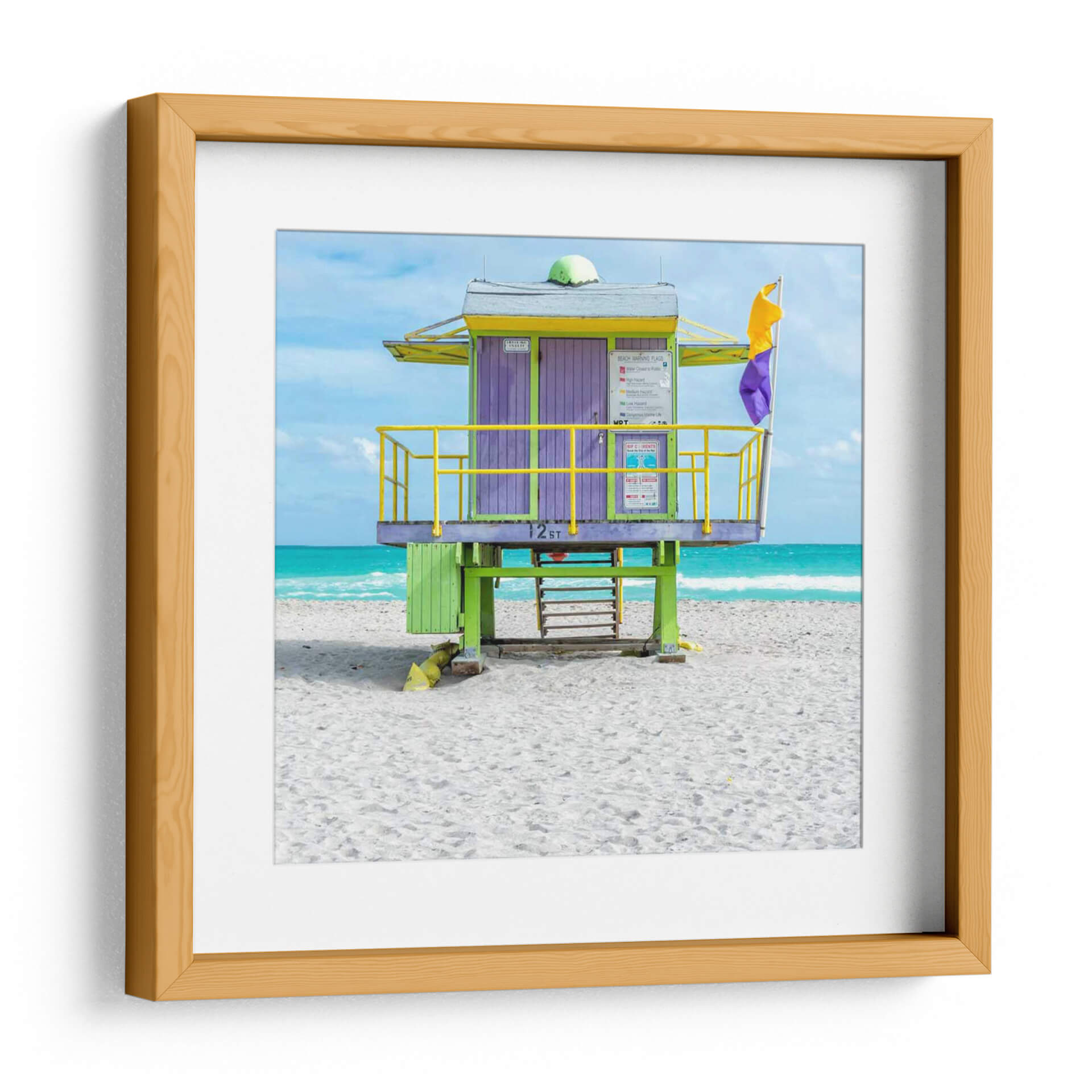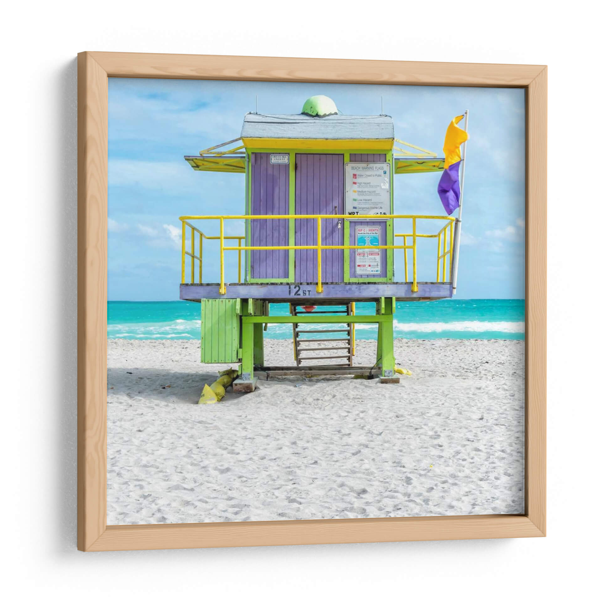 Sumérgete en la vibrante energía de Miami con "Miami Beach Viii", una obra de arte que captura la esencia de un día soleado en la costa. Este cuadro decorativo presenta una icónica caseta de socorrista, vestida con llamativos colores púrpura y verde lima, contrastando a la perfección con el azul turquesa del océano y el cielo despejado. Las barandillas amarillas brillantes añaden un toque de alegría y seguridad, mientras que la arena blanca y suave invita a la relajación. La composición, centrada en la estructura arquitectónica, crea un punto focal fuerte que evoca recuerdos de vacaciones y la despreocupada atmósfera playera. Ideal para quienes buscan infundir vitalidad y un toque de nostalgia tropical en sus hogares u oficinas, esta pieza es perfecta para salas de estar, dormitorios o cualquier espacio que necesite una dosis de sol y color. La fotografía de Richard Silver, con su enfoque nítido y colores saturados, trae la belleza escénica de Miami directamente a tu pared, convirtiendo tu espacio en un refugio de verano que puedes disfrutar todo el año. Añade esta pieza a tu colección y deja que su ambiente positivo ilumine tu día a día.