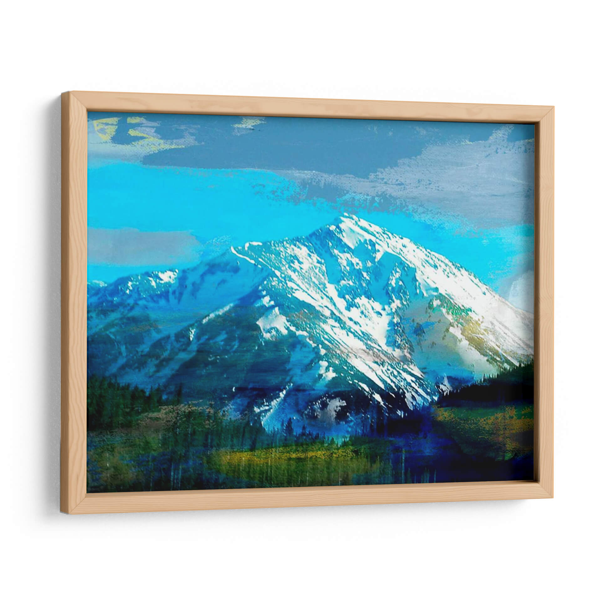Sumérgete en la majestuosidad de la naturaleza con "Montaña Azul", una obra de arte que captura la imponente belleza de un pico nevado bajo un cielo vibrante. Los intensos tonos azules, desde el cerúleo del firmamento hasta los profundos índigos de las laderas, se combinan con el blanco puro de la nieve y los verdes oscuros del bosque en primer plano, creando una atmósfera de serenidad y poderío natural. La técnica artística, con pinceladas expresivas y una composición dinámica, aporta una textura visual rica y un toque contemporáneo a este paisaje icónico. Este cuadro decorativo es perfecto para infundir calma y grandeza en cualquier estancia, ya sea una sala de estar moderna, un estudio o un dormitorio que busque un refugio de paz visual. "Montaña Azul" no es solo una representación de la naturaleza, sino una invitación a contemplar la fuerza y la serenidad del mundo natural, convirtiéndose en un punto focal inspirador y un recordatorio constante de la majestuosidad que nos rodea. Su paleta de colores fríos y la representación abstracta de la montaña la hacen ideal para complementar decoraciones contemporáneas y aportar un toque de sofisticación y tranquilidad.