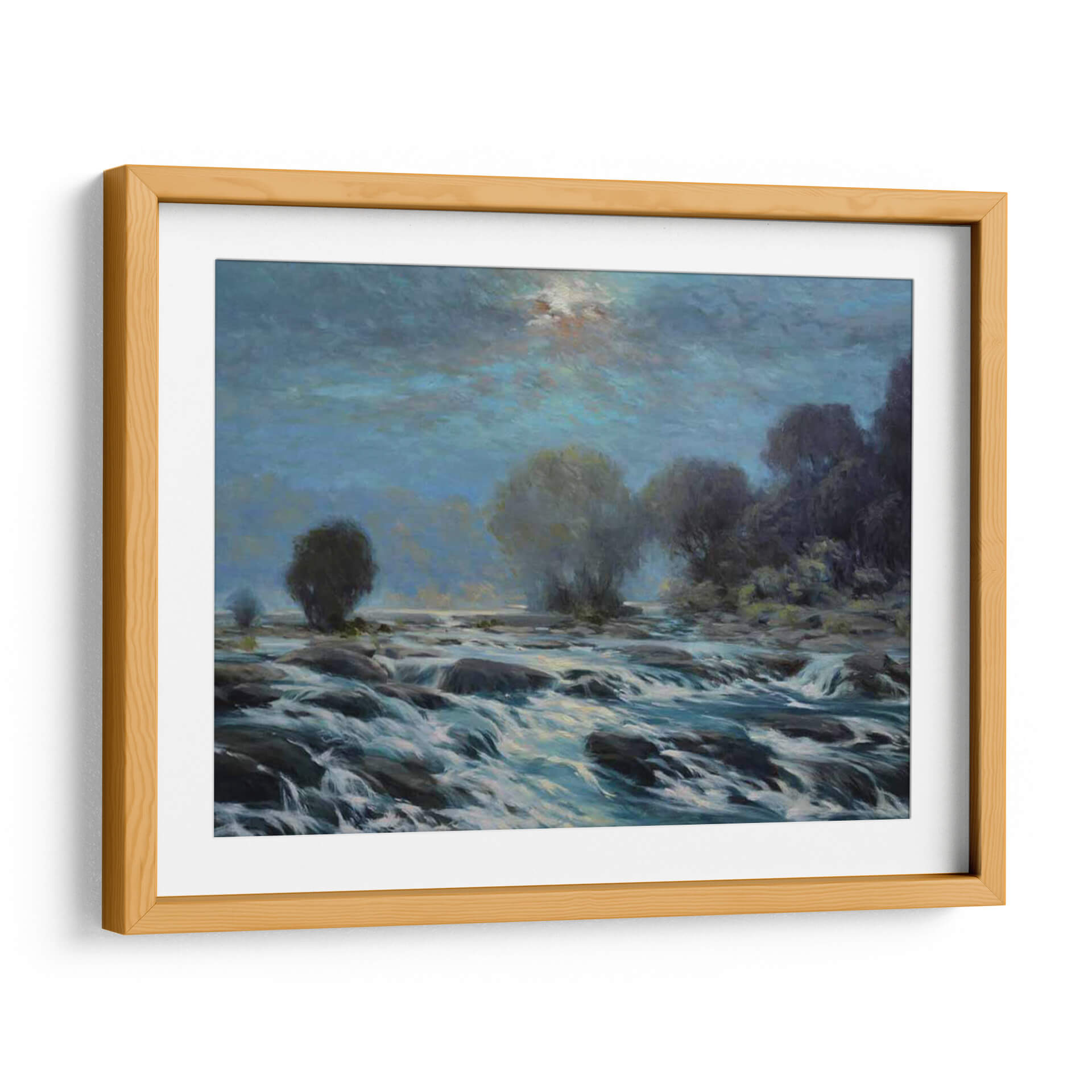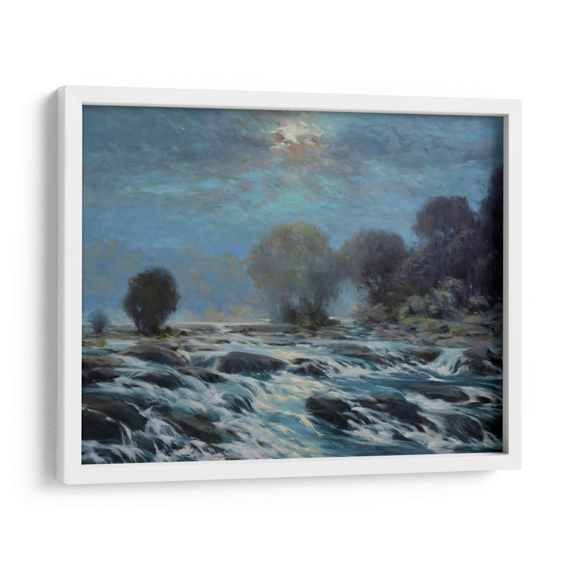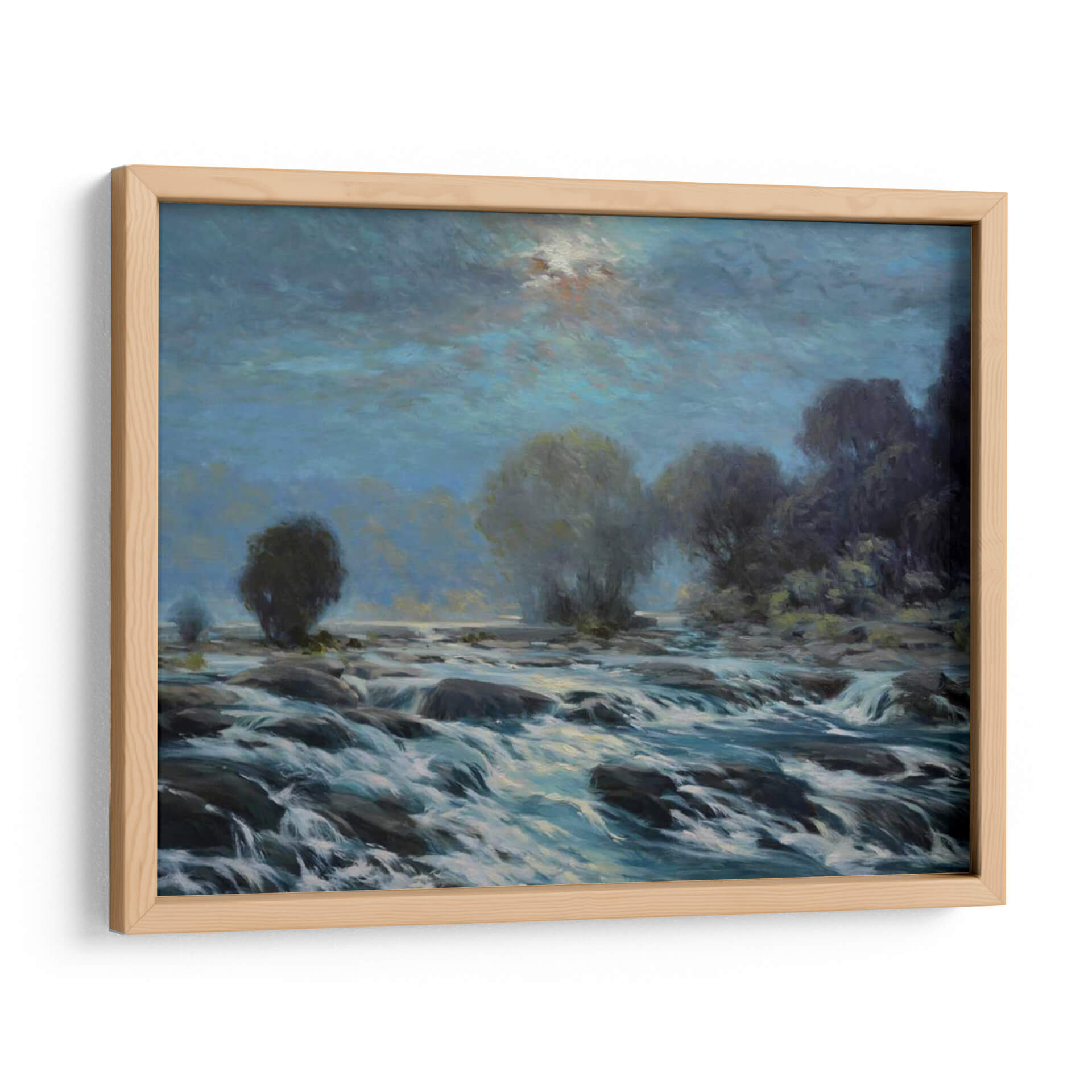 Sumérgete en la serenidad de "Moon Rapids", una obra de Chuck Larivey que captura la majestuosidad de la naturaleza en su máxima expresión. Este cuadro decorativo te transporta a un río caudaloso bajo el velo de la noche, donde la luz de la luna se filtra a través de nubes tenues, bañando las aguas turbulentas y las rocas en un resplandor etéreo. La paleta de azules profundos, grises y toques de luz crea una atmósfera de misterio y calma, invitando a la contemplación. Los árboles esbeltos y la vegetación densa en las orillas añaden un toque de vida salvaje a la escena, mientras que el movimiento del agua, representado con pinceladas enérgicas, transmite una sensación de fluidez y poder. "Moon Rapids" es ideal para añadir un toque de sofisticación y tranquilidad a cualquier espacio, ya sea una sala de estar, un dormitorio o una oficina, convirtiéndose en un punto focal que inspira paz y admiración. Transforma tu hogar en un santuario de arte y naturaleza con esta pieza cautivadora.