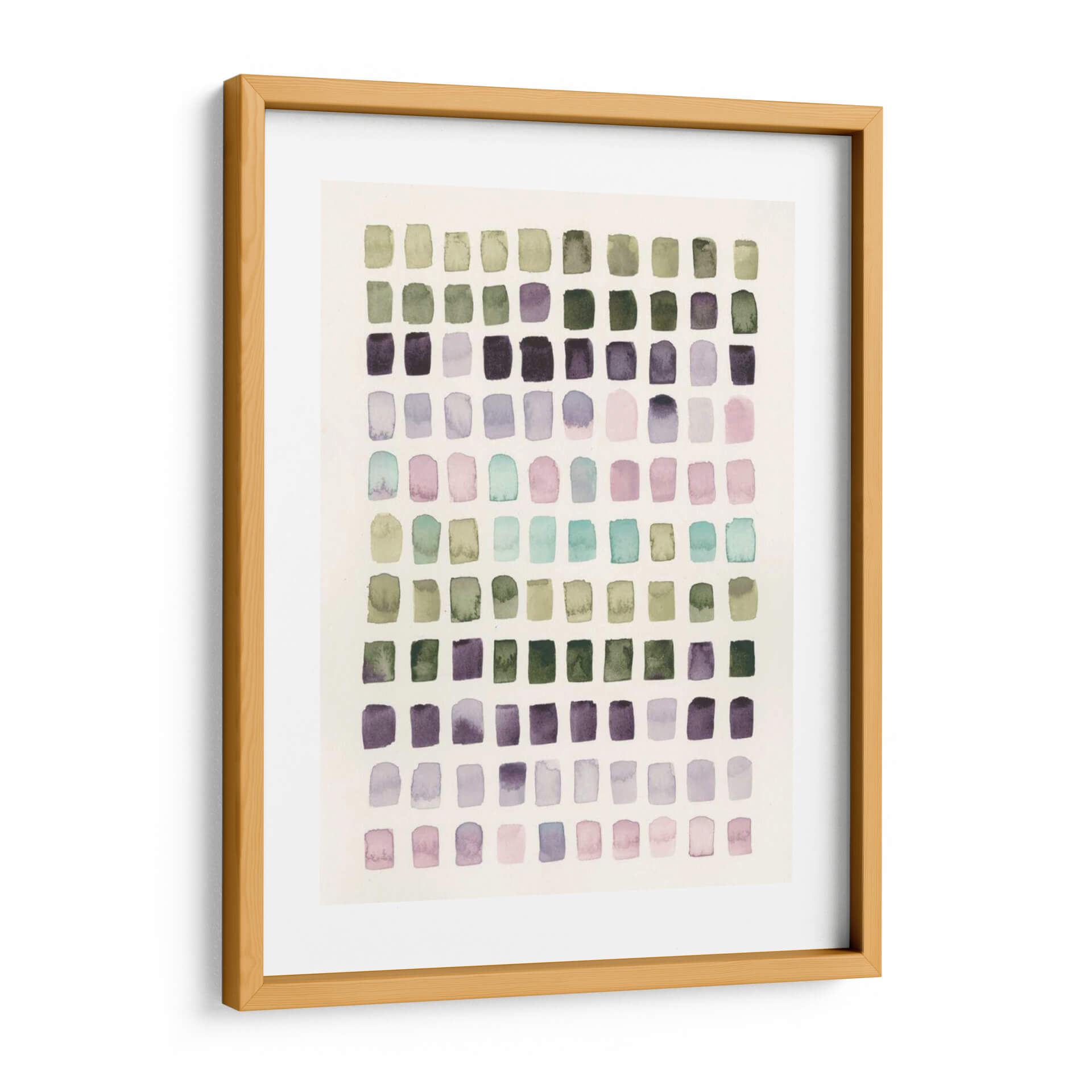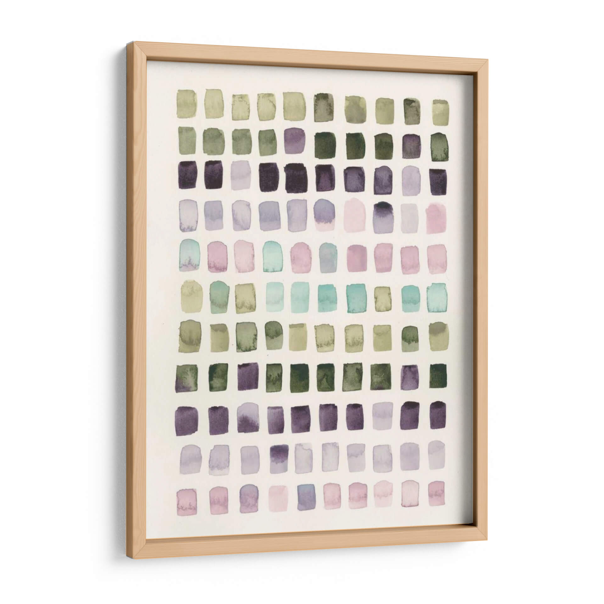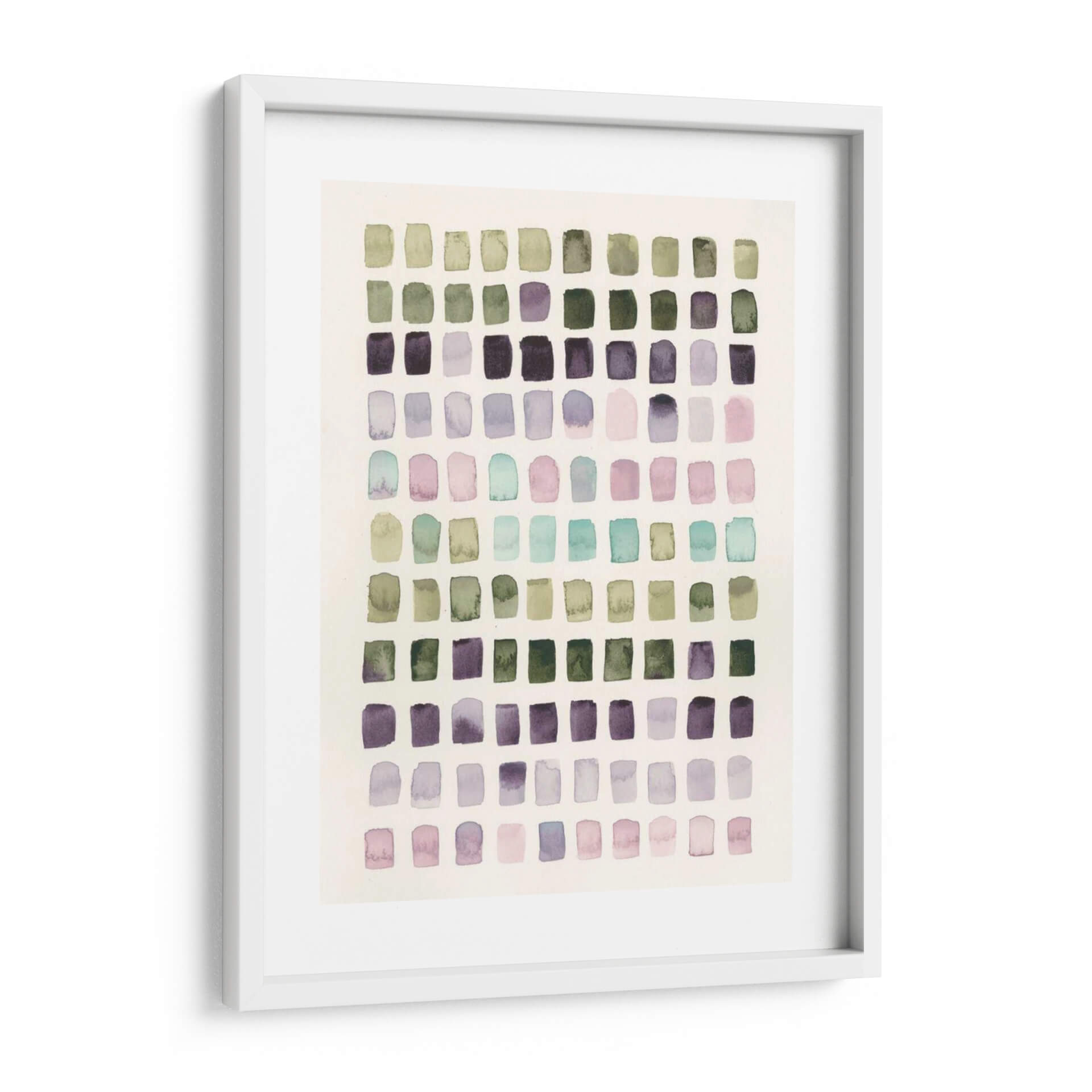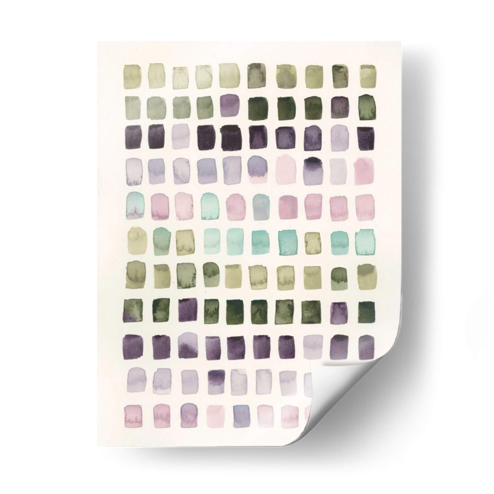 Sumérgete en la serenidad y el encanto sutil de 'Muestras De Color Sereno I', una obra de arte contemporáneo que captura la esencia de la calma visual. Este cuadro decorativo presenta una composición abstracta organizada en una cuadrícula de pequeños rectángulos, cada uno delicadamente pintado con acuarelas en tonos suaves y armoniosos. Predominan los verdes musgo, los púrpuras profundos y lavandas empolvados, complementados con toques de rosa pálido y aguamarina, creando una paleta de colores que evoca la tranquilidad de la naturaleza y la introspección. El estilo recuerda a un estudio de color meticuloso, donde cada pincelada transmite una sensación de paz y equilibrio. La textura suave y el efecto translúcido de la acuarela aportan una profundidad etérea a la pieza. 'Muestras De Color Sereno I' es ideal para infundir serenidad en espacios como dormitorios, salas de estar o estudios, actuando como un punto focal discreto pero impactante. Su diseño abstracto y su paleta de colores relajante lo convierten en la elección perfecta para quienes buscan añadir un toque de sofisticación y armonía a su hogar u oficina. Descubre cómo este cuadro puede transformar tu ambiente, aportando un remanso de paz y estilo.