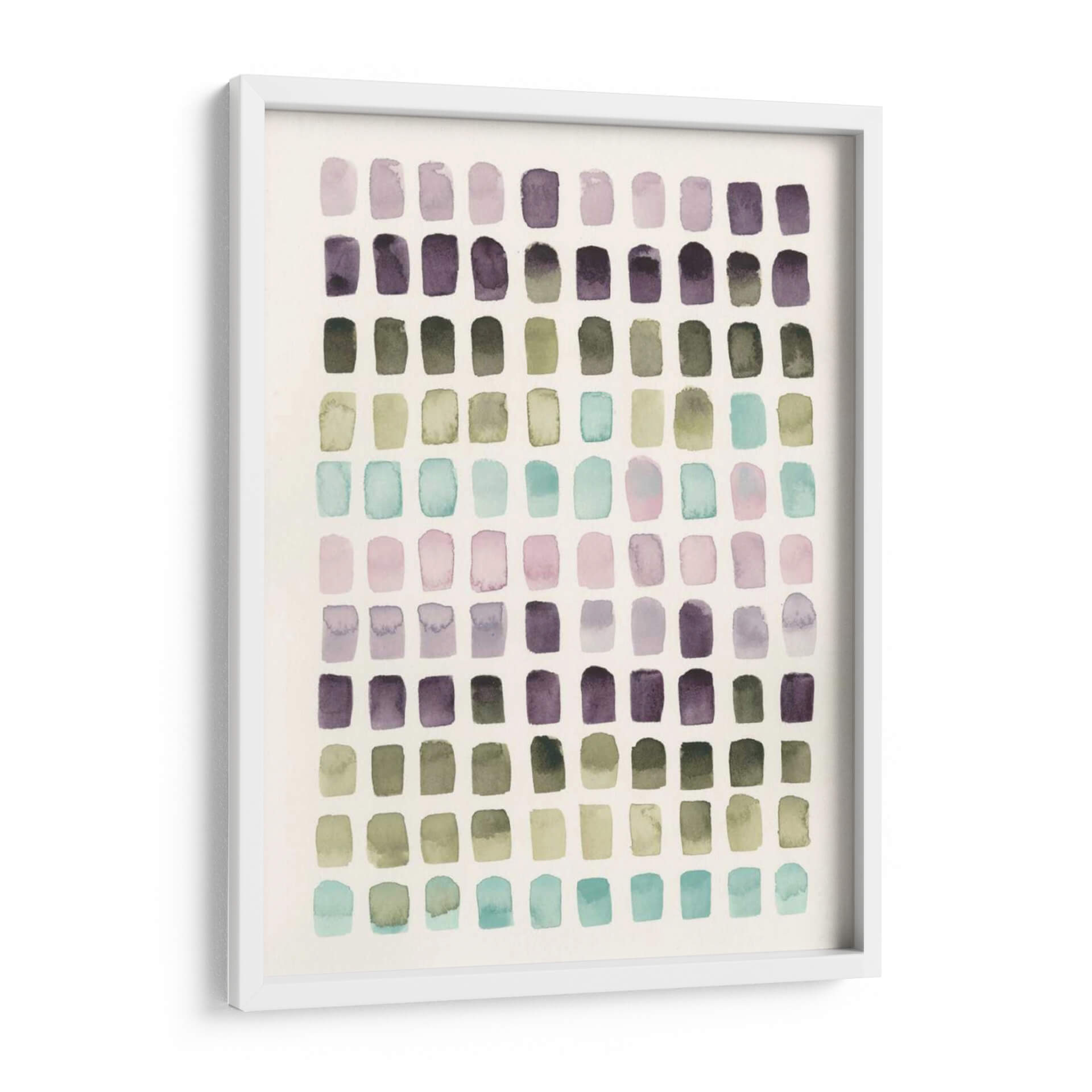 Sumérgete en la serenidad y el encanto sutil de "Muestras Serenas De Color II", una obra de arte contemporáneo de Grace Popp. Este cuadro decorativo presenta una composición abstracta meticulosamente organizada de pequeños rectángulos, evocando la sensación de un muestrario de acuarelas o un código visual armonioso. La paleta de colores se despliega en una delicada transición que va desde suaves lavandas y púrpuras profundos hasta verdes musgo y toques refrescantes de azul verdoso, todo sobre un fondo neutro que permite que cada tonalidad respire. La técnica de acuarela aporta una ligereza etérea y una textura sutil, haciendo que cada pincelada sea una caricia visual. Esta pieza abstracta es ideal para añadir un toque de calma y sofisticación a cualquier espacio, ya sea tu sala de estar, dormitorio u oficina. Su diseño abstracto y su paleta de colores armoniosa la convierten en una opción versátil para interiores modernos, minimalistas o de estilo escandinavo. "Muestras Serenas De Color II" no es solo una decoración, es una invitación a la contemplación y a la apreciación de la belleza en su forma más pura y serena. Descubre cómo este cuadro decorativo puede transformar tu ambiente, aportando un equilibrio visual y una atmósfera de tranquilidad que inspira.
