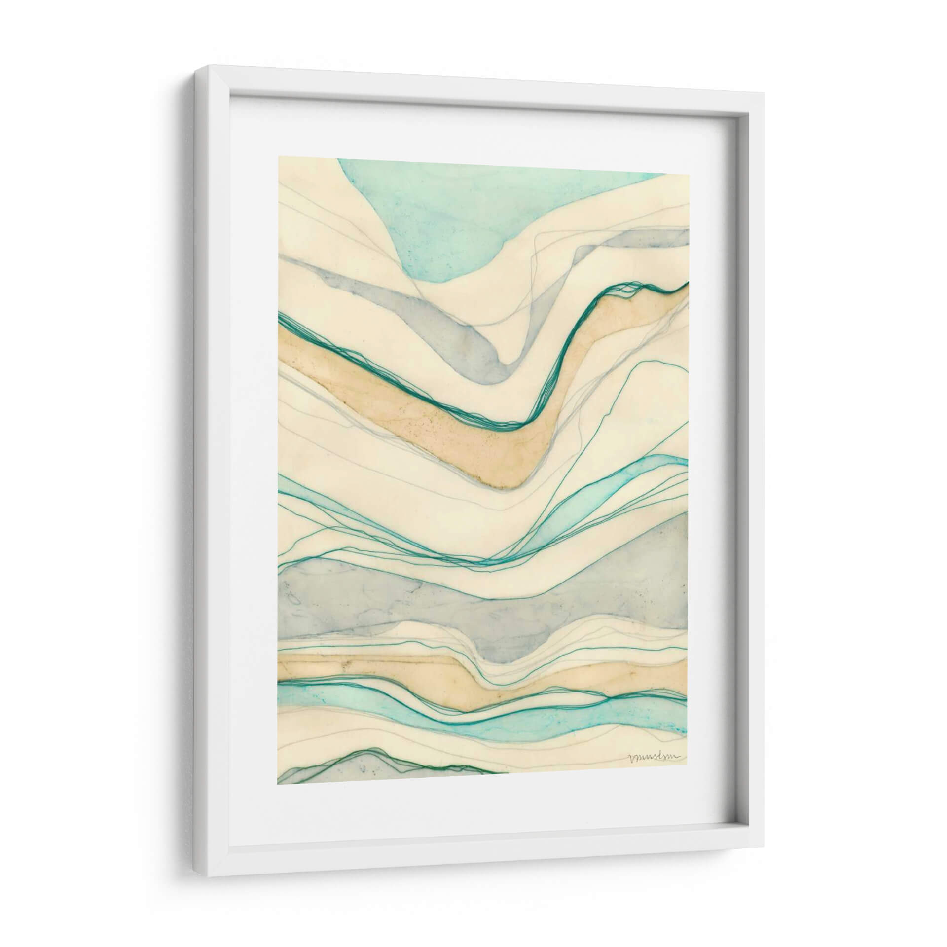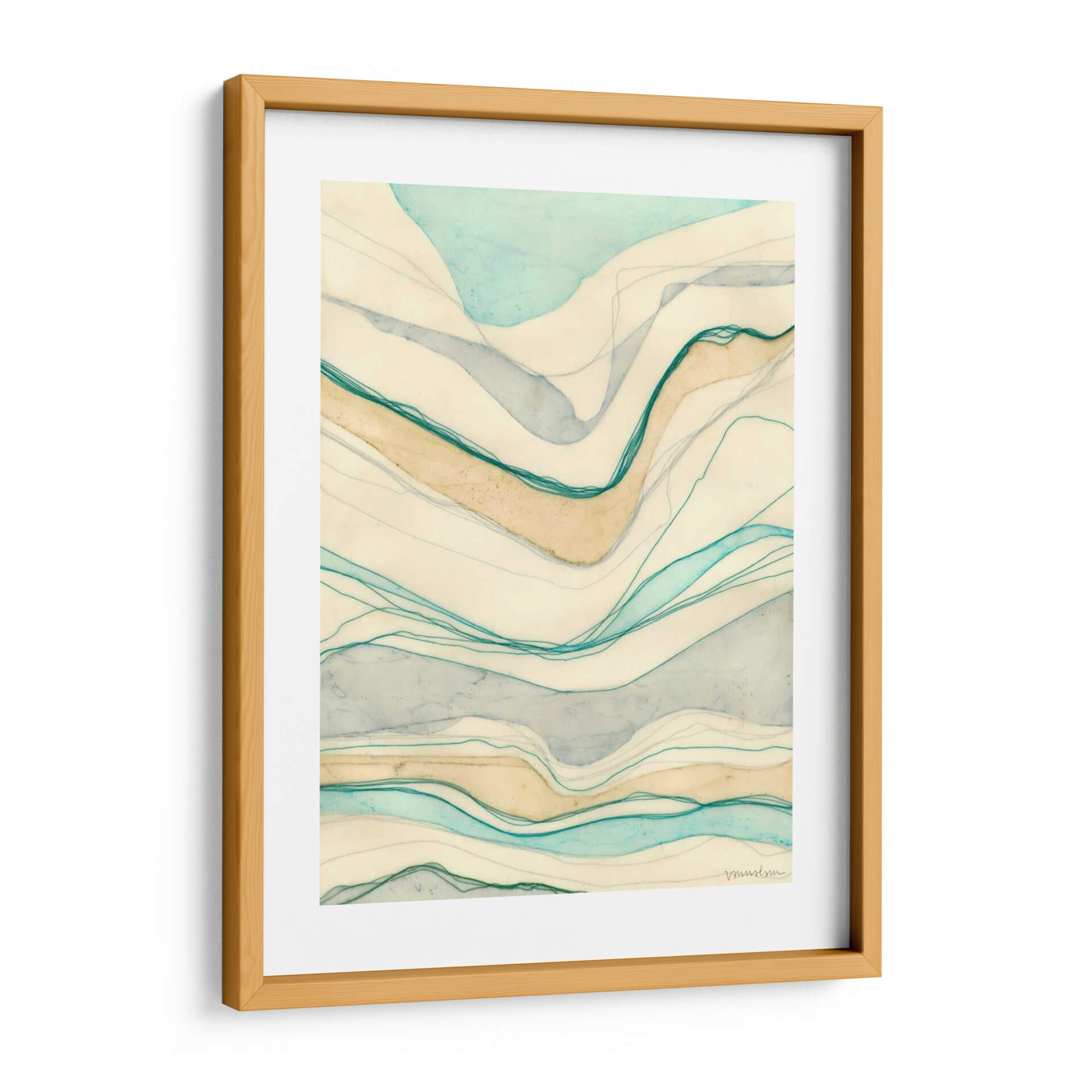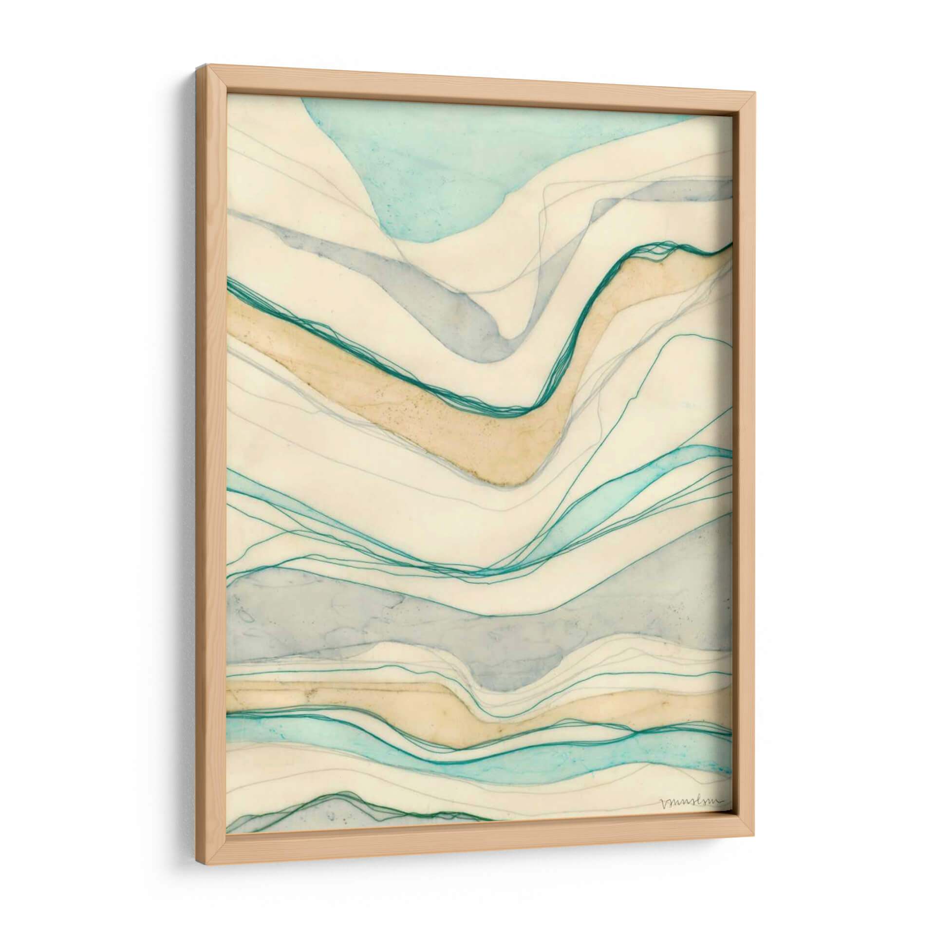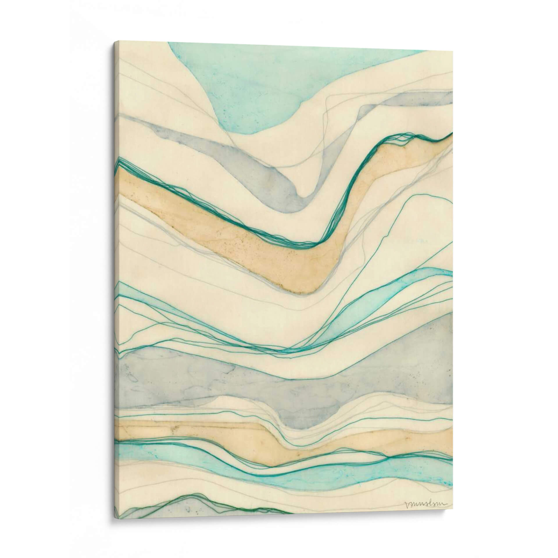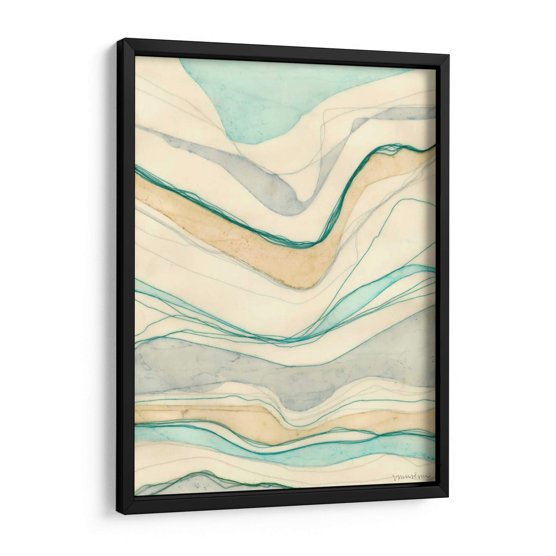 Sumérgete en la serenidad y el flujo natural con "Ocean Cascade II" de Vanna Lam, una obra de arte abstracto que evoca la tranquilidad de las olas y la vastedad del océano. Esta pieza se caracteriza por sus líneas fluidas y orgánicas, que se entrelazan en una composición delicada y rítmica. La paleta de colores, dominada por suaves tonos de azul cielo, beige arena y toques de verde esmeralda, crea una atmósfera de calma y frescura, ideal para cualquier espacio que busque un respiro visual. Las sutiles texturas y las finas líneas dibujadas a mano añaden profundidad y un toque artesanal, invitando a la contemplación. "Ocean Cascade II" es perfecto para añadir un elemento de serenidad y elegancia contemporánea a tu hogar u oficina, funcionando como un punto focal que atrae la mirada sin abrumar. Este cuadro decorativo contemporáneo se integra a la perfección en estilos de decoración minimalistas, escandinavos o costeros, aportando una sensación de paz y conexión con la naturaleza. Transforma tu entorno con la belleza etérea y el diseño evocador de esta pieza única.