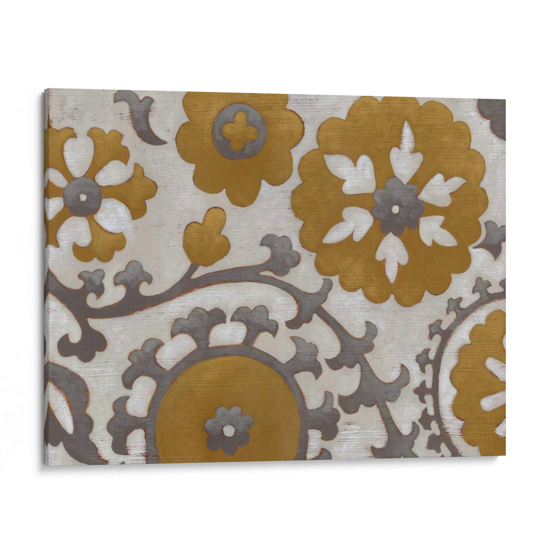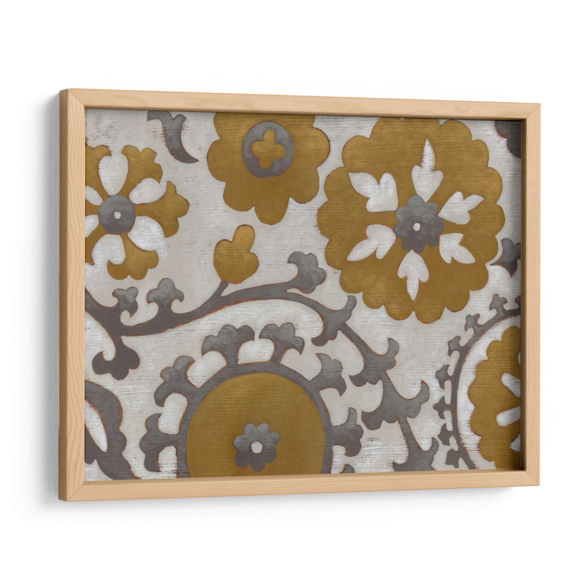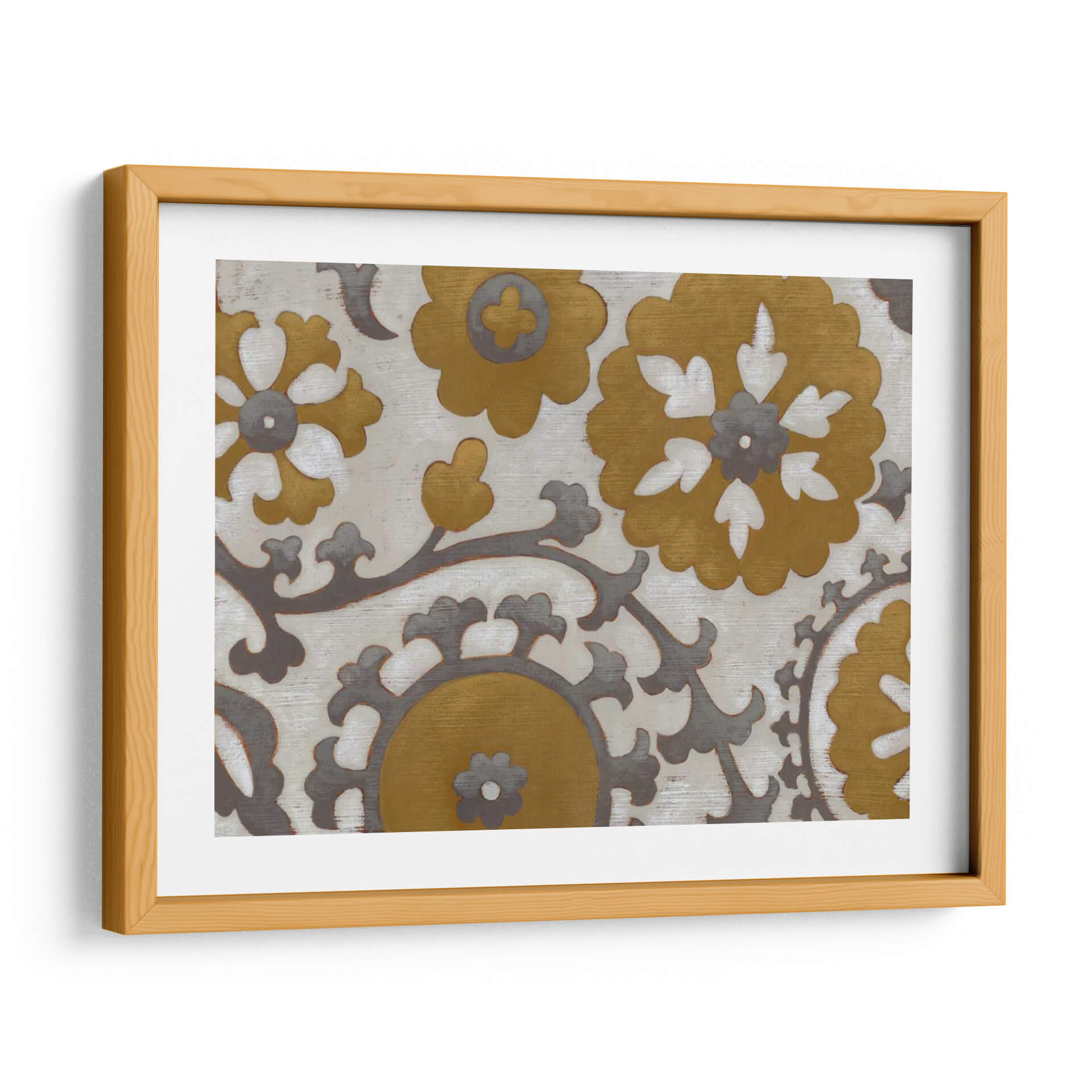 Inyecta calidez y un toque de sofisticación a tu hogar con el cuadro decorativo "Ocre Suzani II" de Chariklia Zarris. Esta cautivadora obra de arte abstracto evoca la rica herencia de los diseños Suzani, reinterpretados con una paleta de colores contemporánea y texturas sutiles. La composición presenta un patrón intrincado y orgánico, donde las formas florales estilizadas en tonos ocres y dorados se entrelazan con delicados motivos grises sobre un fondo texturizado de aspecto envejecido, que recuerda a la madera desgastada. La interacción entre los tonos cálidos y fríos crea un equilibrio visual fascinante, aportando profundidad y carácter a la pieza. Ideal para quienes buscan añadir un punto focal elegante a su sala de estar, comedor o dormitorio, este cuadro decorativo contemporáneo es perfecto para espacios que buscan una conexión con la artesanía tradicional pero con una estética moderna. Su diseño versátil complementa una amplia gama de estilos decorativos, desde el bohemio chic hasta el moderno ecléctico, añadiendo una dosis de arte y personalidad a cualquier ambiente. Descubre cómo "Ocre Suzani II" puede transformar tu espacio en un refugio de estilo y buen gusto.