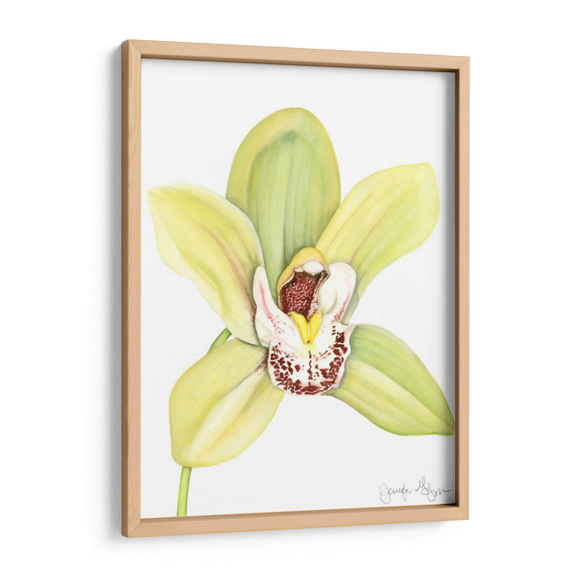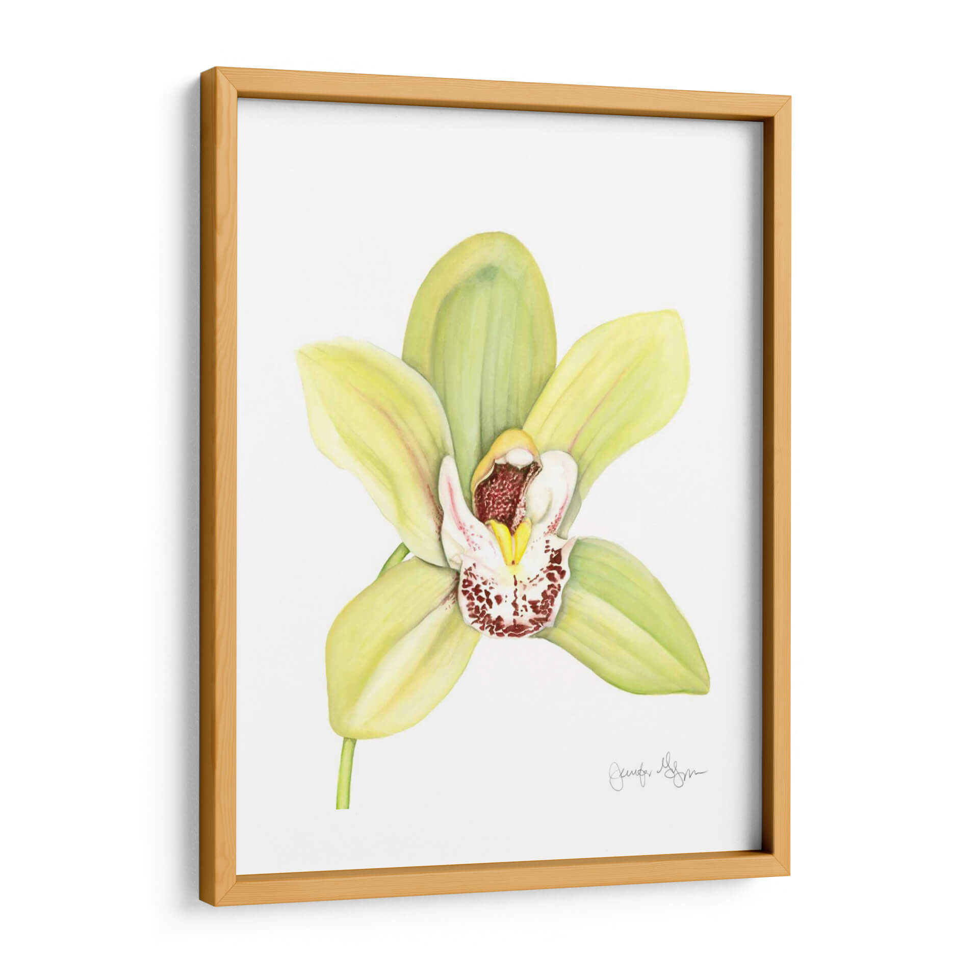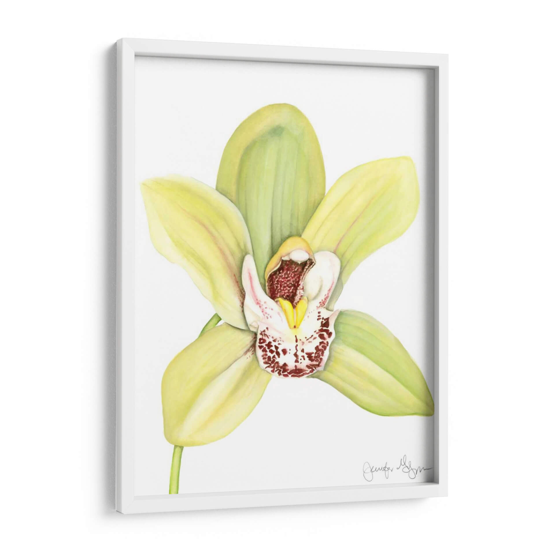 Embellece tu espacio con la delicada belleza de "Orchid Beauty II", una obra de arte exquisita que captura la esencia de una orquídea en plena floración. Esta pieza, creada por la talentosa artista Jennifer Goldberger, presenta una orquídea de pétalos suaves en tonos verde pálido y amarillo, contrastando maravillosamente con el centro blanco adornado con vibrantes motas rojizas y detalles sutiles en amarillo y burdeos. La técnica utilizada, que evoca la delicadeza de la acuarela o el pastel, confiere a la flor una textura casi tangible y una luminosidad etérea. La composición, centrada en la flor y ejecutada sobre un fondo neutro y limpio, permite que la orquídea sea la protagonista indiscutible, atrayendo la mirada y añadiendo un toque de elegancia natural. "Orchid Beauty II" es ideal para infundir serenidad y sofisticación en cualquier habitación, ya sea en un dormitorio tranquilo, un estudio inspirador o como un acento fresco en una sala de estar moderna. Este cuadro decorativo es una invitación a la contemplación y una celebración de la belleza efímera de la naturaleza, perfecto para quienes buscan añadir un elemento de calma y refinamiento a su decoración.