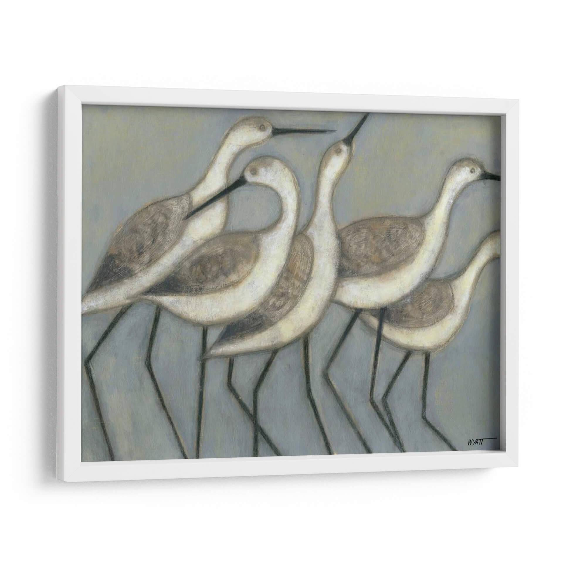 Emb uevo en un viaje sereno con "Pájaros Orilla II" de Norman Wyatt Jr., una obra de arte que captura la gracia y la tranquilidad de la naturaleza. Este cuadro decorativo presenta una composición delicada de cinco aves zancudas, representadas con un estilo que evoca la simplicidad y la elegancia. La paleta de colores, dominada por suaves tonos grises y toques de beige y blanco, crea una atmósfera de calma y serenidad, perfecta para cualquier espacio que busque paz y equilibrio. Las figuras de los pájaros, estilizadas y con un trazo distintivo, parecen flotar sobre un fondo neutro, atrayendo la mirada hacia su forma y movimiento sugerido. El estilo, que mezcla elementos figurativos con una aproximación casi abstracta en el tratamiento del color y la forma, resulta moderno y atemporal. "Pájaros Orilla II" es ideal para añadir un toque de sofisticación naturalista a salones, dormitorios o estudios, invitando a la contemplación y al disfrute de la belleza sutil. Este cuadro decorativo es una pieza que, sin duda, aportará una sensación de armonía y conexión con el entorno natural a tu hogar u oficina, convirtiéndose en un punto focal que inspira paz.