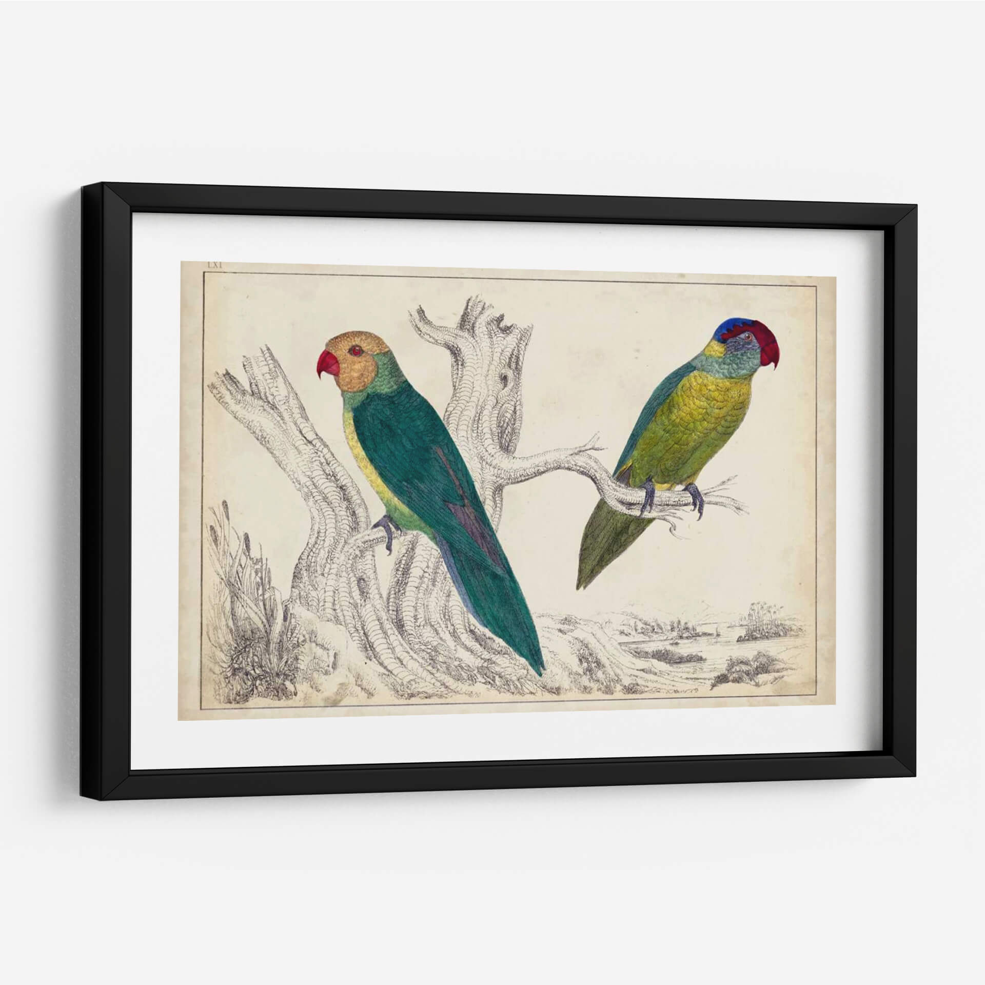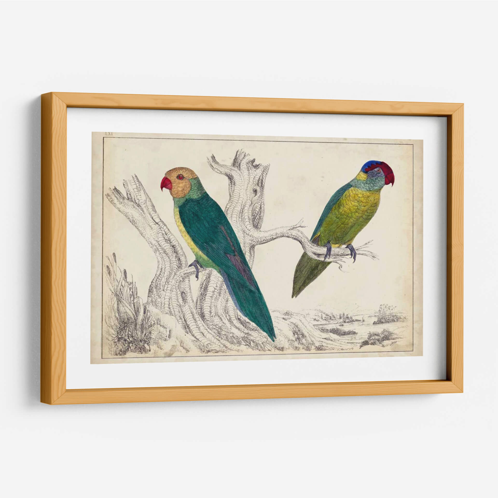 Inyecta vida y color a tu espacio con este cautivador cuadro decorativo 'Par De Loros Ii'. Esta obra de arte, con su estilo de ilustración clásica, presenta dos loros vibrantes posados sobre una rama, rodeados por un detallado paisaje de fondo. Los loros, con sus plumajes en tonos verdes, amarillos y azules, contrastan armoniosamente con los elementos de la naturaleza que los rodean, como la corteza texturizada de los árboles y la delicada acuarela del paisaje. La paleta de colores, aunque rica y detallada, mantiene una sutileza que evoca una sensación de calma y admiración por la naturaleza. La composición, con los pájaros como protagonistas, invita a la contemplación y aporta un toque de sofisticación natural a cualquier habitación. Ideal para salones, estudios o incluso como un acento único en un dormitorio, este cuadro decorativo es perfecto para aquellos que aprecian la belleza de la fauna y buscan añadir una pieza con carácter y encanto histórico a su decoración. Su estilo atemporal lo convierte en una adición versátil para diversos estilos decorativos, desde el clásico hasta el contemporáneo con un toque vintage.