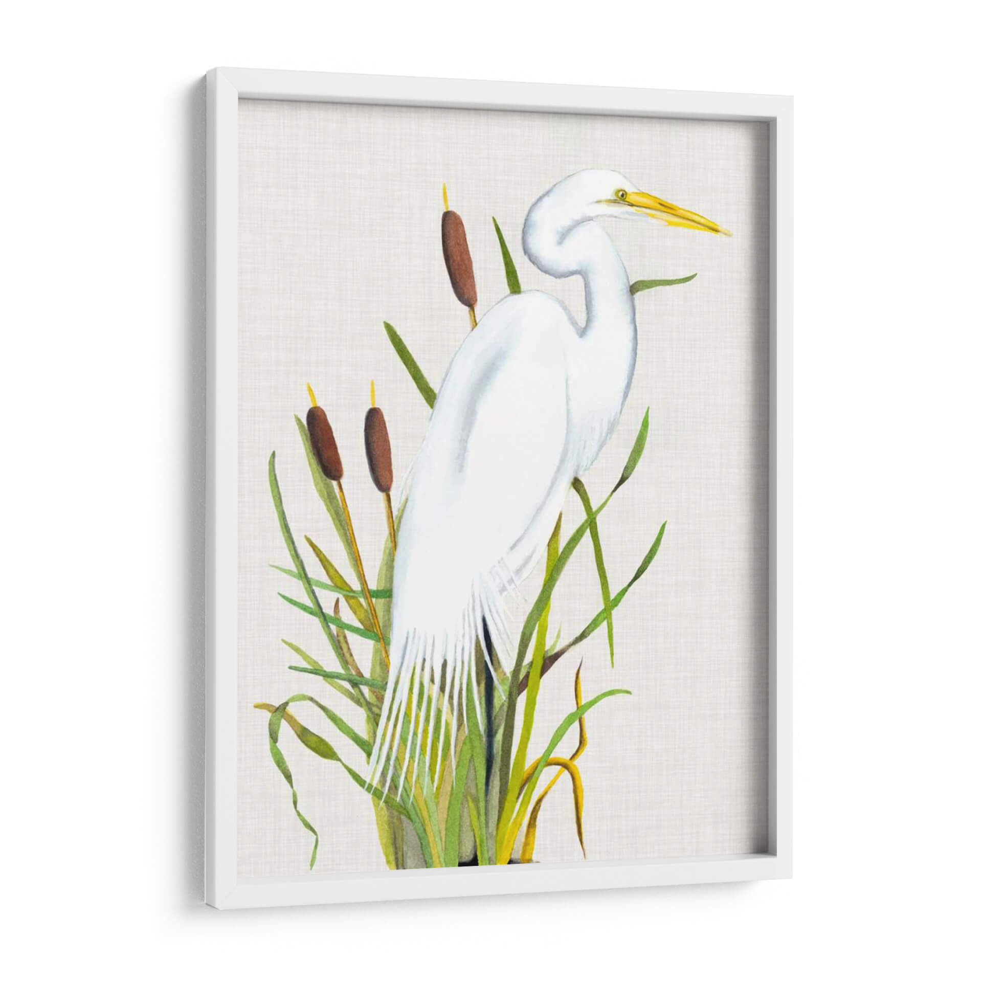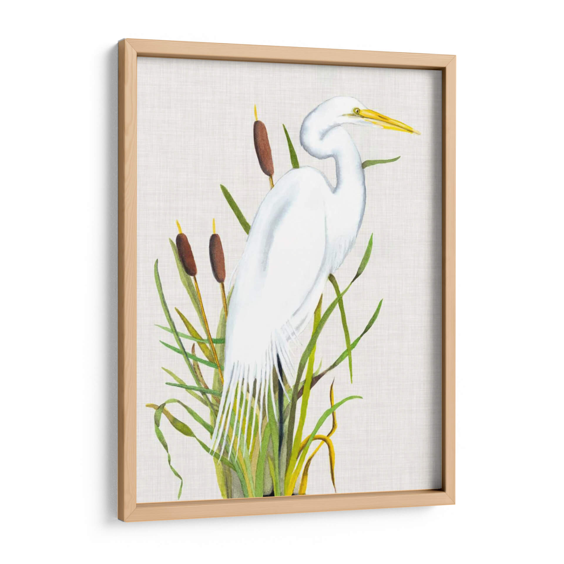 Captura la serenidad de la naturaleza en tu hogar con "Pasas De Agua Y Cattails Iii", una exquisita obra de arte de Naomi McCavitt. Este cuadro decorativo presenta un majestuoso garza blanca posada entre juncos y espadañas, una escena que evoca calma y la belleza serena de los humedales. Los delicados trazos de acuarela dan vida a las plumas blancas y relucientes del ave, contrastando elegantemente con los tonos verdes vibrantes de la vegetación y los marrones terrosos de las espadañas. La paleta de colores, dominada por blancos puros, verdes naturales y toques sutiles de amarillo en el pico del ave, crea una atmósfera de tranquilidad y armonía. La composición centra la atención en la elegante figura de la garza, invitando a la contemplación y a la conexión con el mundo natural. Ideal para espacios que buscan un refugio de paz, como dormitorios, estudios o salas de estar, este cuadro decorativo es una ventana a un paisaje tranquilo. Integra esta pieza para añadir un toque de elegancia natural y sofisticación a tu decoración, transformando cualquier ambiente en un santuario de calma.