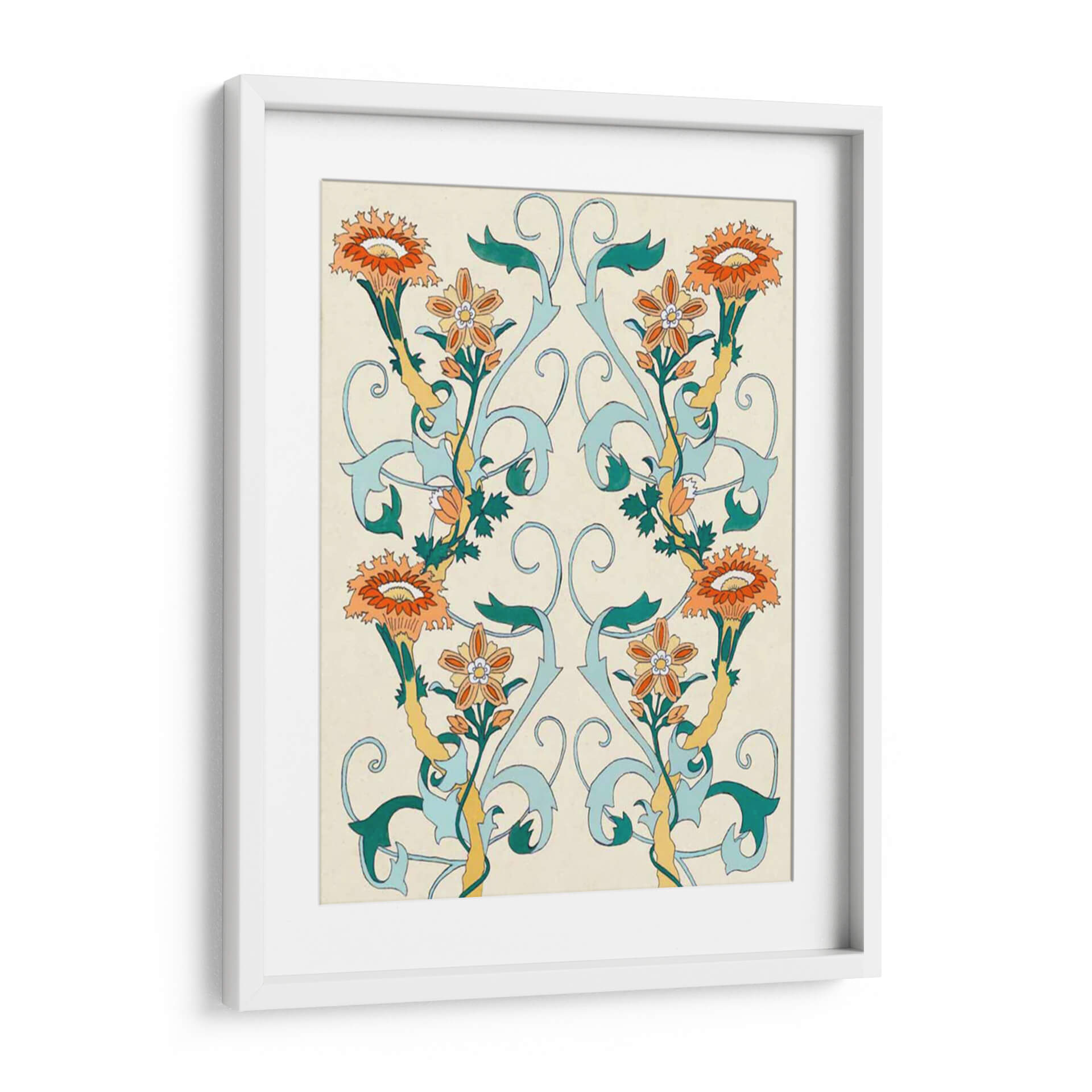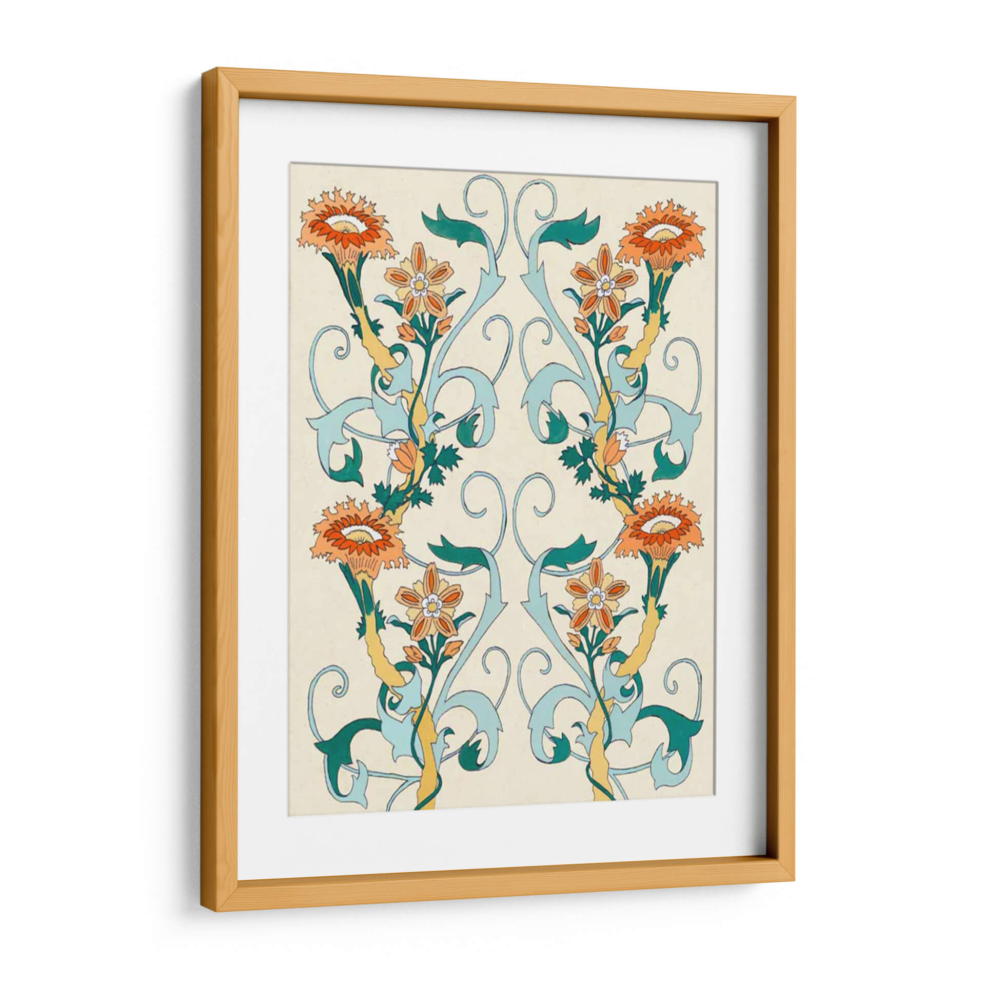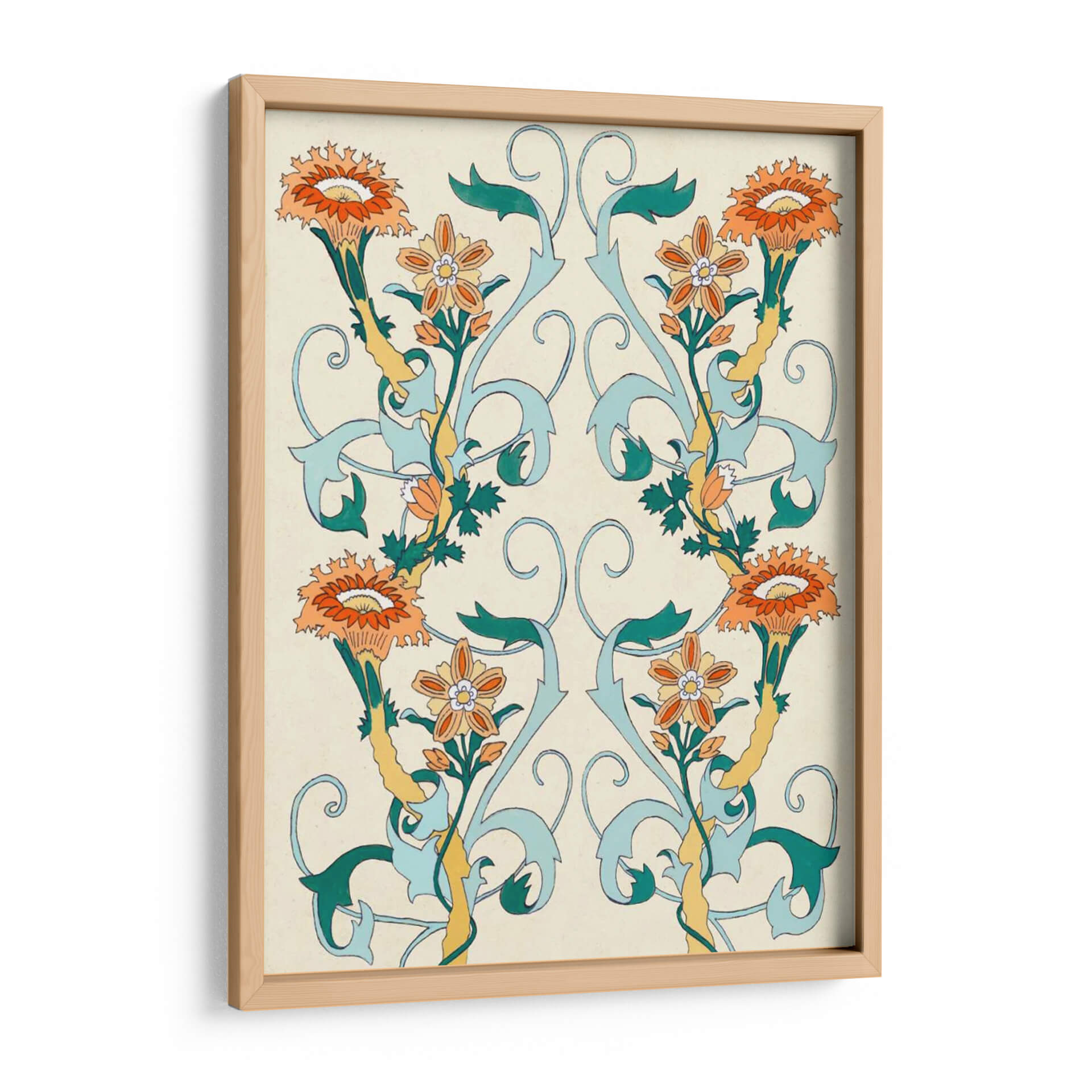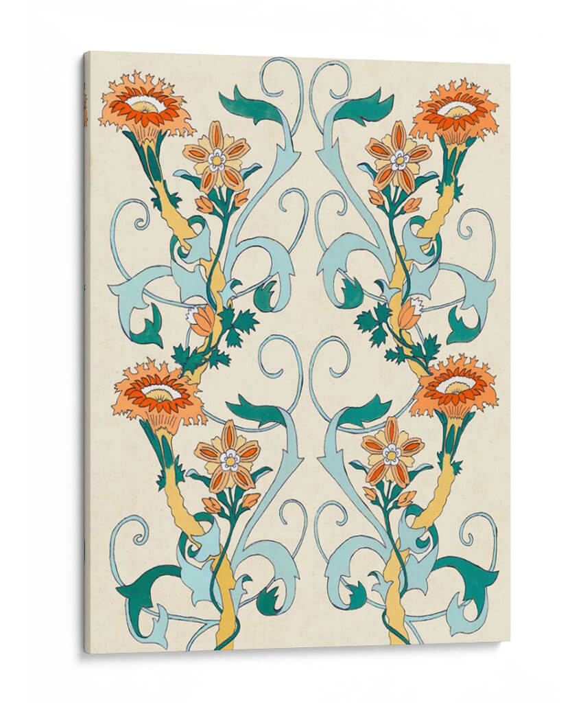 Este cautivador cuadro decorativo, "Patrón Floral Nouveau II" de Naomi McCavitt, es una obra de arte que evoca la elegancia y el detalle del estilo Art Nouveau. La pieza presenta un patrón simétrico de flores estilizadas en vibrantes tonos naranjas y amarillos, entrelazadas con volutas verdes y azul turquesa sobre un fondo crema suave. La composición meticulosa y las líneas fluidas crean una sensación de armonía y movimiento, atrayendo la mirada a través de sus delicados elementos botánicos. Ideal para quienes buscan infundir un toque de clasicismo moderno y sofisticación en su hogar u oficina, este cuadro decorativo es perfecto para salones, comedores o estudios que deseen un acento visual distintivo y con carácter. Su paleta de colores equilibrada permite integrarlo fácilmente en diversas decoraciones, aportando un aire de frescura y vitalidad.
