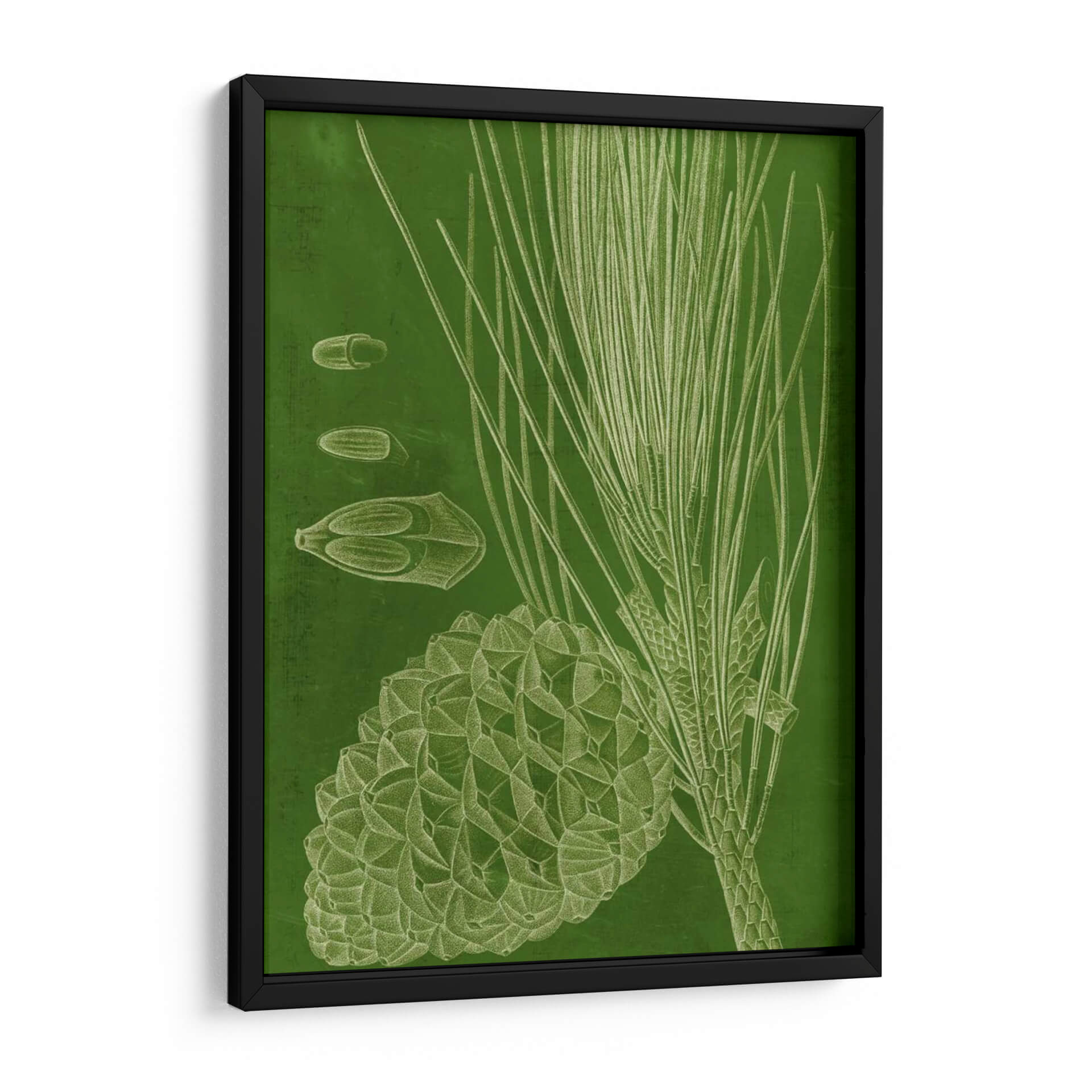 Transforma tu espacio con la serena belleza botánica del cuadro decorativo "Pino Moderno I" de Vision Studio. Esta cautivadora obra de arte presenta un estudio detallado de un pino, con sus características agujas y una piña intrincadamente renderizada, junto a sus semillas. La paleta de colores, dominada por un verde profundo y texturizado, evoca una sensación de naturaleza y tranquilidad, mientras que el estilo distintivo, con líneas finas y un toque de arte vintage, aporta un aire de sofisticación a cualquier habitación. La composición se centra en la delicadeza de la flora, creando un punto focal que inspira calma y conexión con el mundo natural. Ideal para salones, dormitorios u oficinas que buscan un toque de elegancia orgánica y un respiro visual. Este cuadro decorativo no solo embellece tu pared, sino que también invita a la contemplación, fusionando el arte contemporáneo con la atemporalidad de la botánica. Añade una pieza única que hable de estilo y serenidad a tu decoración.