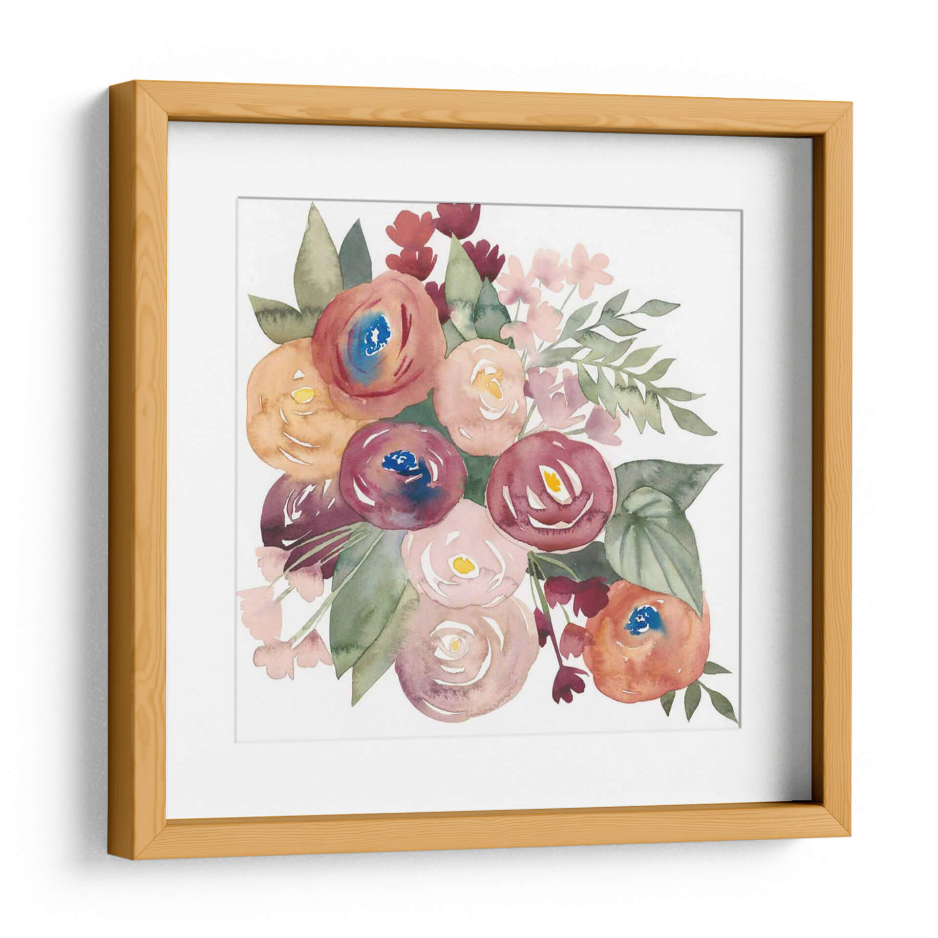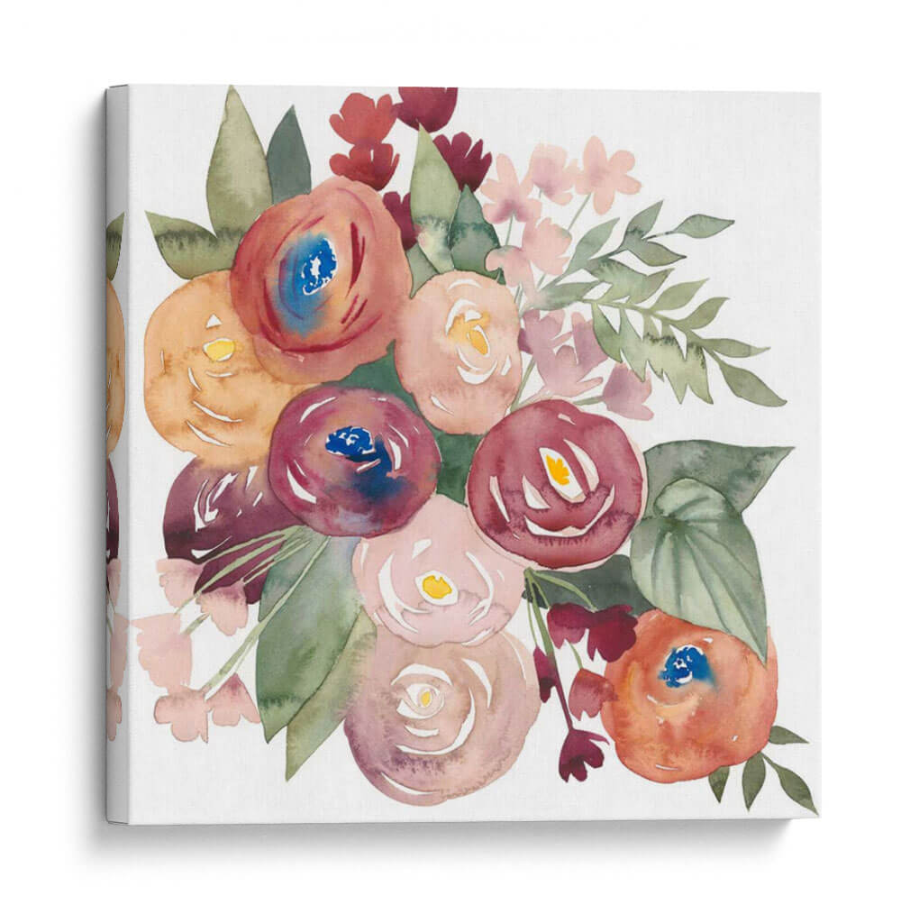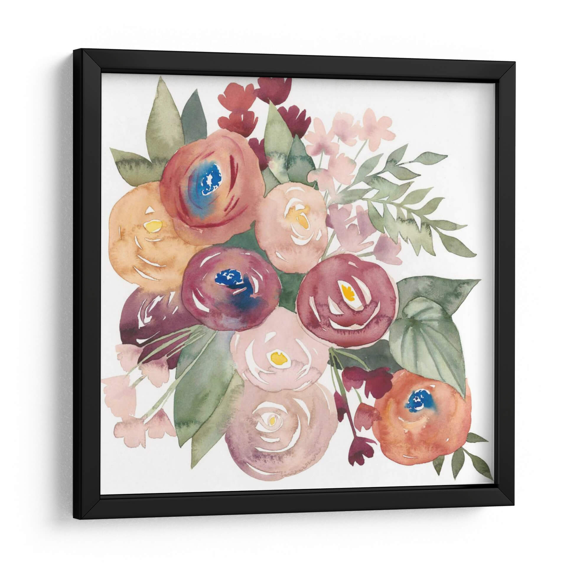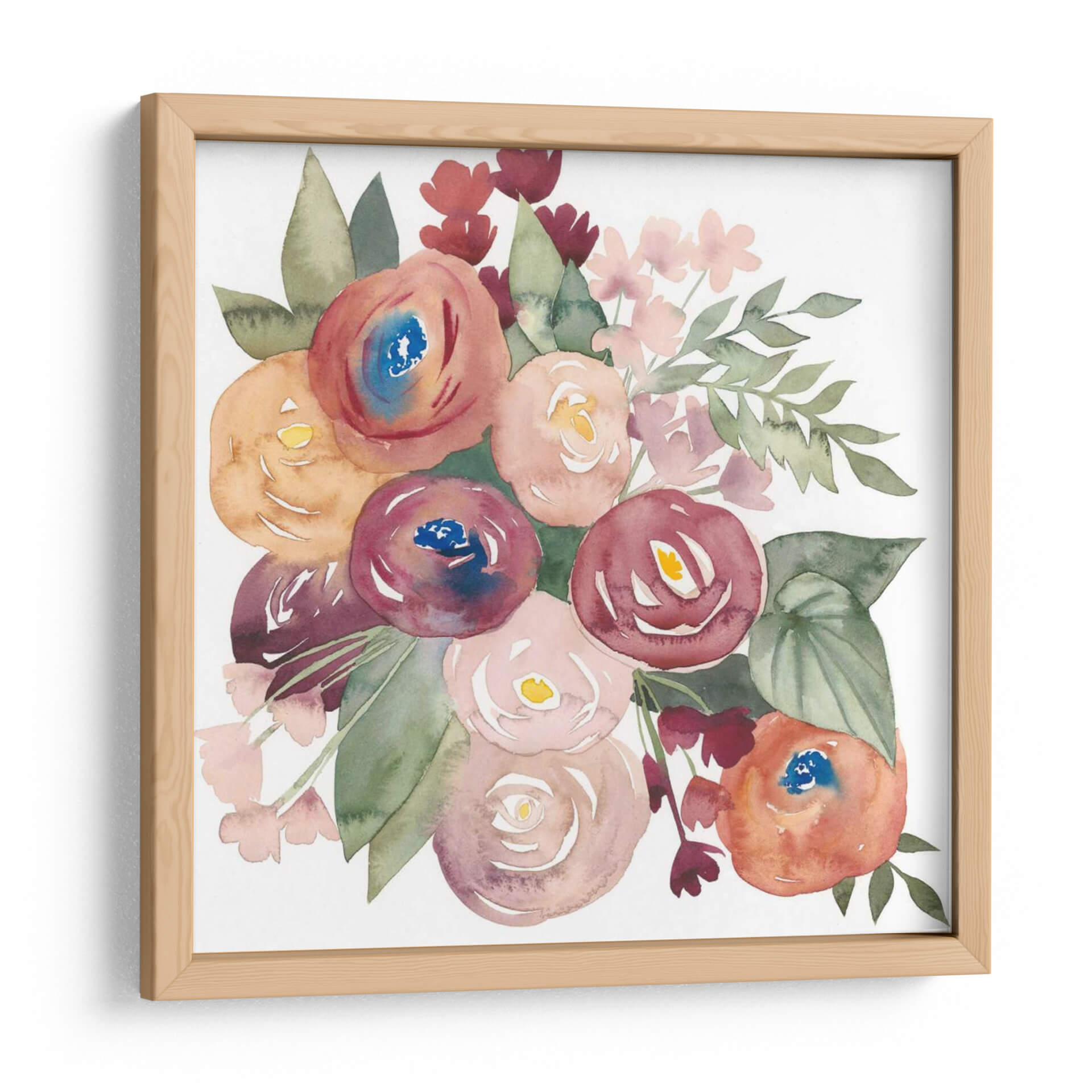 Añade un toque de elegancia floral a tu espacio con "Piruette Posy II", una cautivadora obra de arte de Grace Popp. Este cuadro decorativo presenta un exuberante ramo de flores pintadas en acuarela, con pétalos en tonos rosados, coral, burdeos y ocres, contrastados por el verde follaje y sutiles toques de azul en los centros de algunas flores. El estilo suave y etéreo de la acuarela crea una atmósfera de serenidad y sofisticación, perfecta para cualquier habitación. La composición, centrada en la belleza de la naturaleza, evoca una sensación de calma y renovación, haciendo de esta pieza un punto focal encantador. Ideal para salas de estar, dormitorios o estudios que buscan una dosis de color y arte delicado, "Piruette Posy II" se integra armoniosamente en decoraciones contemporáneas, bohemias o clásicas. Transforma tu hogar en un oasis de belleza con este cuadro de flores que captura la esencia de la primavera en cada pincelada, invitando a la tranquilidad y al deleite visual.