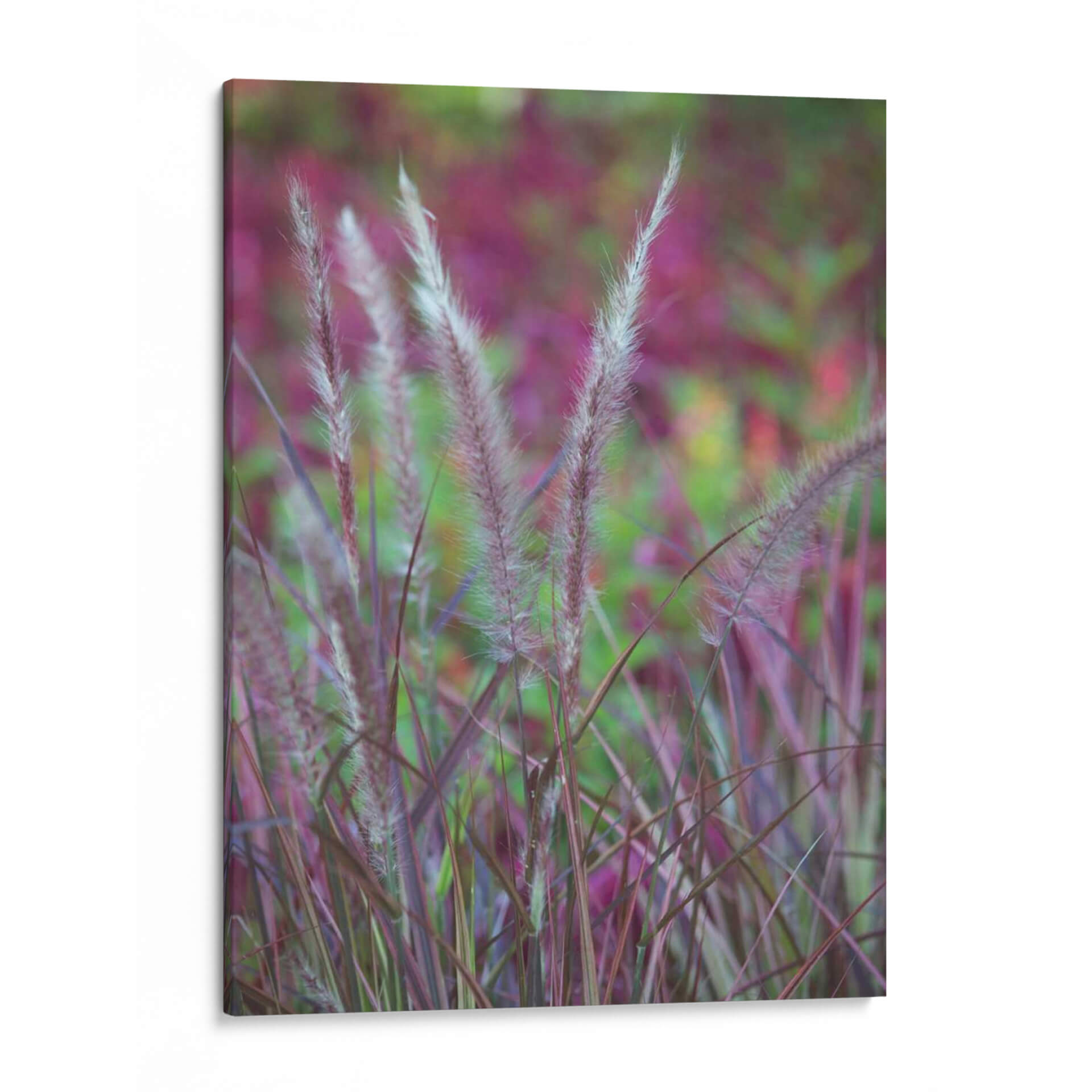 Sumérgete en la delicada belleza de "Plumes Purple II", una obra de arte que captura la elegancia etérea de las plumas de hierba en tonos púrpuras y verdes. La composición se centra en el primer plano de estas espigas, con un fondo suavemente desenfocado que evoca un jardín exuberante bañado por la luz. Los colores vibrantes pero armoniosos, dominados por púrpuras profundos, rosas intensos y toques de verde, crean una atmósfera de serenidad y vitalidad. El estilo fotográfico, con un enfoque nítido en las texturas finas de las plumas y un bokeh cautivador, atrae la mirada y transmite una sensación de calma natural. Este cuadro decorativo es ideal para añadir un toque de sofisticación y conexión con la naturaleza a cualquier espacio, desde una sala de estar moderna hasta un sereno dormitorio o una oficina que busca inspiración. Su diseño evocador lo convierte en una pieza central que invita a la contemplación y al aprecio por la belleza sutil del mundo natural. Añade un toque de color y tranquilidad a tu hogar u oficina con esta impresionante representación botánica.