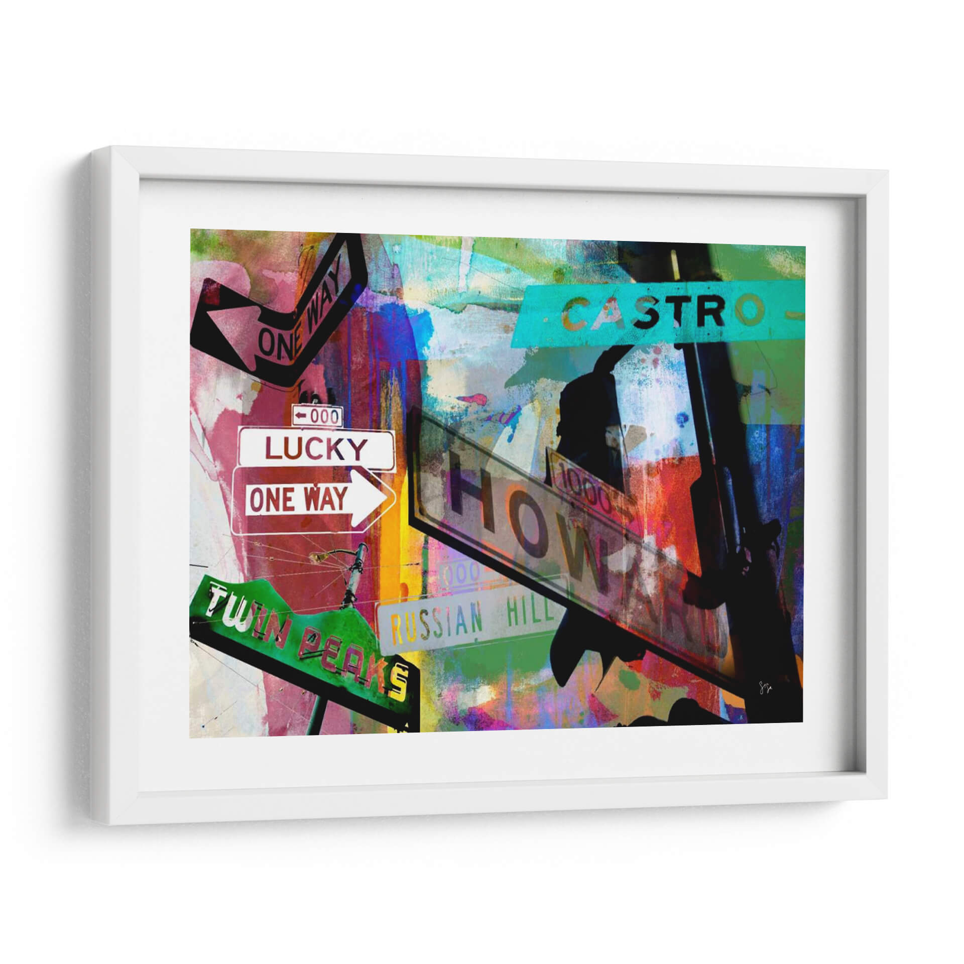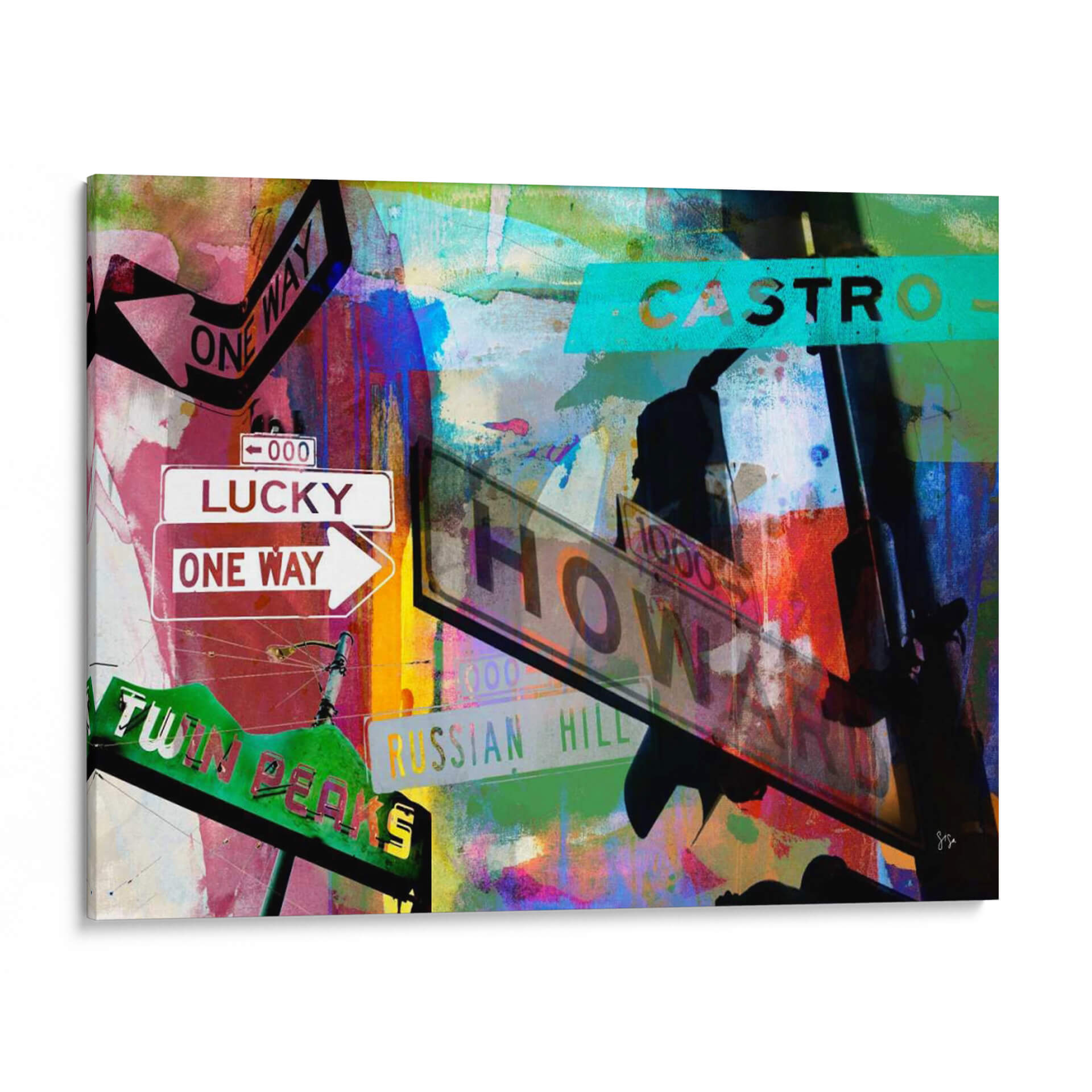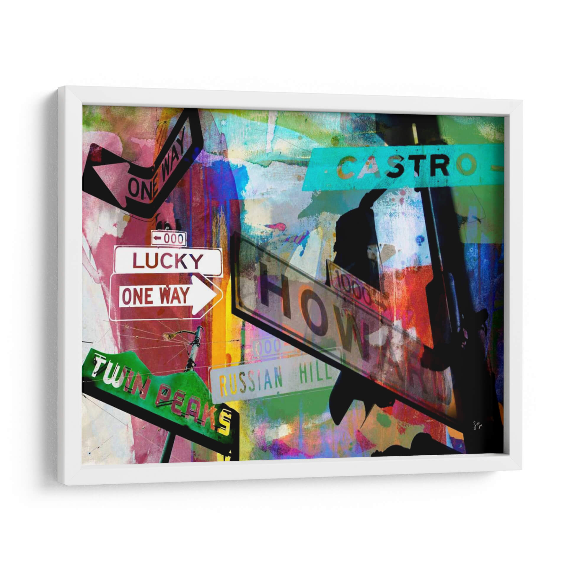 Sumérgete en la vibrante energía de "Signos De San Francisco Ii" de Sisa Jasper, una obra de arte contemporáneo que captura la esencia dinámica de la ciudad. Esta pieza visualmente cautivadora presenta una composición audaz de letreros de calles icónicos, incluyendo "Lucky", "One Way", "Castro" y "Twin Peaks", superpuestos sobre un fondo abstracto de texturas y colores explosivos. Los vibrantes tonos de rojo, azul, verde y amarillo se entrelazan con toques de negro y blanco, creando una atmósfera urbana llena de vida y movimiento. La técnica mixta y el estilo collage de Jasper aportan una profundidad y una narrativa únicas a la obra, invitando a la contemplación de la dualidad entre la estructura urbana y la expresión artística. "Signos De San Francisco Ii" es ideal para espacios que buscan un toque de carácter y modernidad, como salas de estar, estudios u oficinas, añadiendo un punto focal que inspira conversación y evoca el espíritu aventurero de San Francisco. Transforma tu hogar u oficina con este cuadro decorativo lleno de historia y arte.