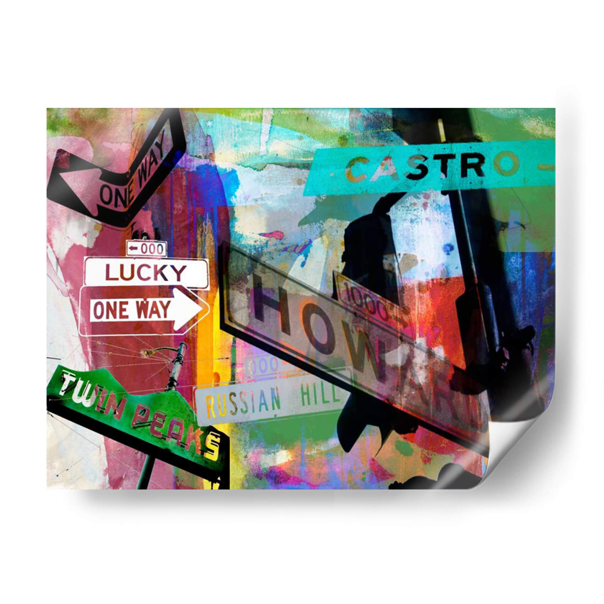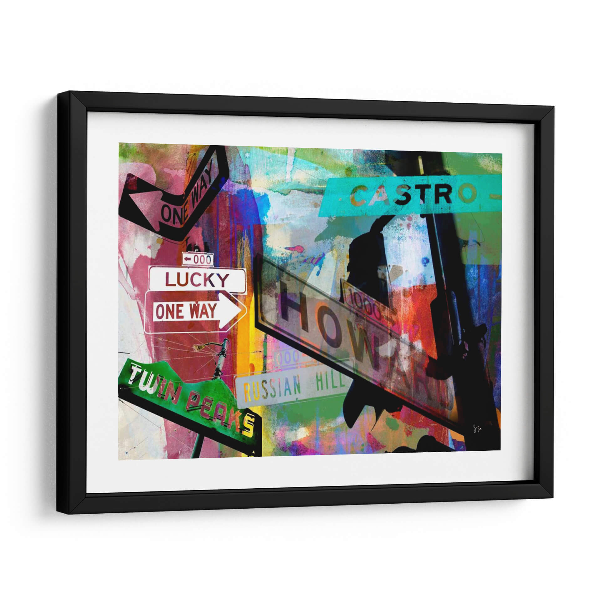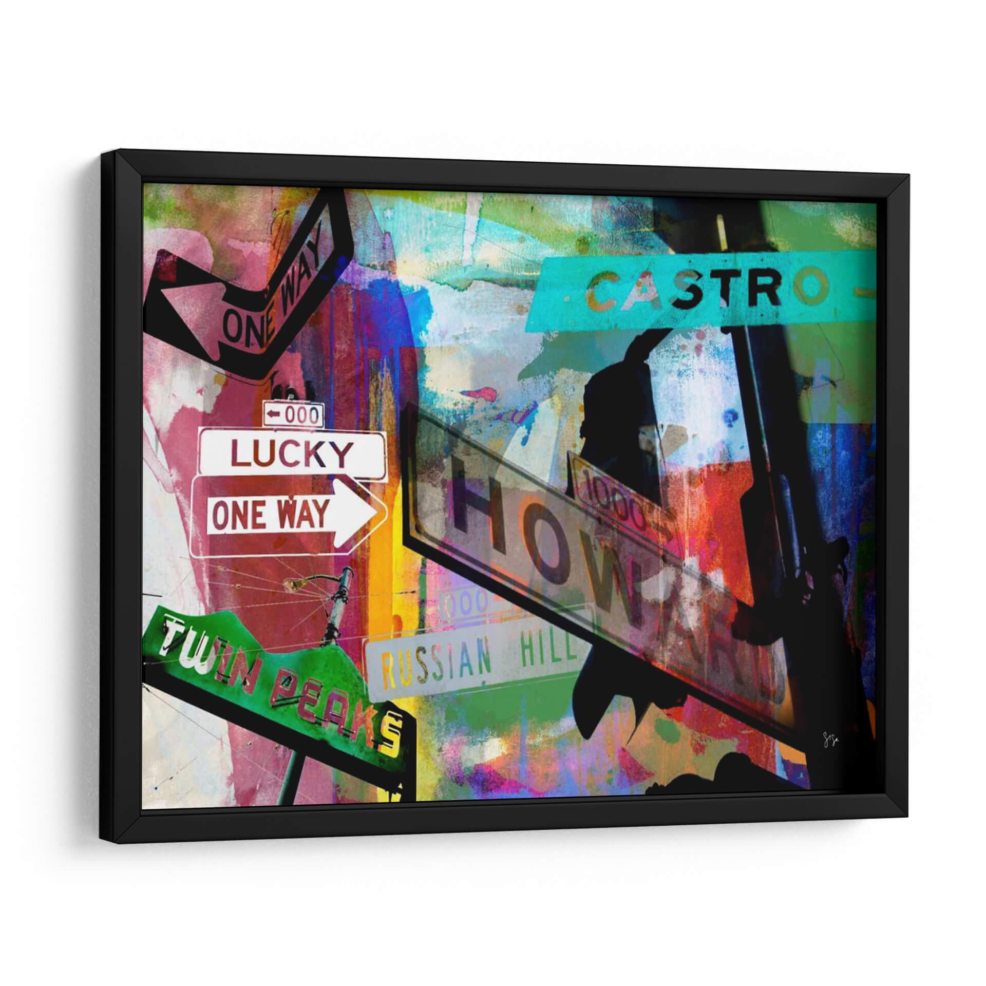 Sumérgete en la vibrante energía de "Signos De San Francisco Ii" de Sisa Jasper, una obra de arte contemporáneo que captura la esencia dinámica de la ciudad. Esta pieza visualmente cautivadora presenta una composición audaz de letreros de calles icónicos, incluyendo "Lucky", "One Way", "Castro" y "Twin Peaks", superpuestos sobre un fondo abstracto de texturas y colores explosivos. Los vibrantes tonos de rojo, azul, verde y amarillo se entrelazan con toques de negro y blanco, creando una atmósfera urbana llena de vida y movimiento. La técnica mixta y el estilo collage de Jasper aportan una profundidad y una narrativa únicas a la obra, invitando a la contemplación de la dualidad entre la estructura urbana y la expresión artística. "Signos De San Francisco Ii" es ideal para espacios que buscan un toque de carácter y modernidad, como salas de estar, estudios u oficinas, añadiendo un punto focal que inspira conversación y evoca el espíritu aventurero de San Francisco. Transforma tu hogar u oficina con este cuadro decorativo lleno de historia y arte.