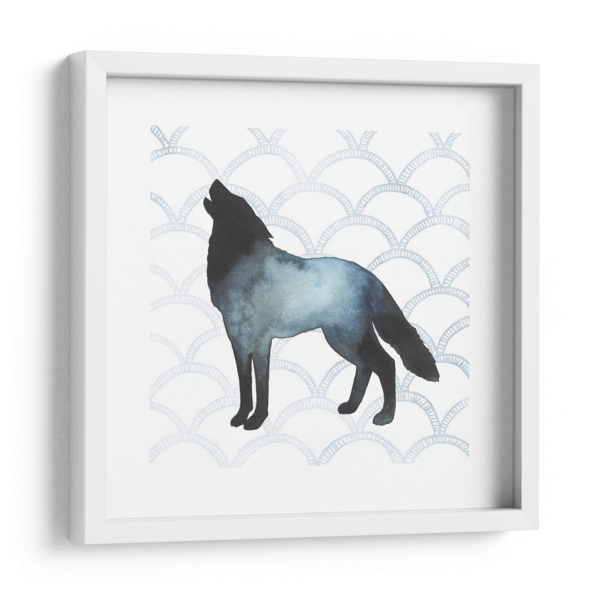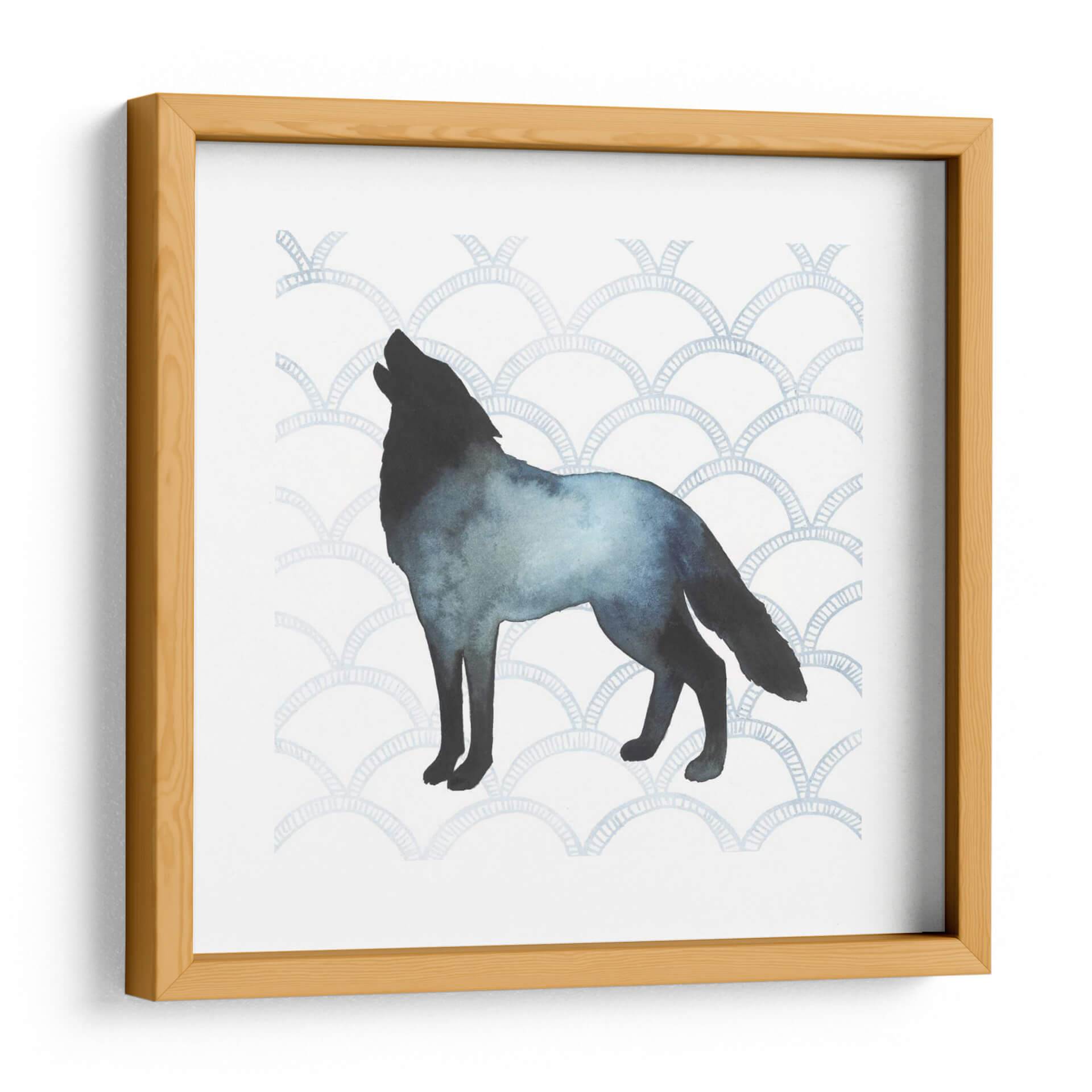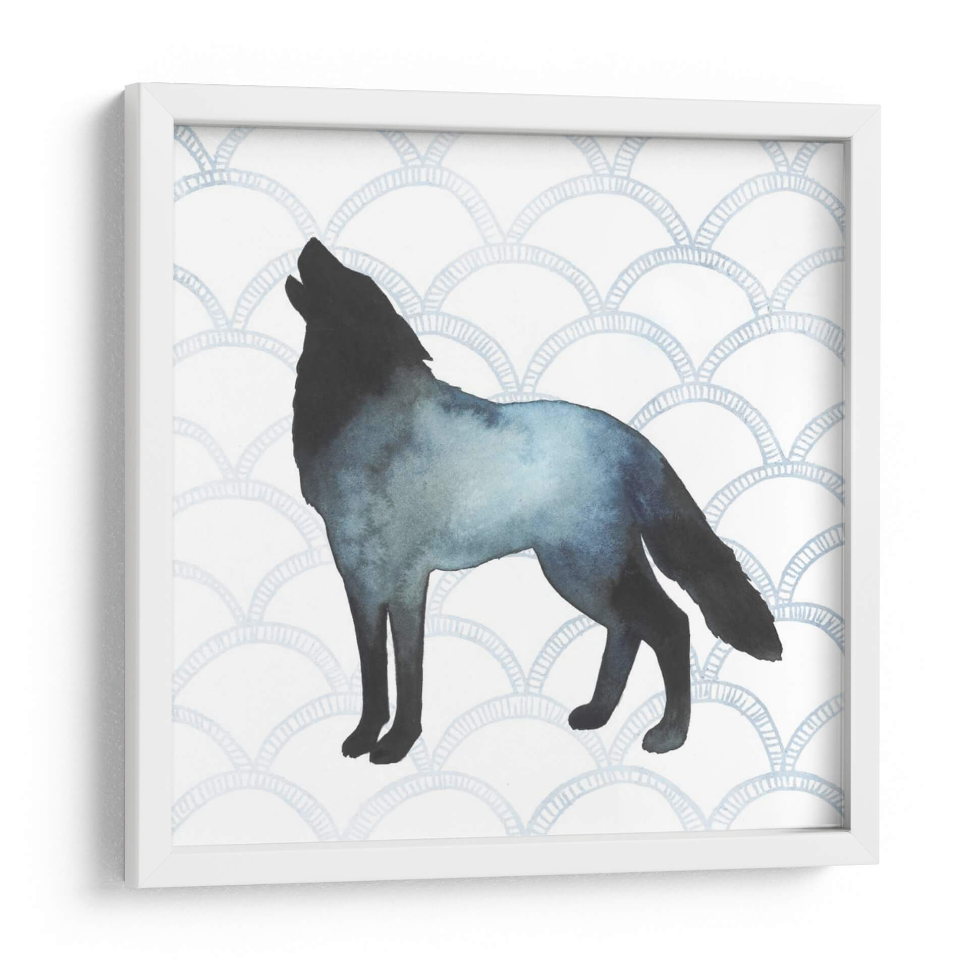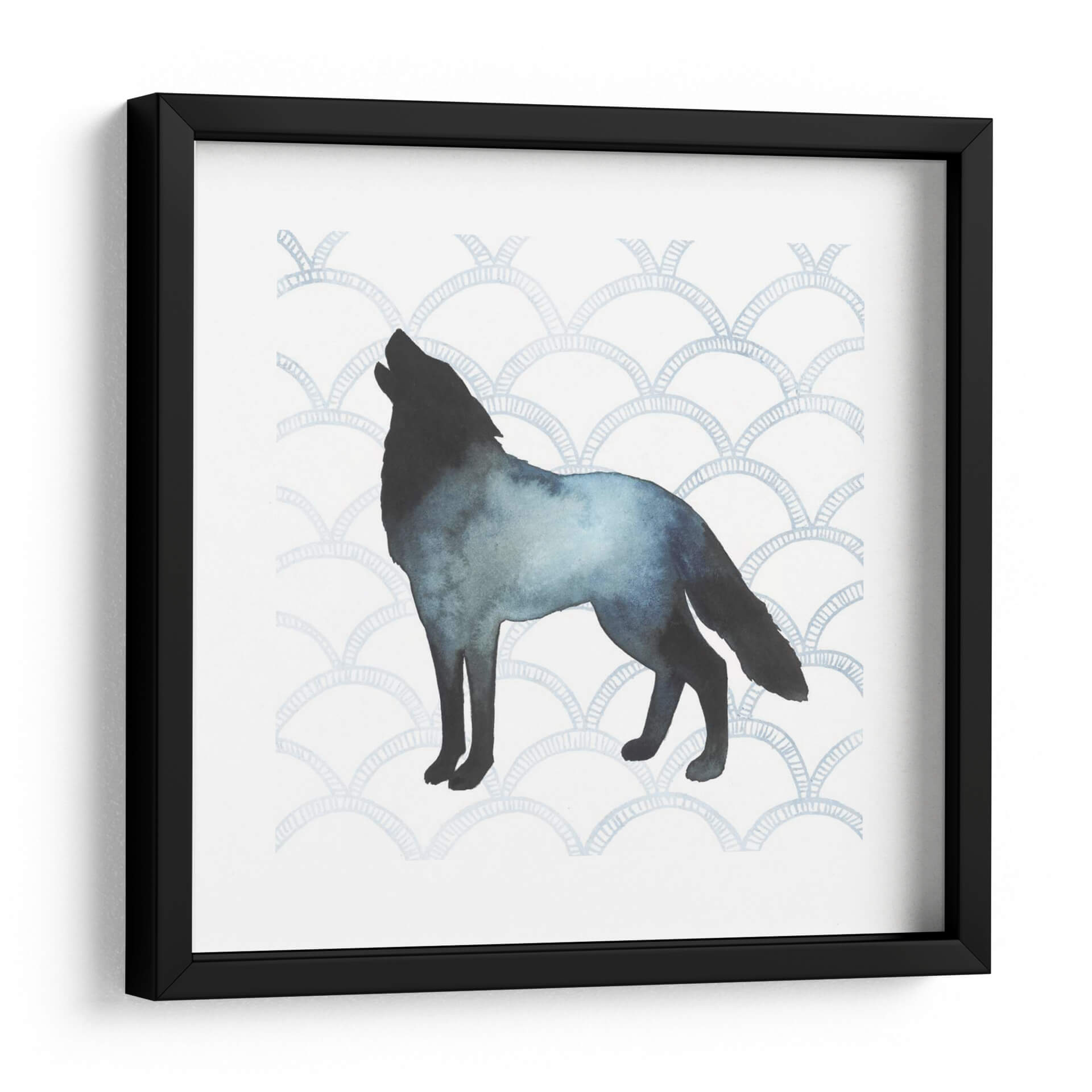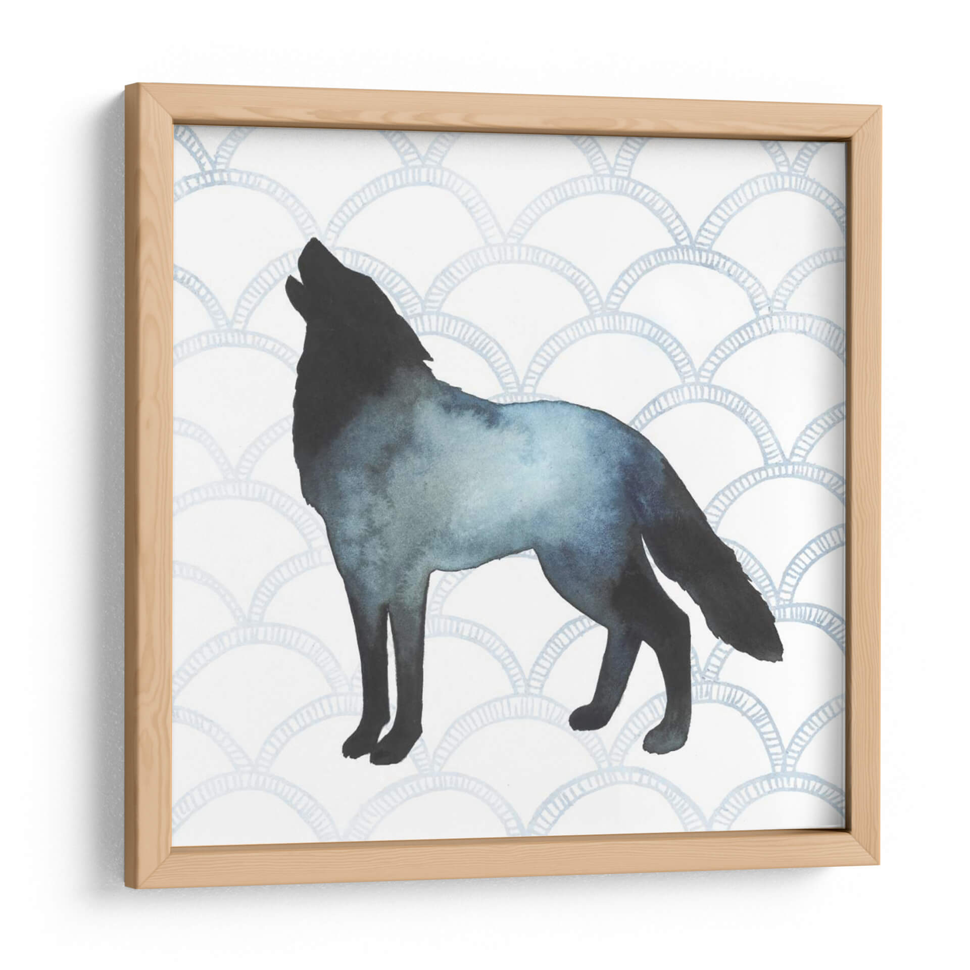 Sumérgete en la cautivadora silueta de un lobo aullando bajo un cielo nocturno etéreo en este impresionante cuadro decorativo. La obra, titulada 'Siluetas De Animales V' de Grace Popp, presenta una figura de lobo en primer plano, delineada en negro profundo, que se funde gradualmente con un degradado de acuarela en tonos azules y grises. Este efecto de acuarela evoca la profundidad del cielo estrellado o la mística de la noche, creando una atmósfera de misterio y conexión con la naturaleza salvaje. El fondo está adornado con un sutil patrón de arcos concéntricos en un suave tono azul pastel sobre un lienzo blanco, que aporta una textura delicada y un toque de elegancia moderna sin distraer del protagonista. La composición equilibra la fuerza de la silueta del lobo con la suavidad de la acuarela y el patrón geométrico, resultando en una pieza que es a la vez poderosa y serena. Ideal para añadir un toque de naturaleza inspiradora y elegancia contemporánea a cualquier espacio, desde una sala de estar acogedora hasta un estudio o una oficina que busque un punto focal distintivo. Este cuadro decorativo es una invitación a contemplar la majestuosidad del lobo y la belleza del mundo natural.