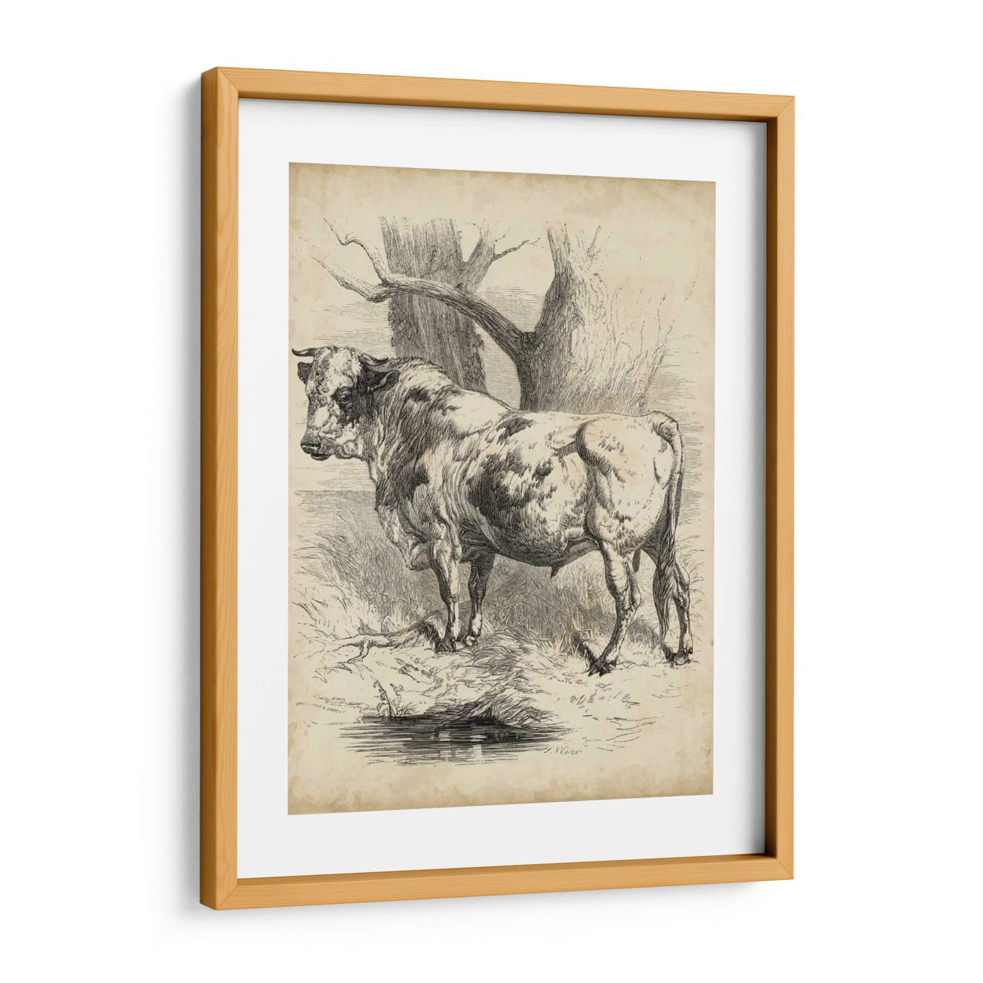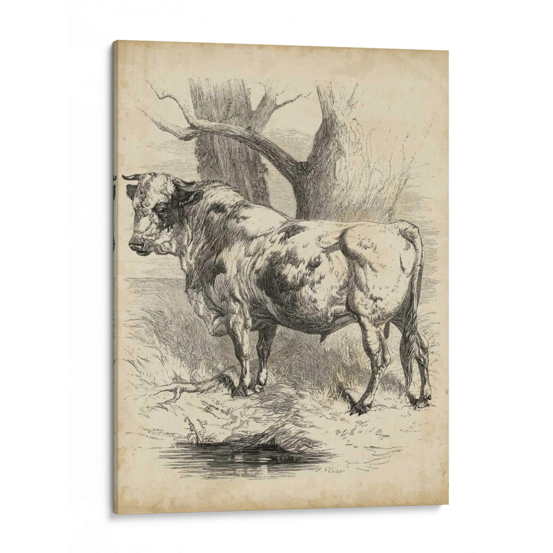 Este cuadro decorativo, "Sketch Pastoral II", evoca la robustez y la nobleza de la naturaleza a través de un detallado boceto a tinta. La obra presenta un imponente toro de pie en un entorno campestre, con árboles de ramas intrincadas y vegetación detallada que aportan profundidad y textura. La paleta de colores, dominada por tonos sepia y negros sobre un fondo envejecido, confiere a la pieza una atmósfera clásica y atemporal, reminiscentes de grabados antiguos. El estilo de dibujo a mano alzada, con trazos precisos pero expresivos, captura la fuerza y la serenidad del animal en su hábitat natural. Es una pieza ideal para quienes buscan añadir un toque de carácter rústico o un punto de interés tradicional a su decoración. Este cuadro es perfecto para salas de estar, estudios o cualquier espacio donde se desee infundir una sensación de conexión con la tierra y la vida salvaje. Su composición equilibrada y el realismo del sujeto lo convierten en una adición sofisticada y pensada para cualquier amante del arte con inclinación por la naturaleza y las representaciones detalladas.