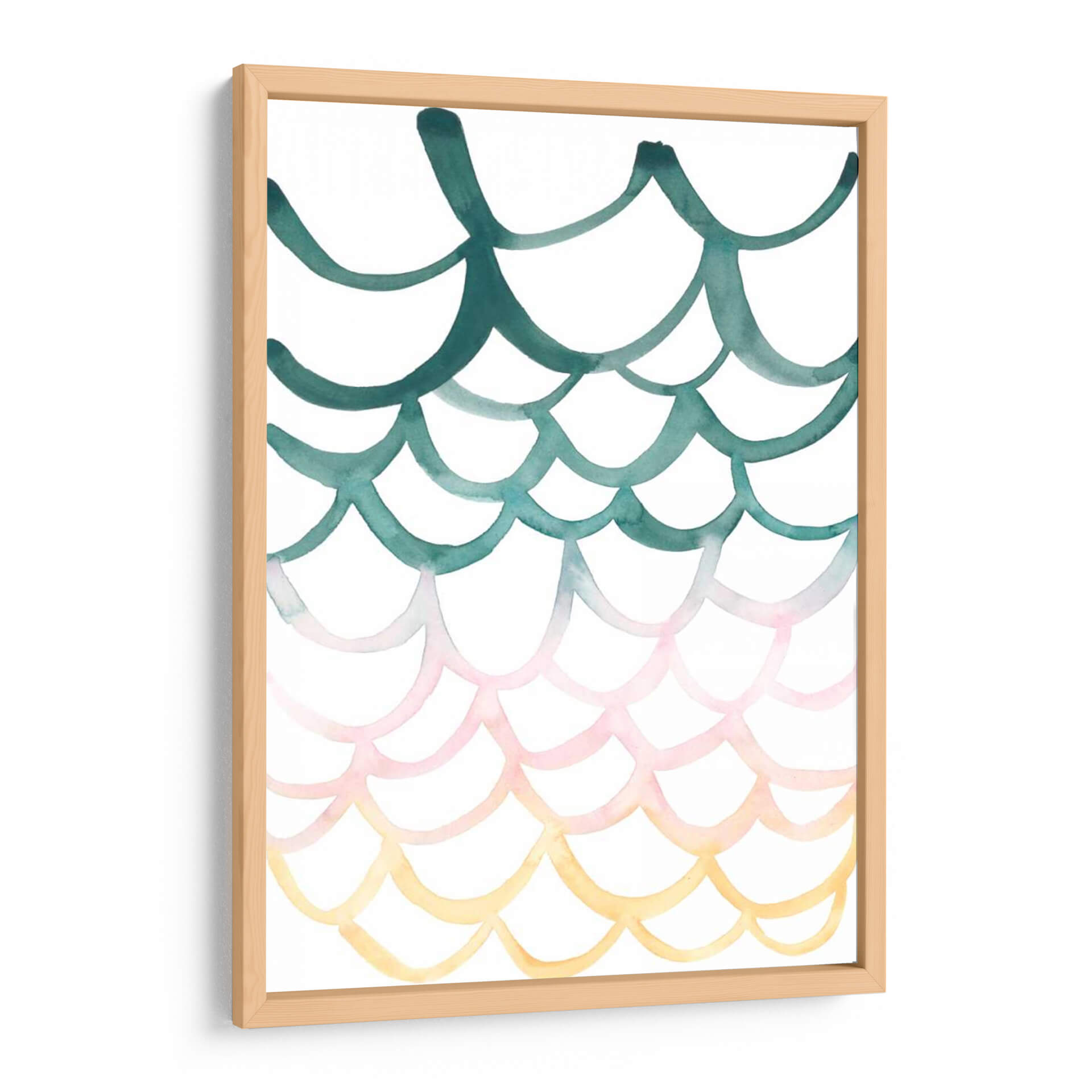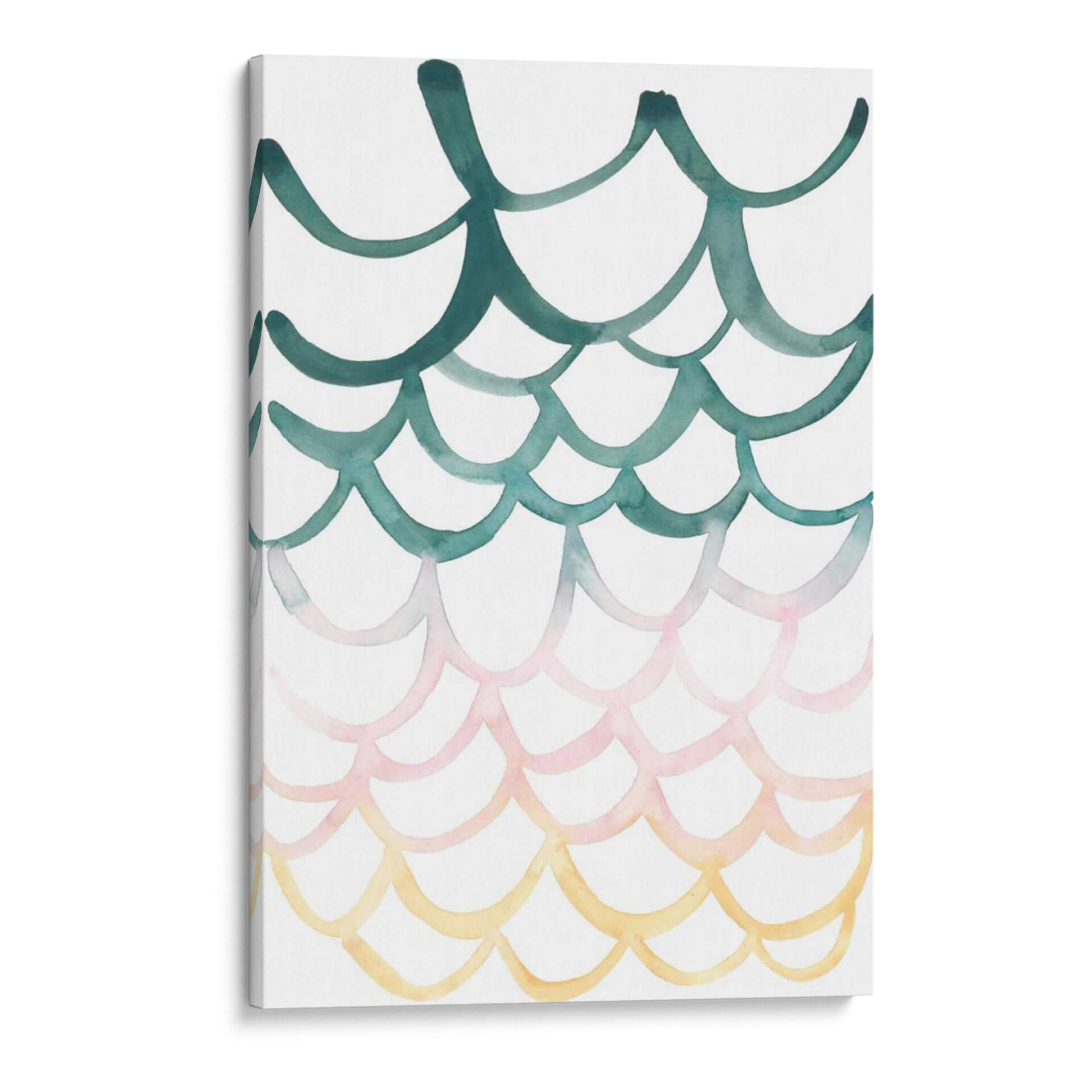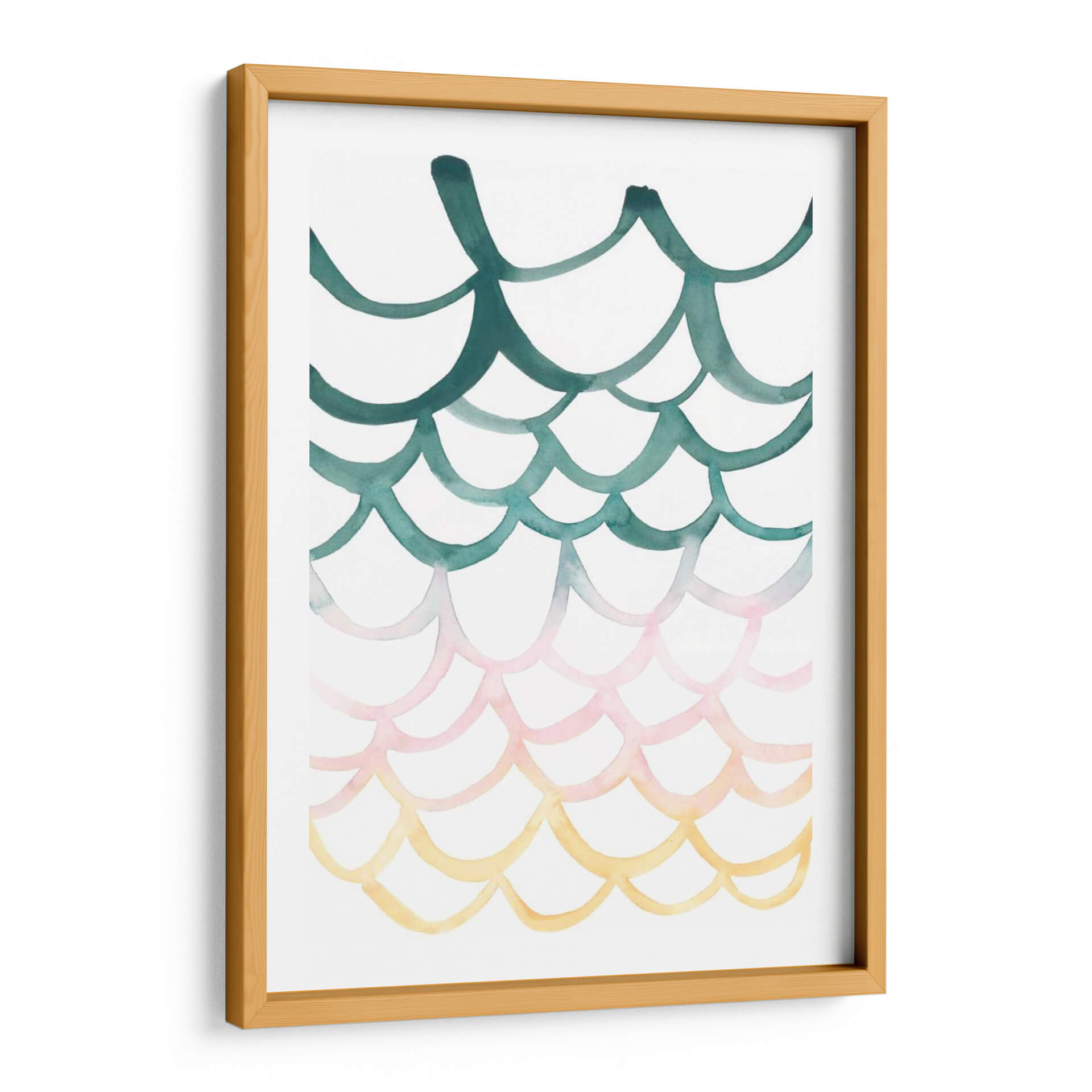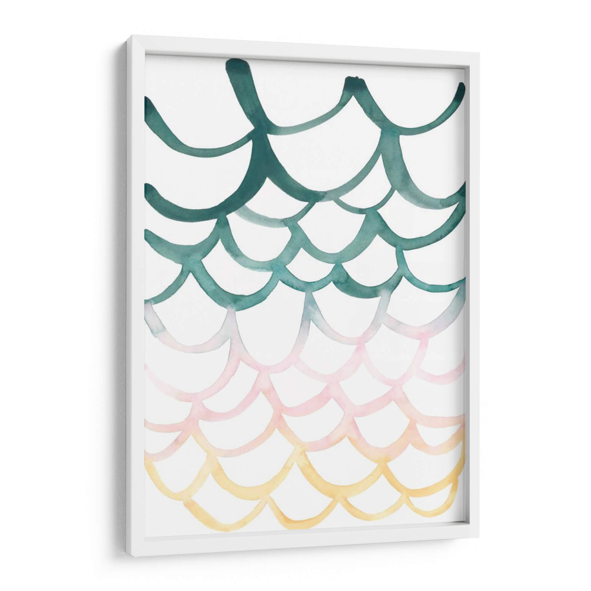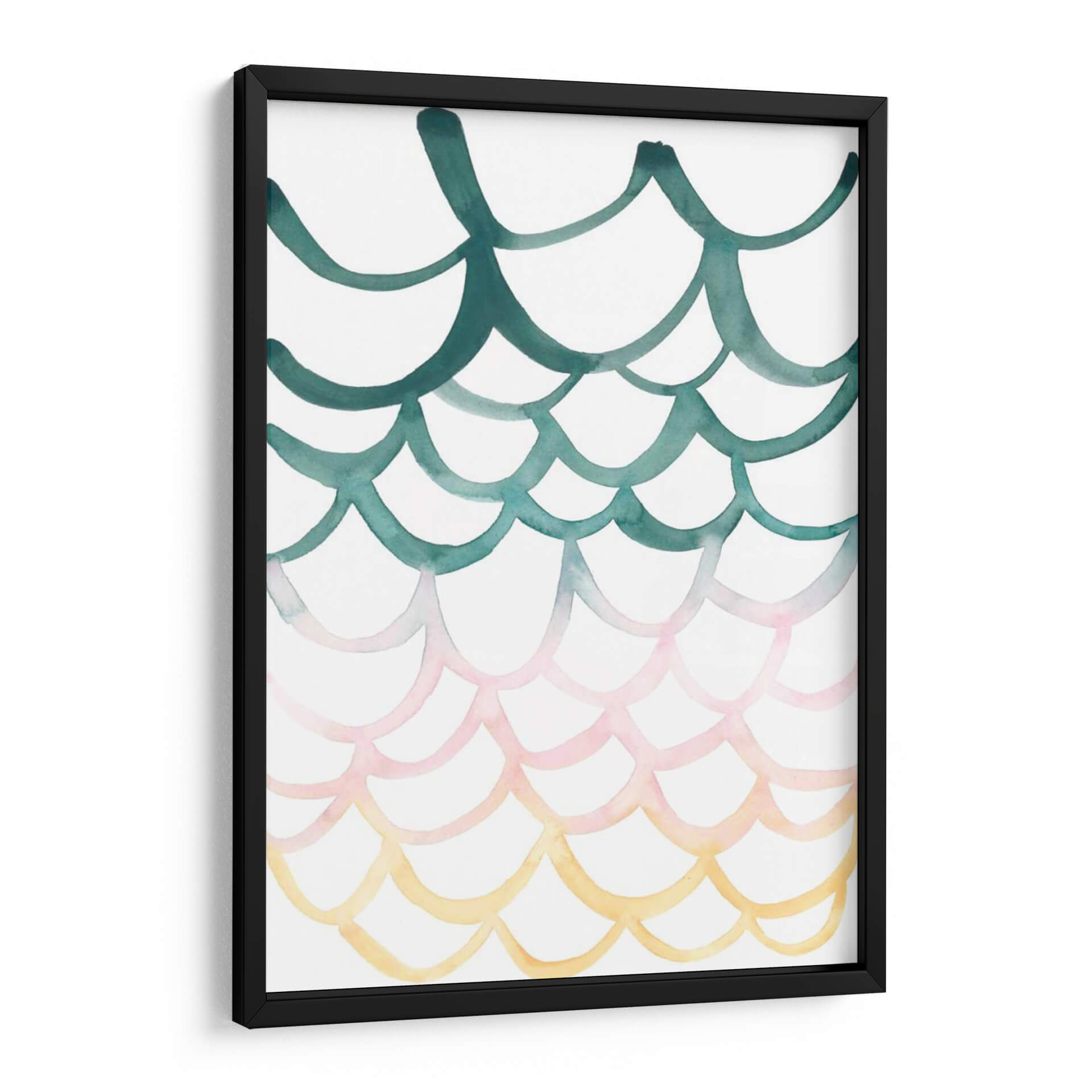 Sumérgete en la etérea belleza de "Smermaid Scales I", una cautivadora obra de arte de Grace Popp que evoca las profundidades marinas con un toque de fantasía. Este cuadro decorativo presenta un delicado patrón de escamas superpuestas, ejecutado con la fluidez y transparencia de la técnica de acuarela. La paleta de colores transita suavemente desde profundos tonos verde azulado en la parte superior, reminiscentes de las aguas más oscuras del océano, hacia vibrantes matices de rosa y dorado en la parte inferior, sugiriendo la luz del sol filtrándose a través del agua o el brillo de tesoros escondidos. La composición abstracta pero orgánica invita a la contemplación, creando una atmósfera de calma y ensueño. Ideal para añadir un toque de serenidad y magia a un dormitorio, un salón moderno o incluso un baño con temática costera. "Smermaid Scales I" es una pieza versátil que complementa espacios que buscan una conexión con la naturaleza y la imaginación, aportando una sensación de frescura y elegancia sutil. Su diseño abstracto y moderno lo convierte en el punto focal perfecto para aquellos que aprecian el arte contemporáneo con un toque de misticismo acuático.
